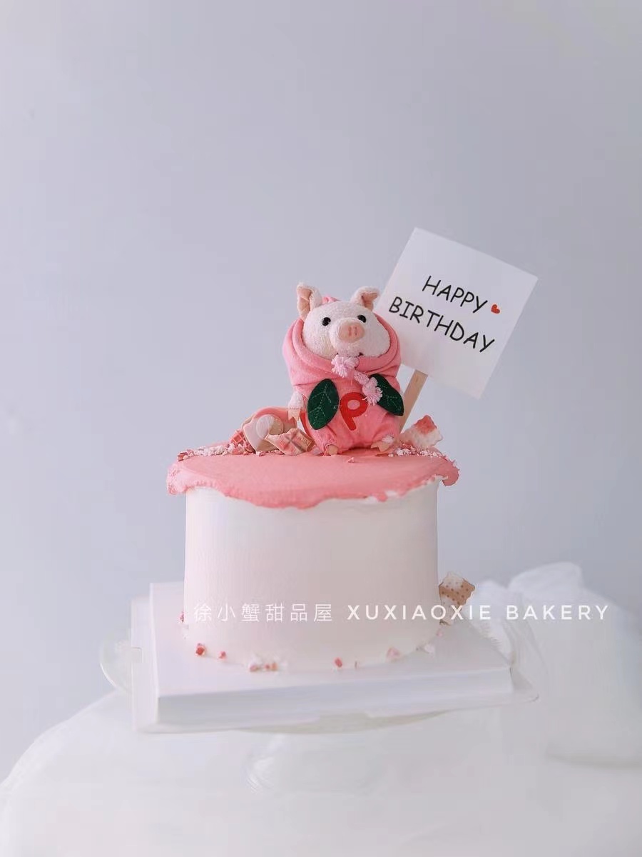 ins风系列:小猪蛋糕| 4层戚风胚,3层火芒夹心。