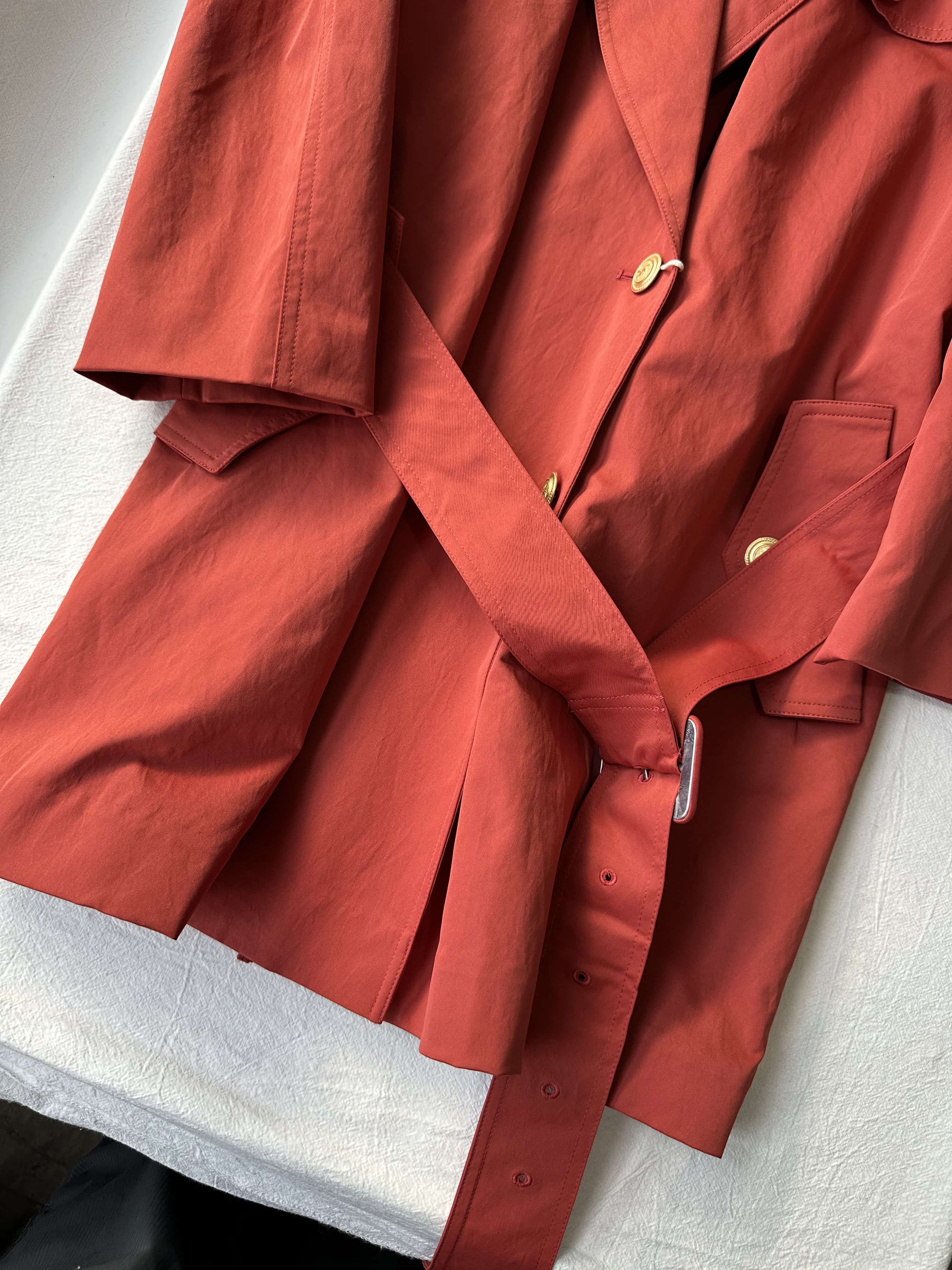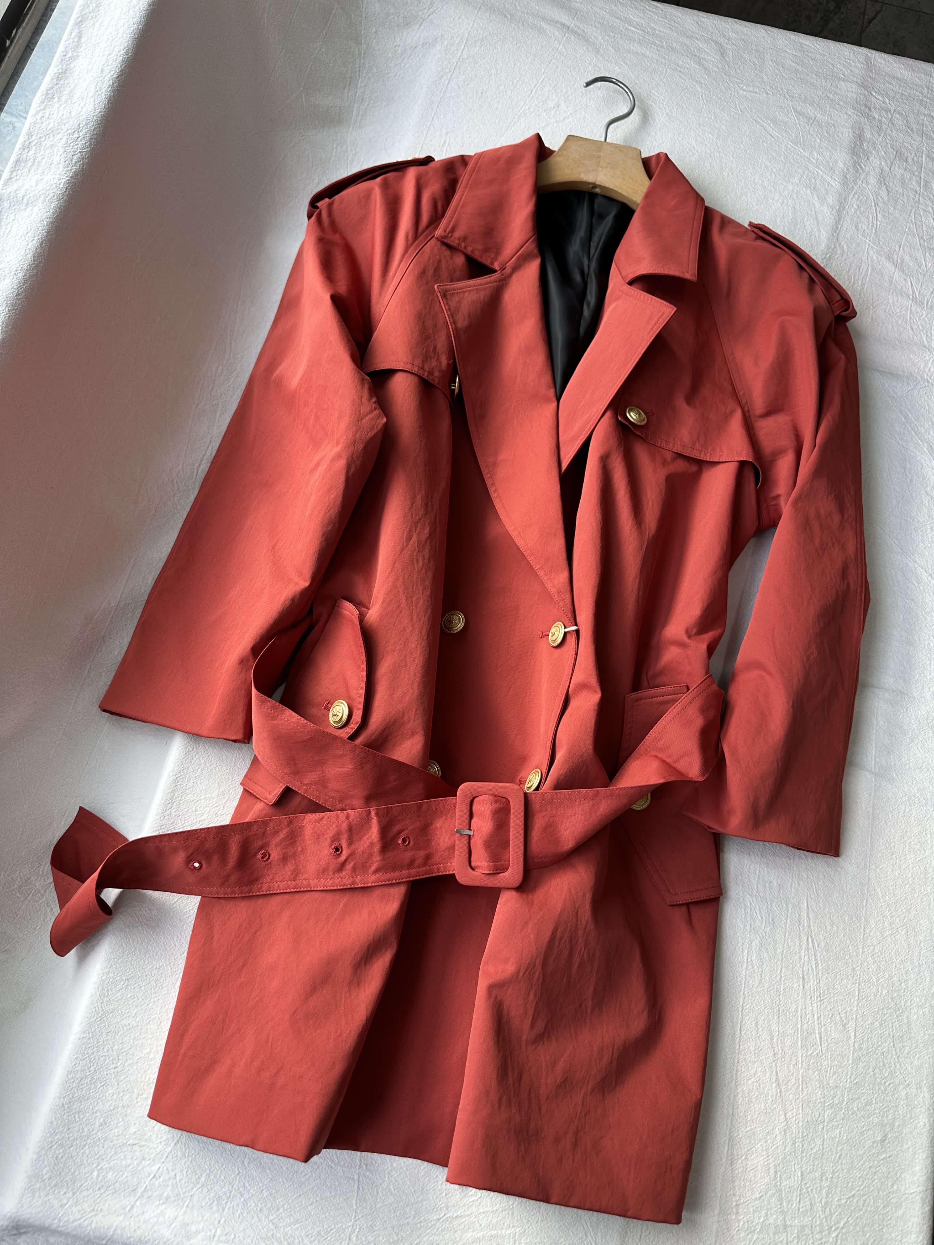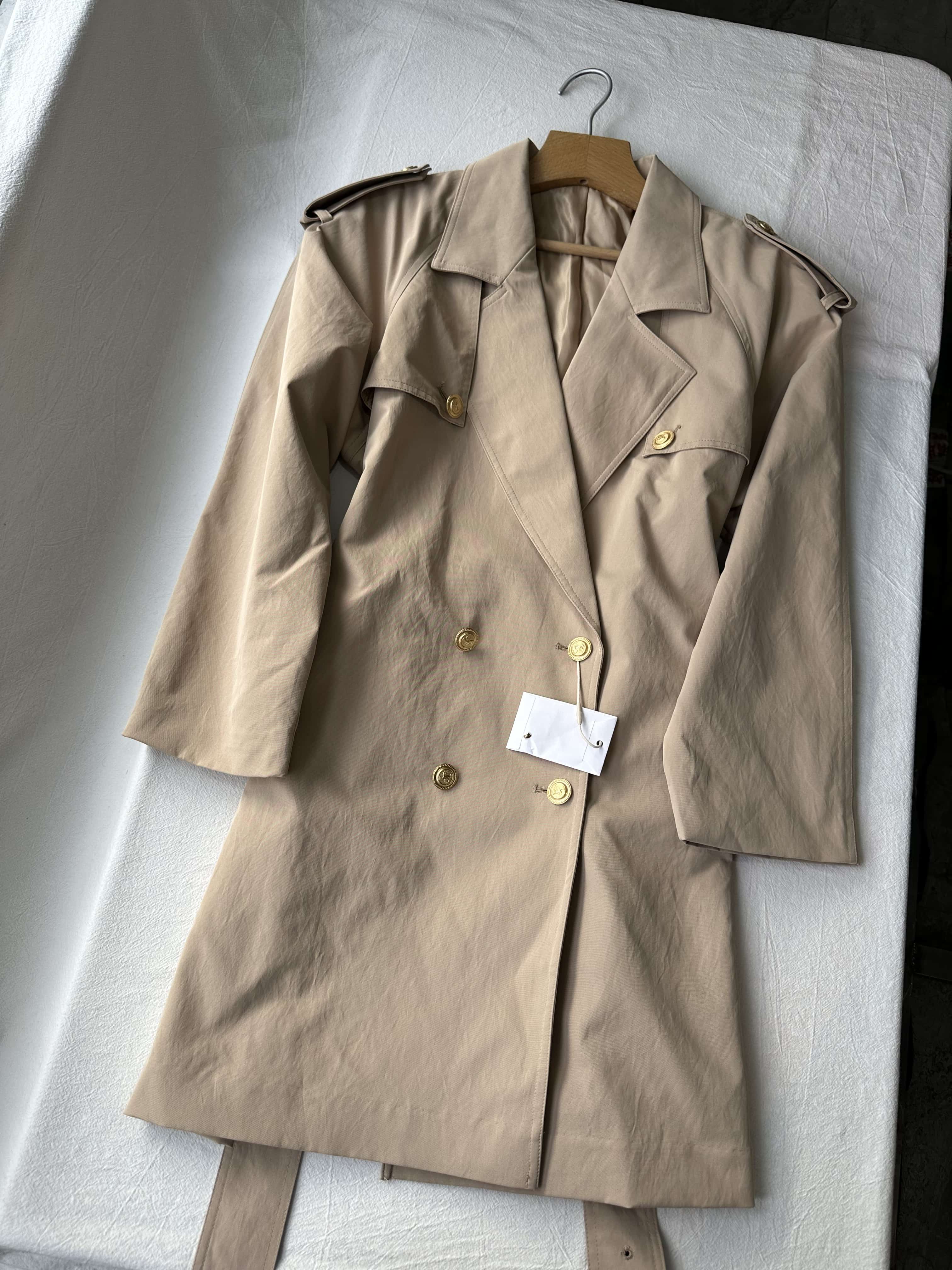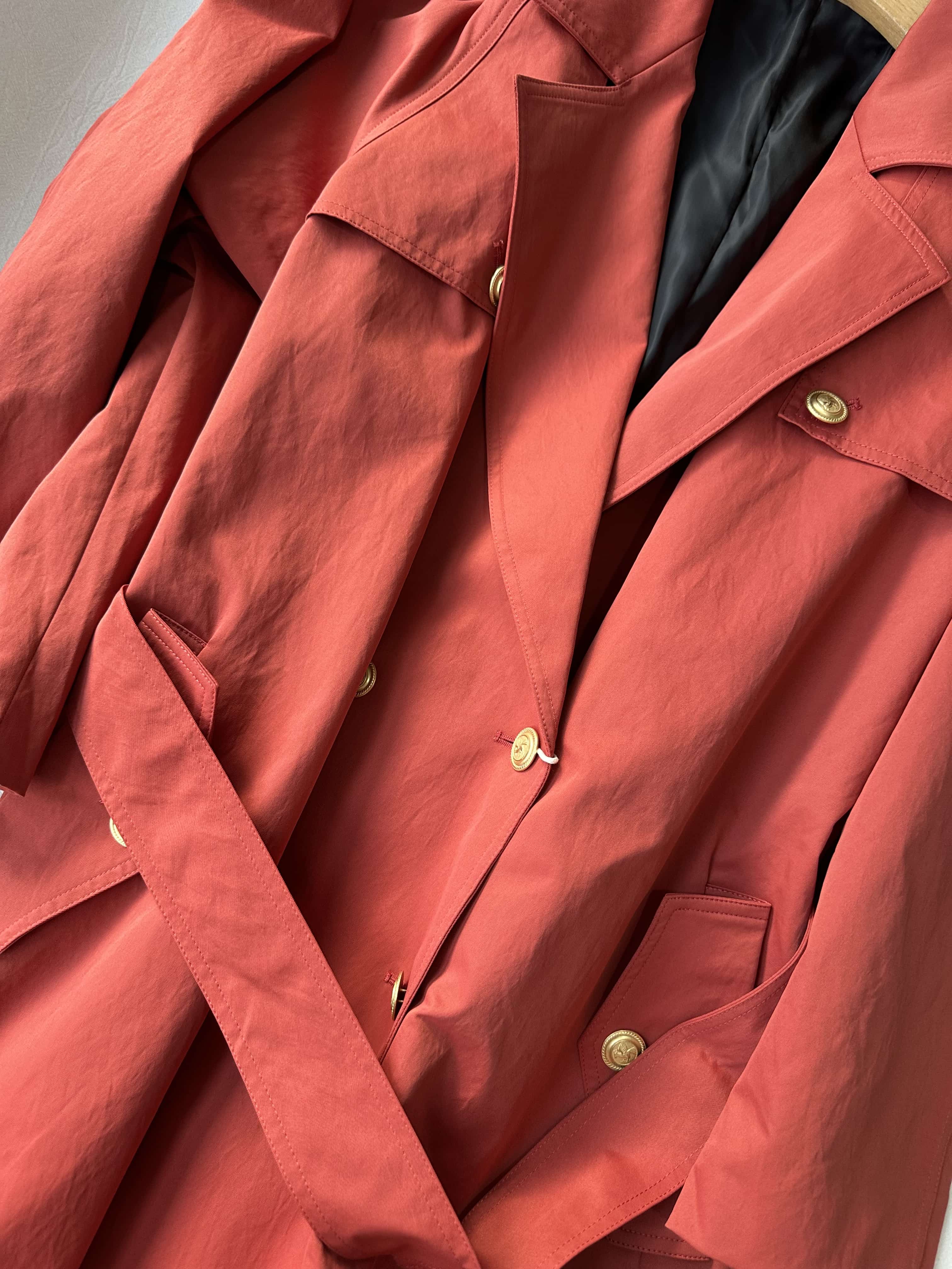 贝壳三 英伦风双排扣复古宽松风衣腰带收腰显瘦短款外套C110819