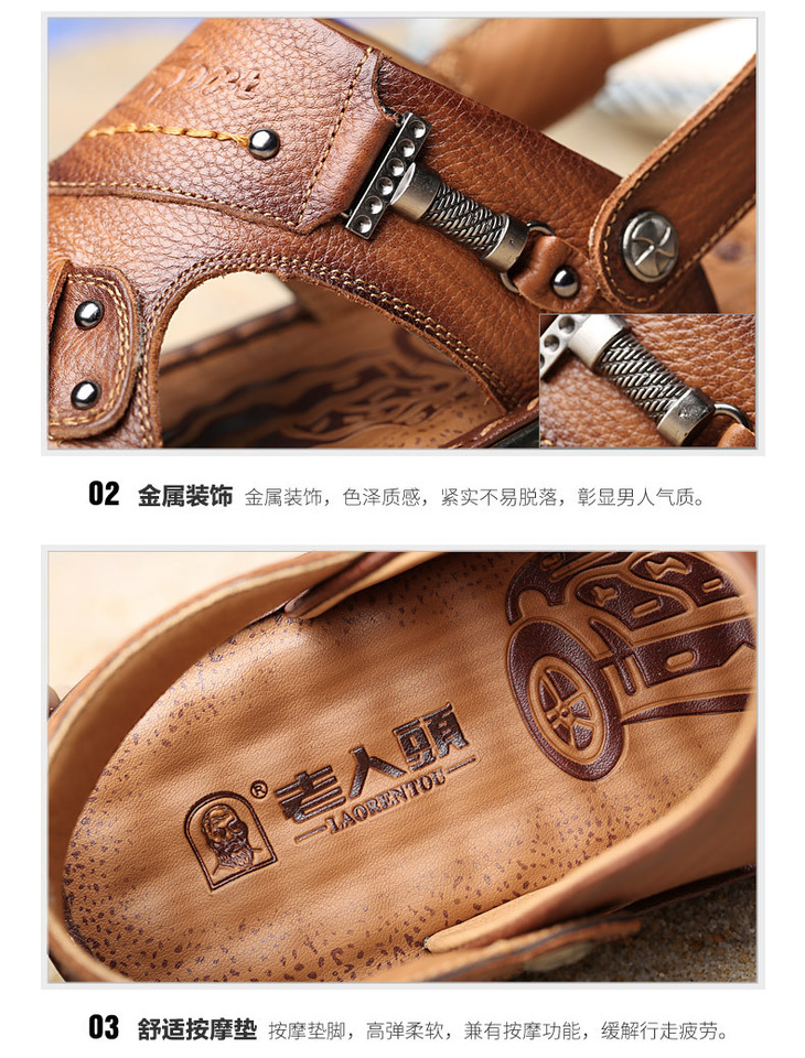 【服饰鞋包】老人头凉鞋男夏季牛皮休闲沙滩鞋