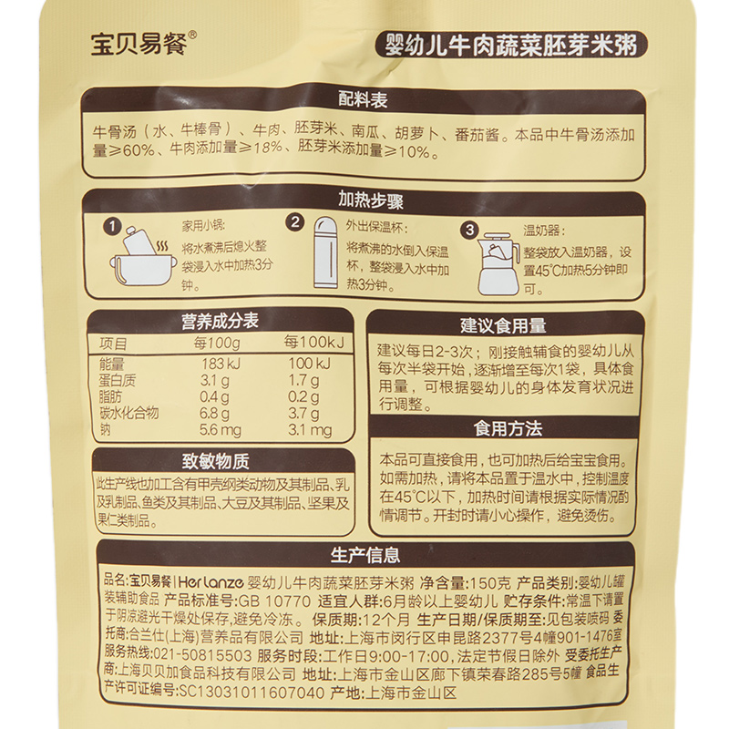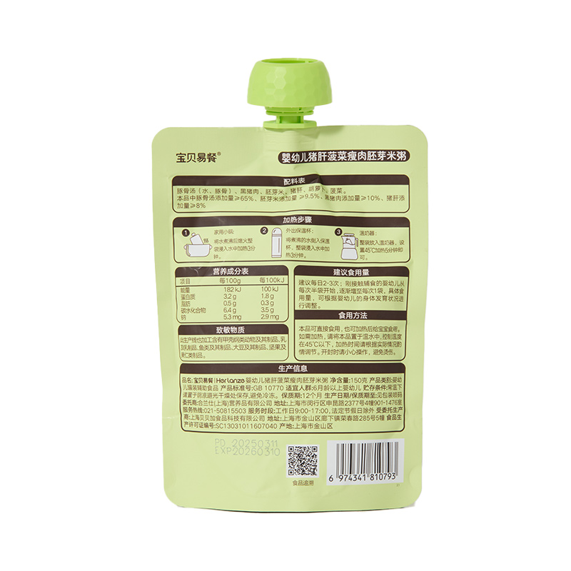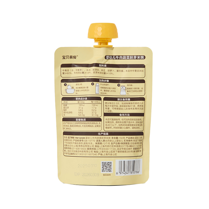 宝贝易餐婴幼儿米粥150g(牛肉蔬菜胚芽/猪肝菠菜瘦肉胚芽)