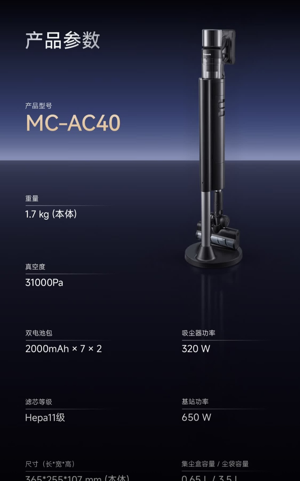 【春上新】10楼 松下手持家用大吸力 除螨无线 自动集尘防缠绕长续航吸尘器MC-AC40K 吊牌价3699元 活动价2099元