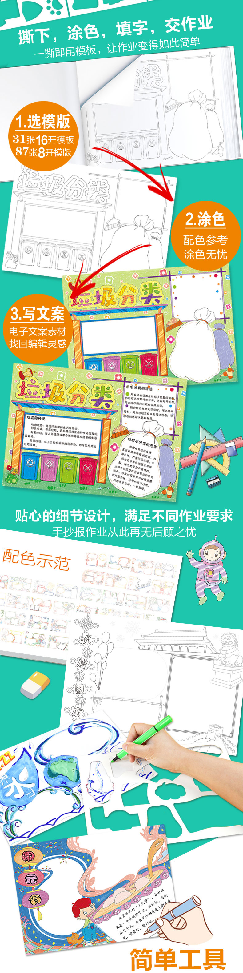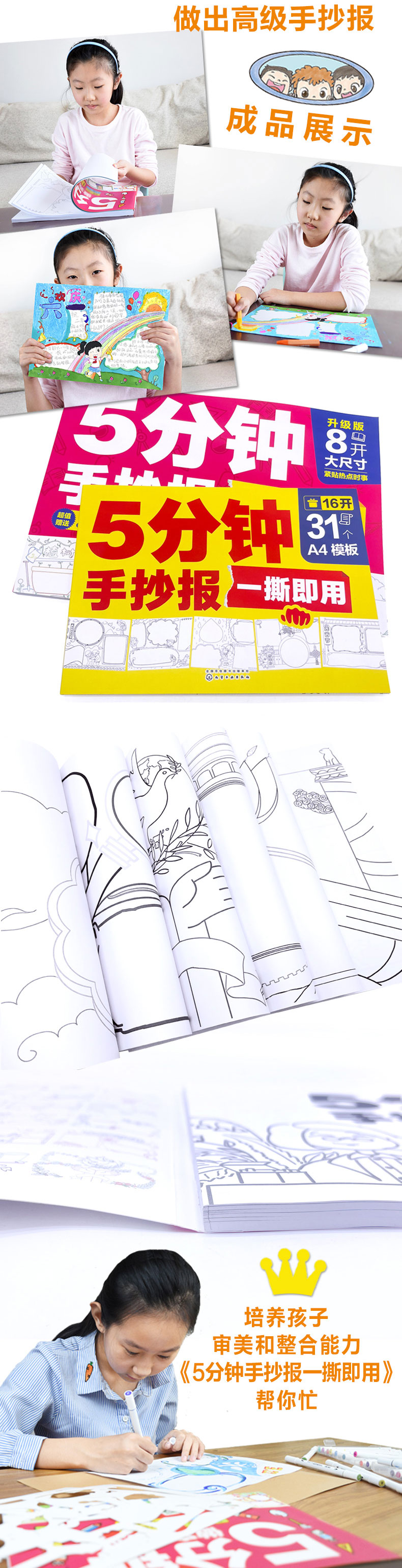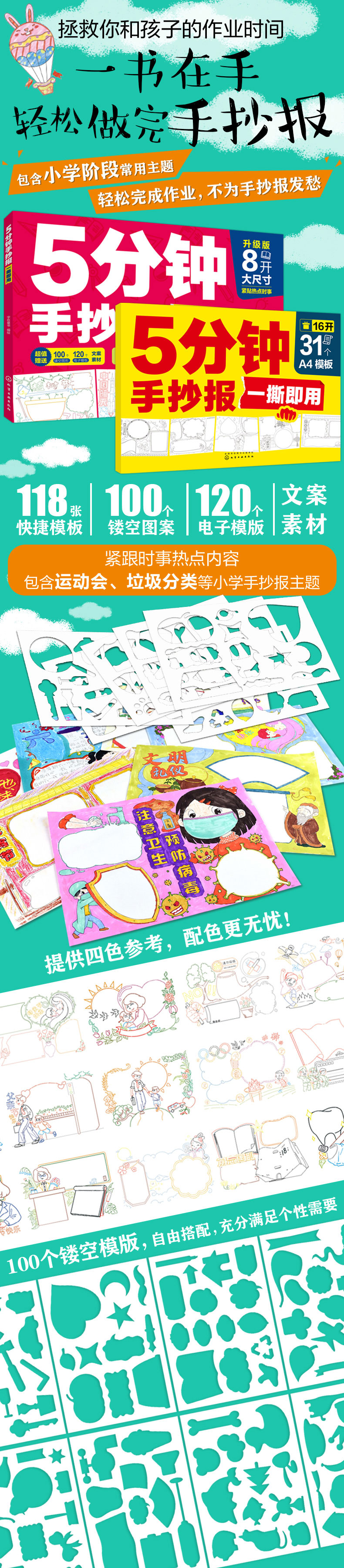 新版 5分钟手抄报一撕即用 全2册 “解放”家长的手抄报神器,一站式解决手抄报过程中所有难题。