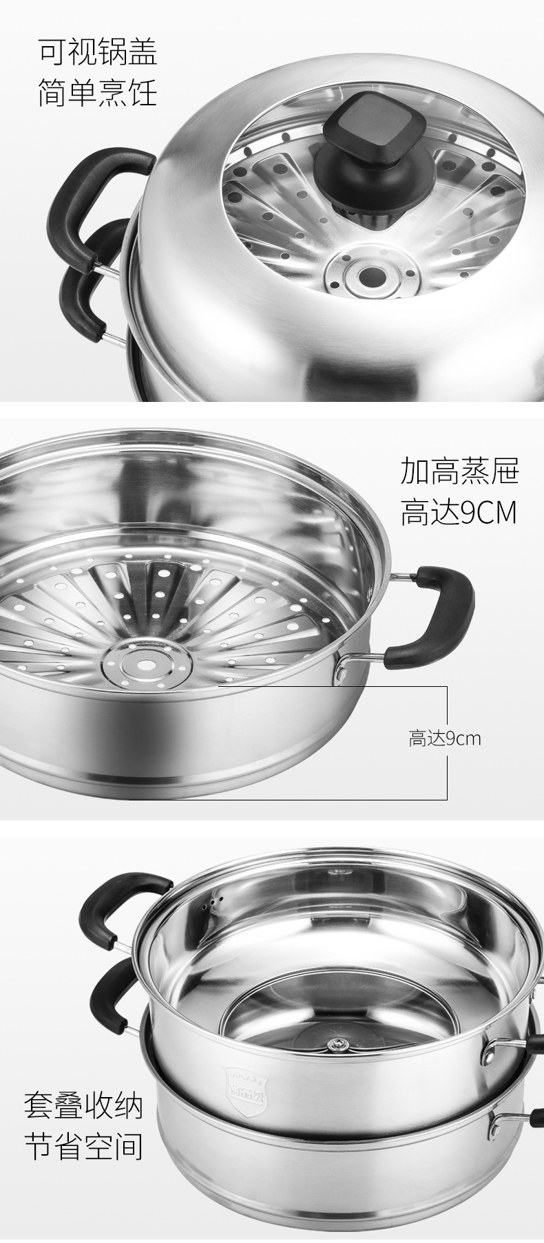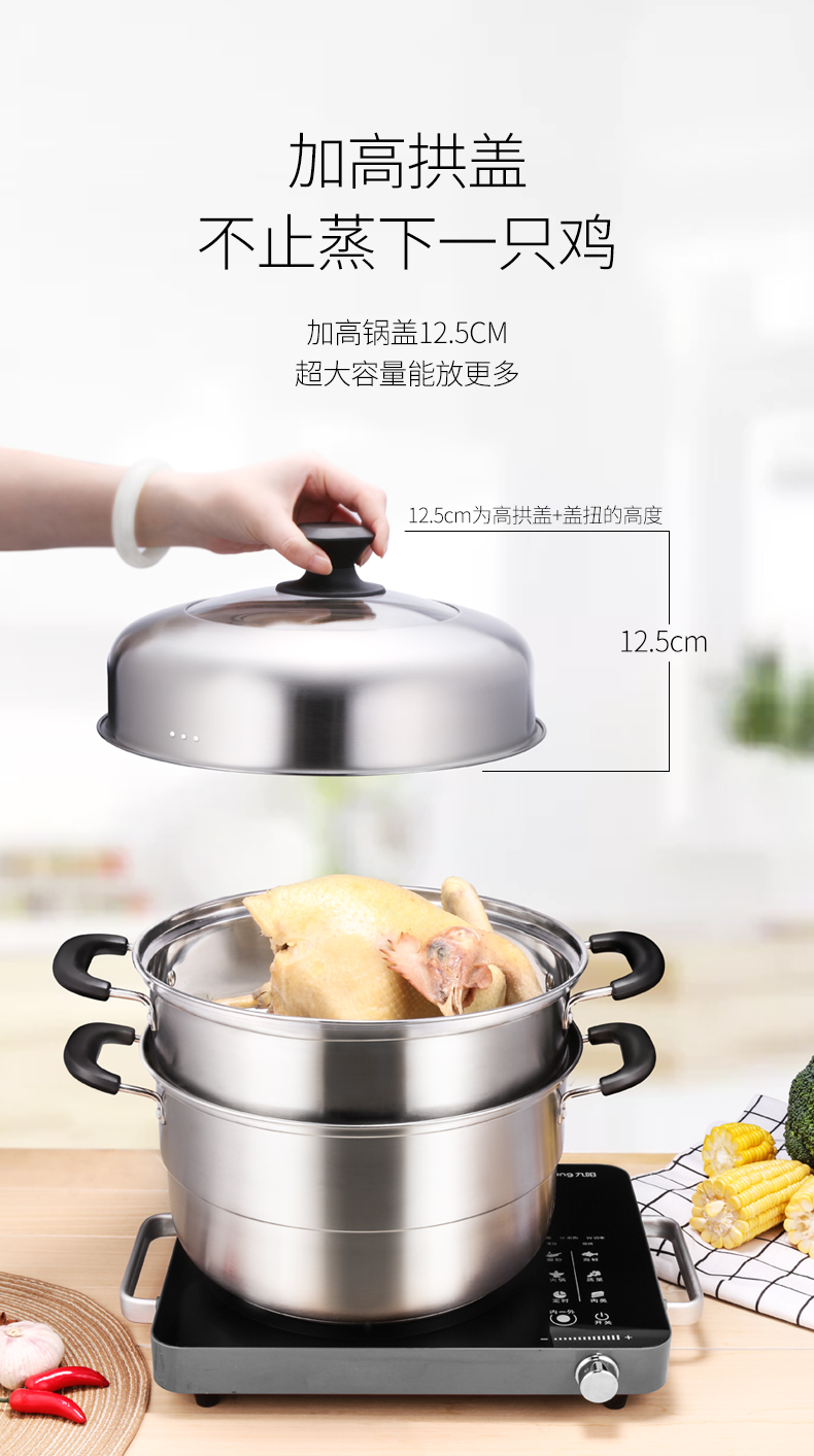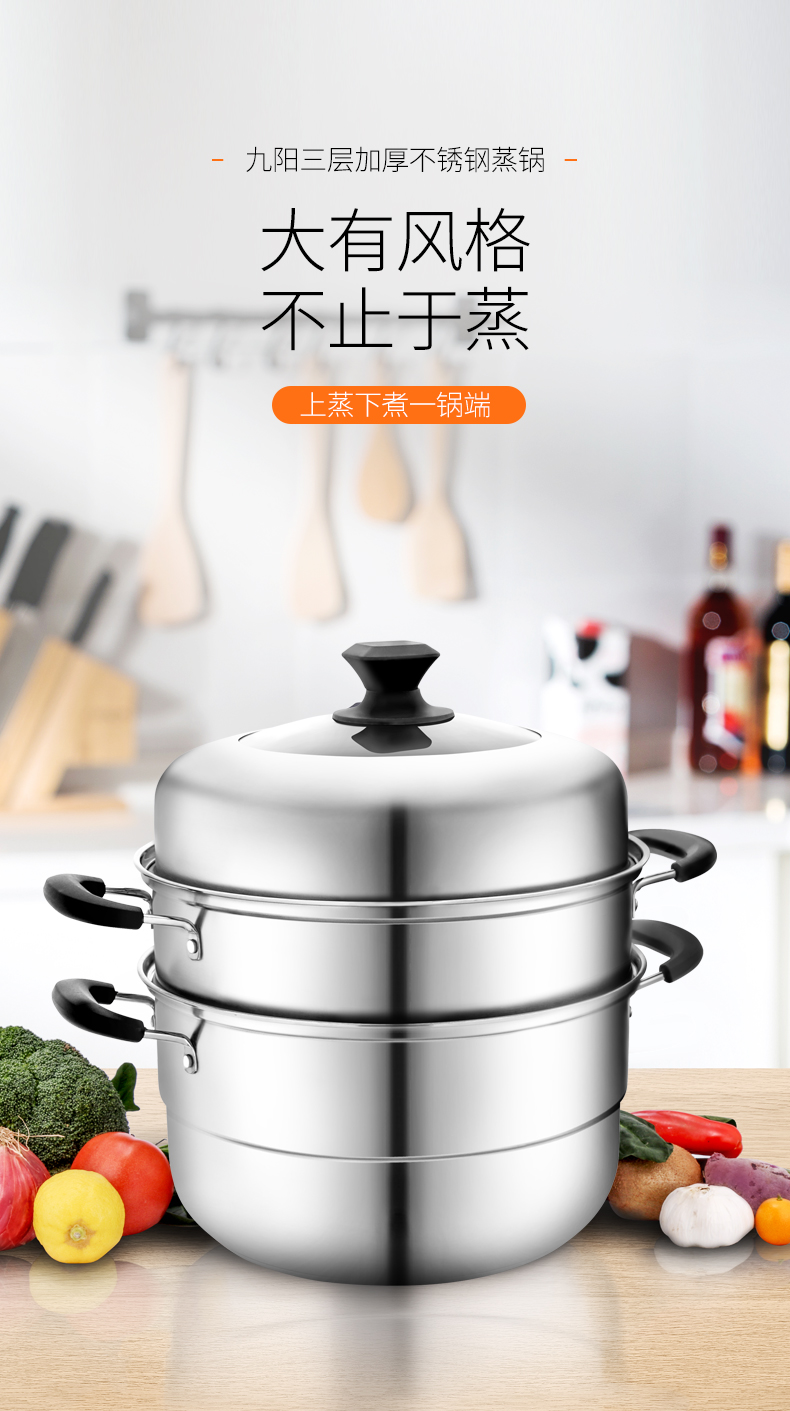 【美味生活 蒸滋味】Joyoung/九阳ZGH3001不锈钢蒸锅复底高盖