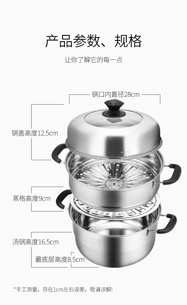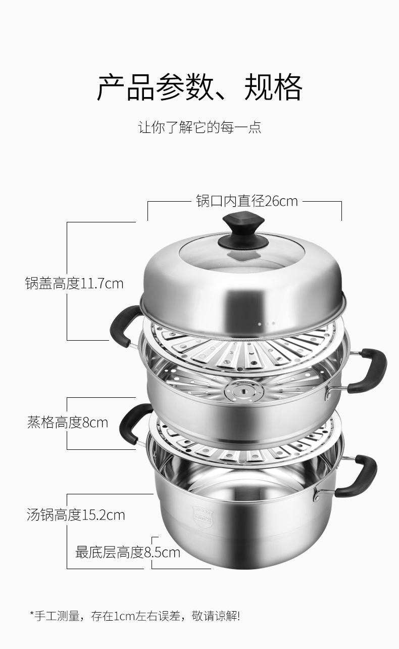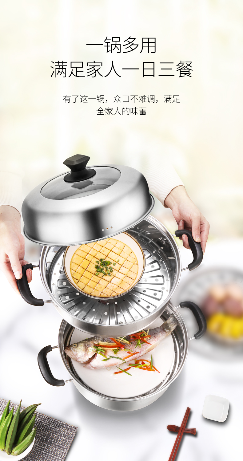 【美味生活 蒸滋味】Joyoung/九阳ZGH3001不锈钢蒸锅复底高盖