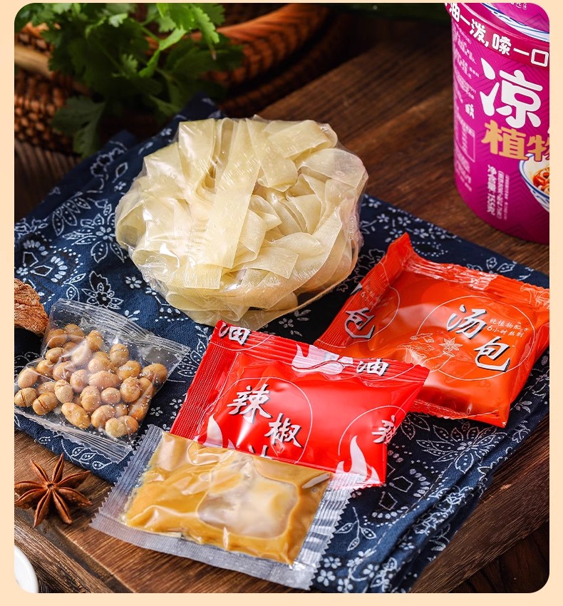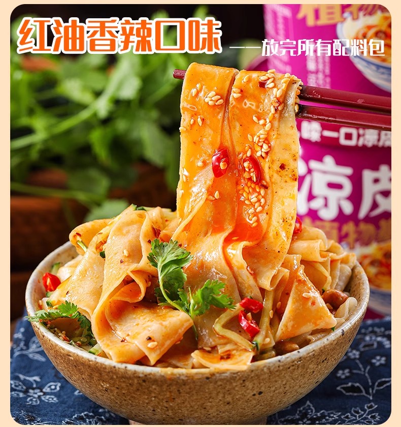 素食麻酱红油凉皮 净素配方 香辣够爽 免煮一泡一拌5分钟开吃