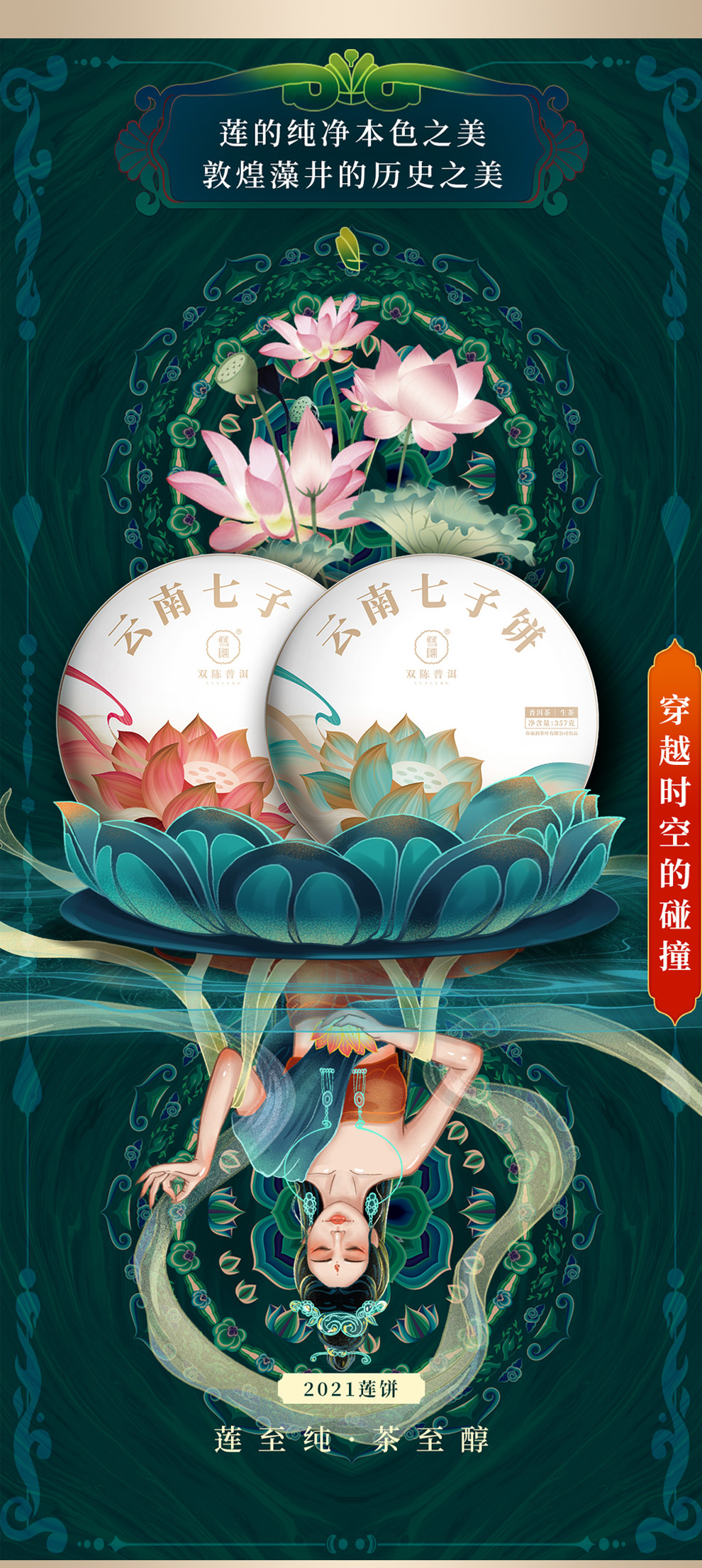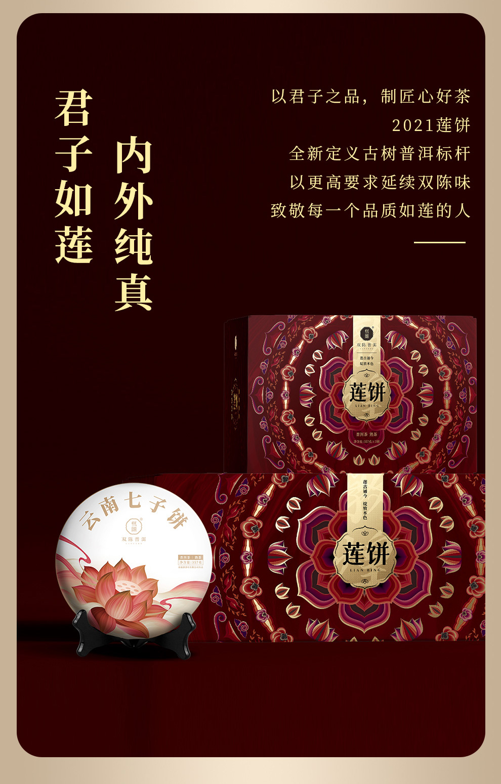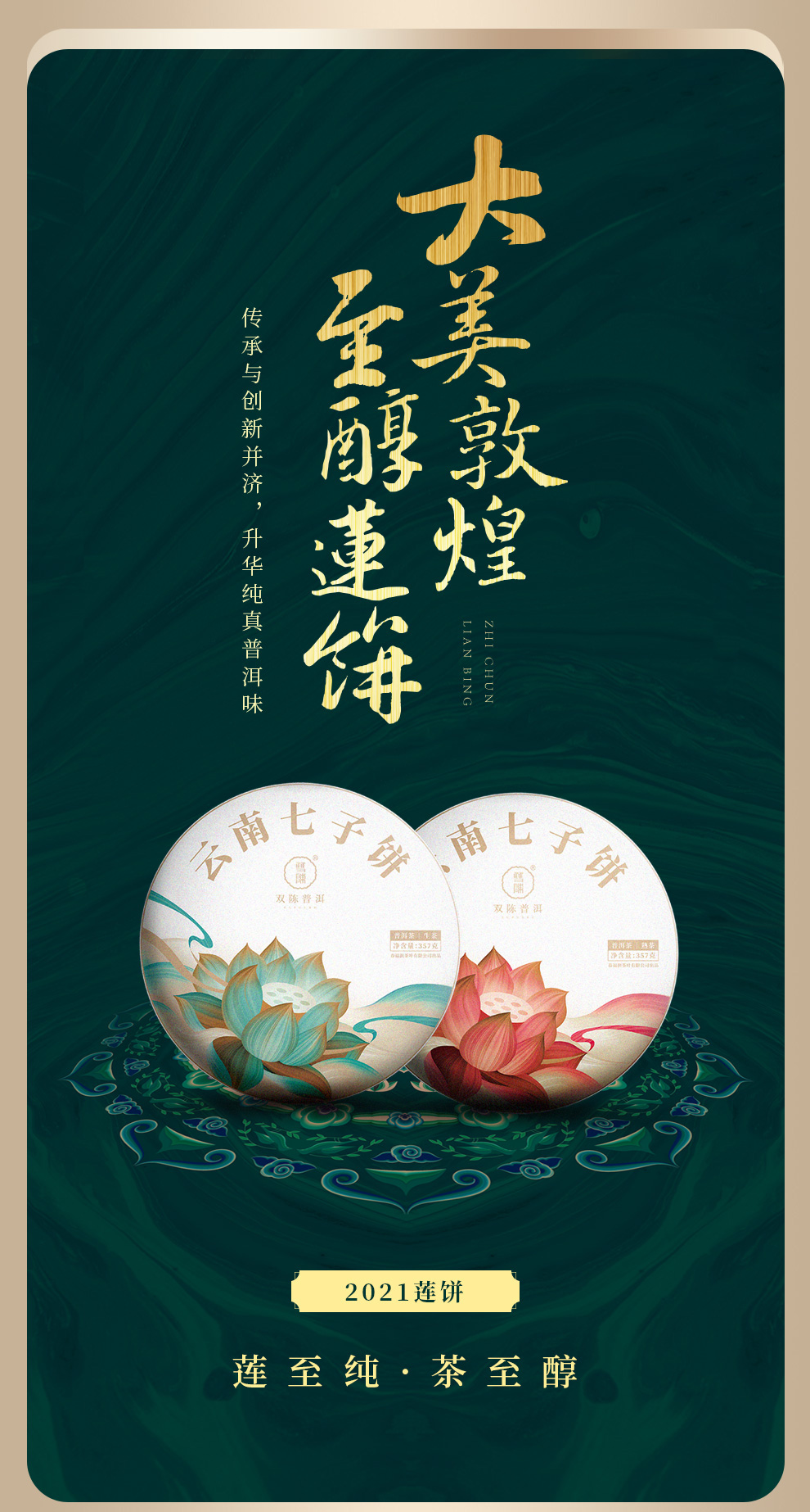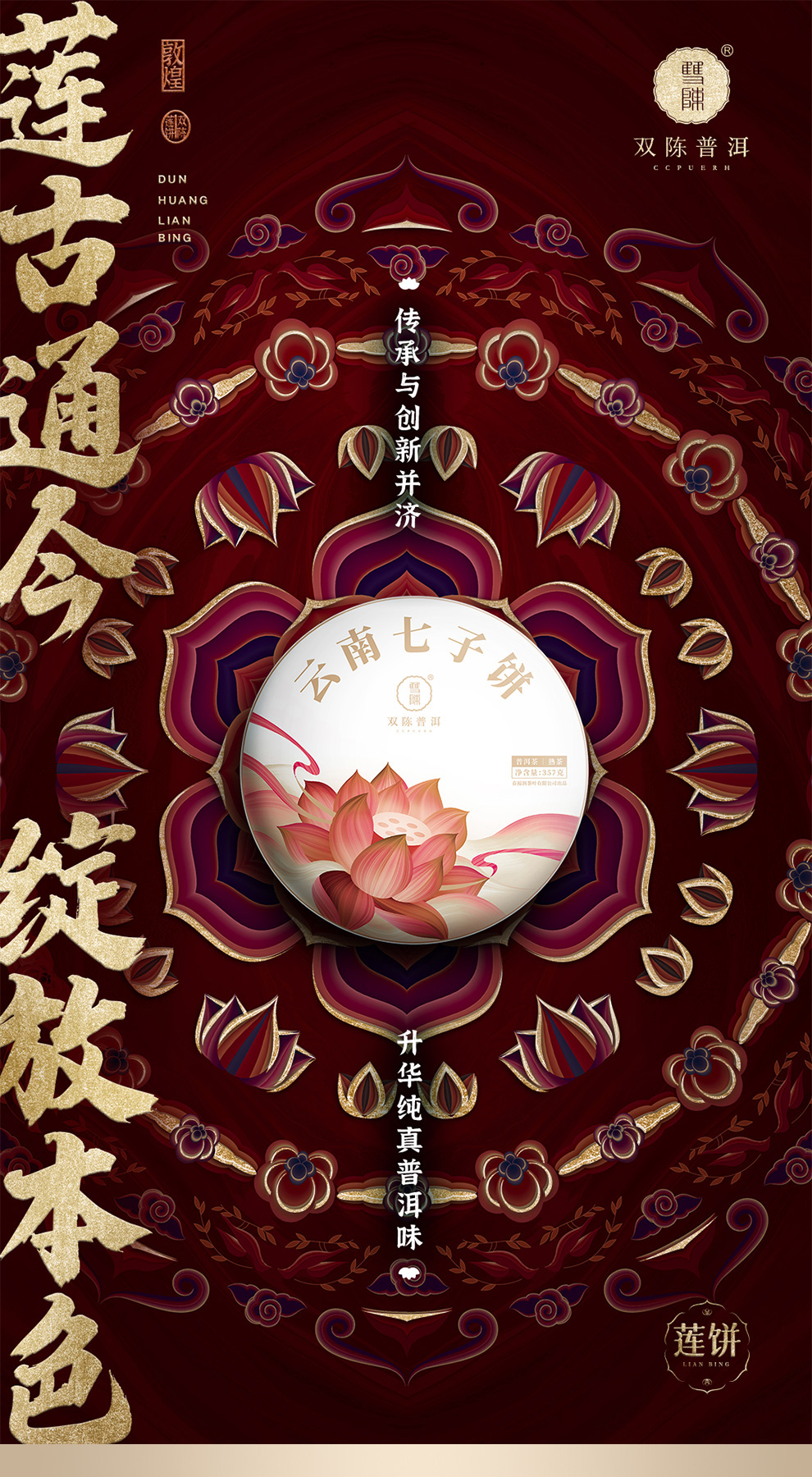 双陈普洱茶【2021年莲饼】熟茶357克云南七子饼茶双陈标志系列延续