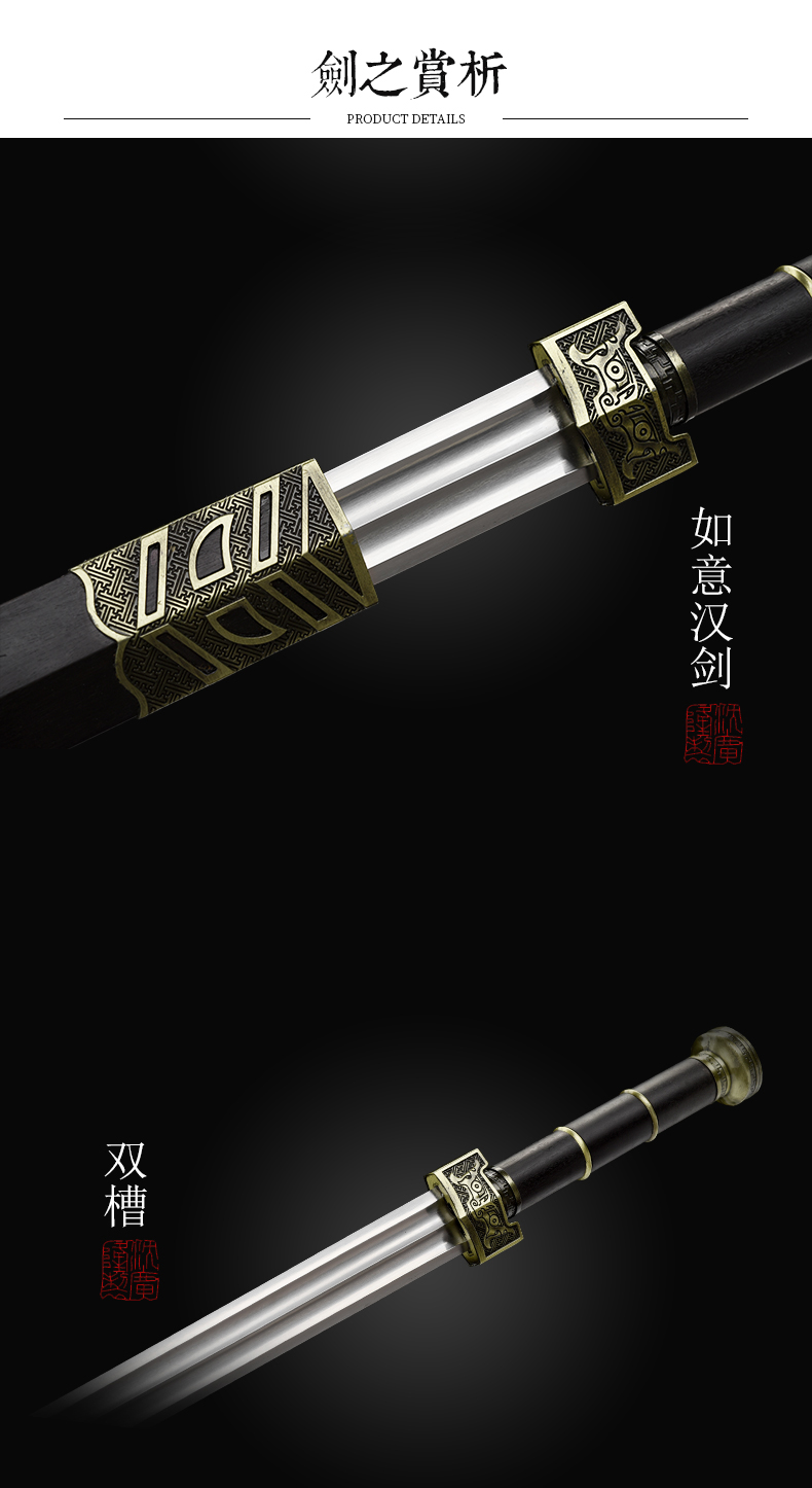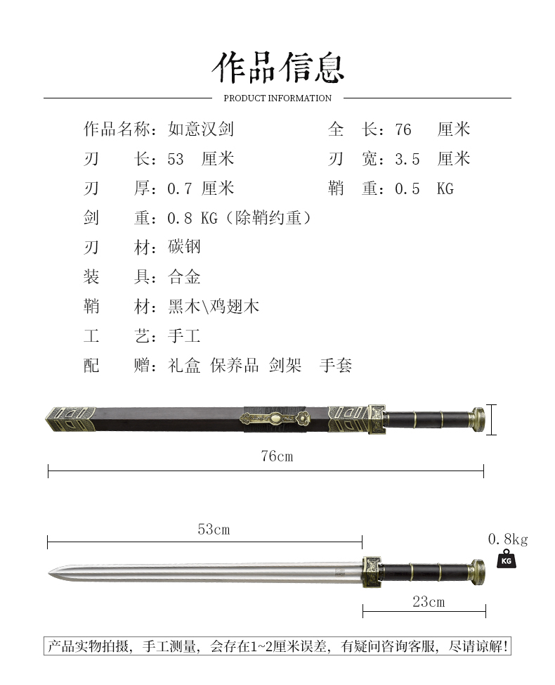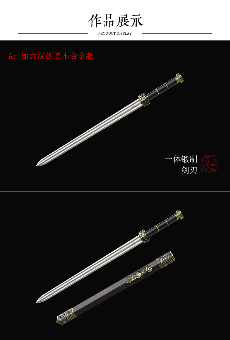 如意汉剑 高碳钢入门汉剑一体刀剑 传统宝剑 龙泉沈广隆宝剑 未开刃