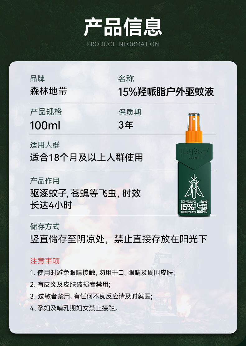【另得野趣款25ml驱蚊液】森林地带 15%派卡瑞丁(羟派脂)驱蚊液100ml肩章款