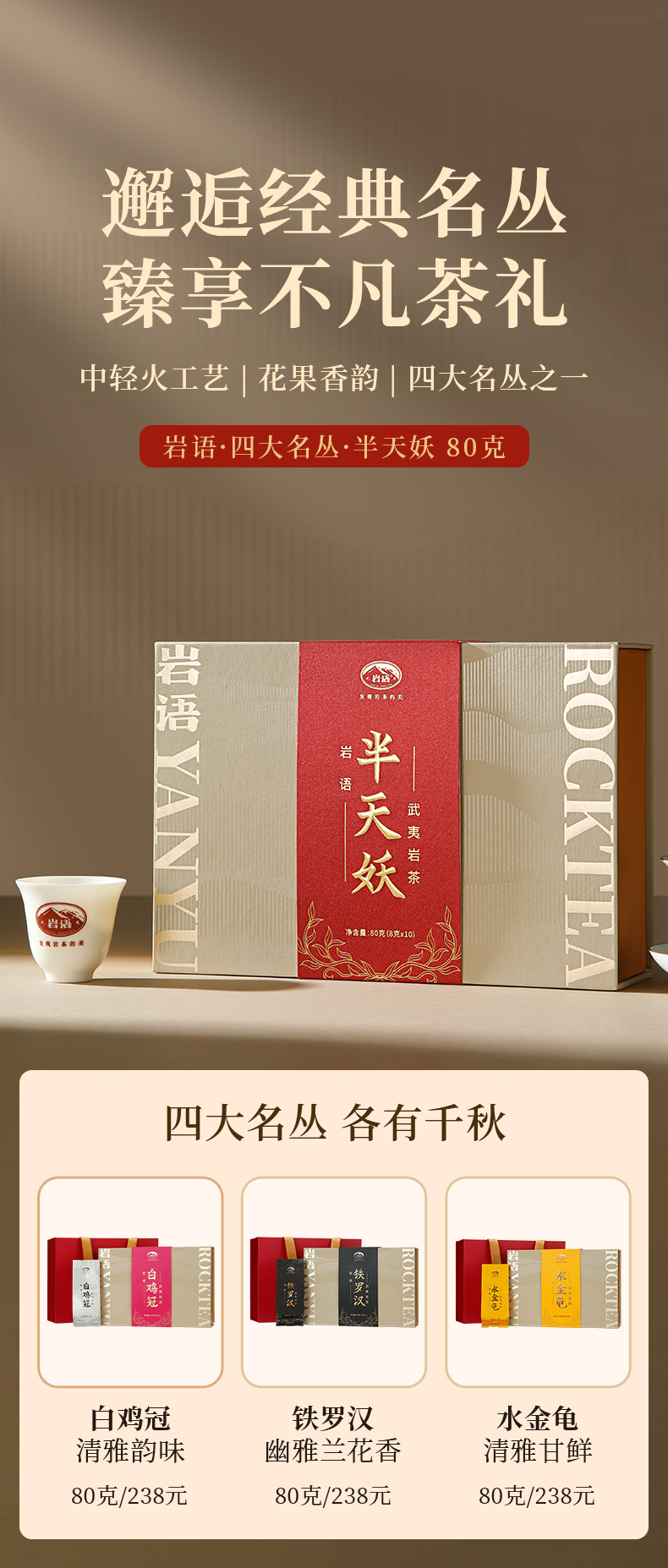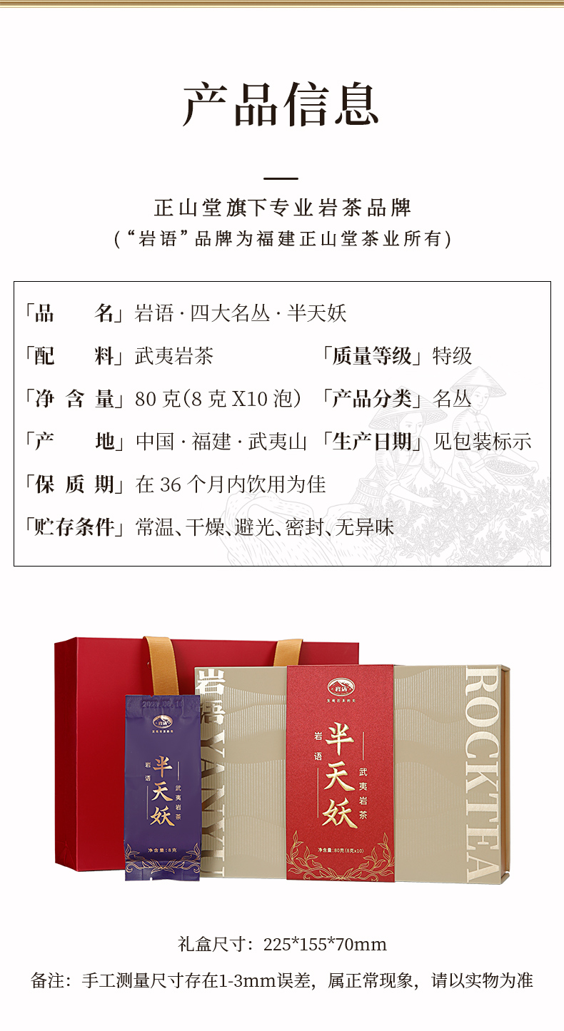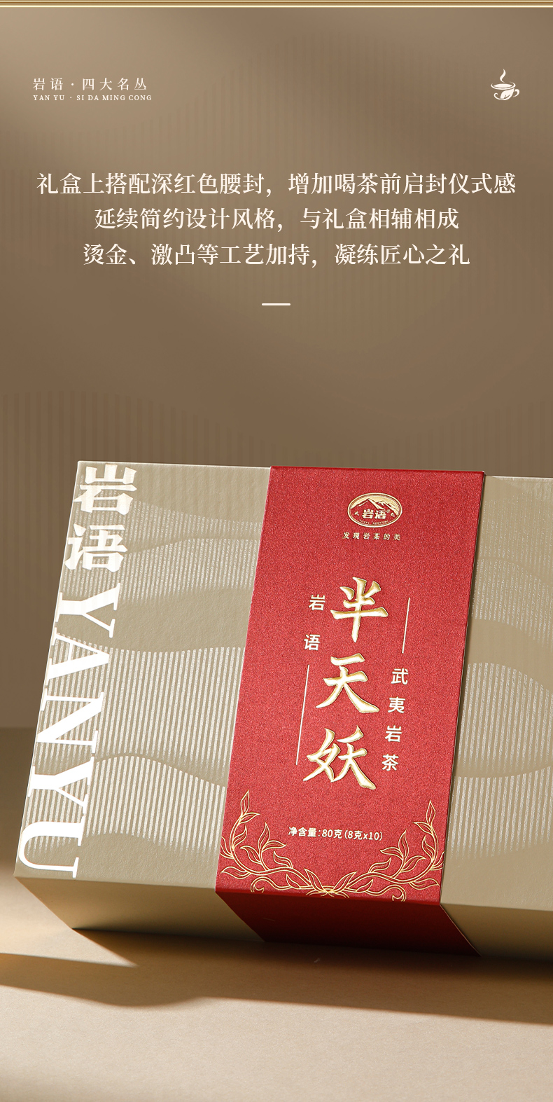 岩语 半天妖礼盒装 武夷岩茶正宗四大名丛特级乌龙茶茶叶送礼80g
