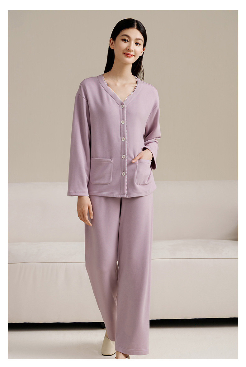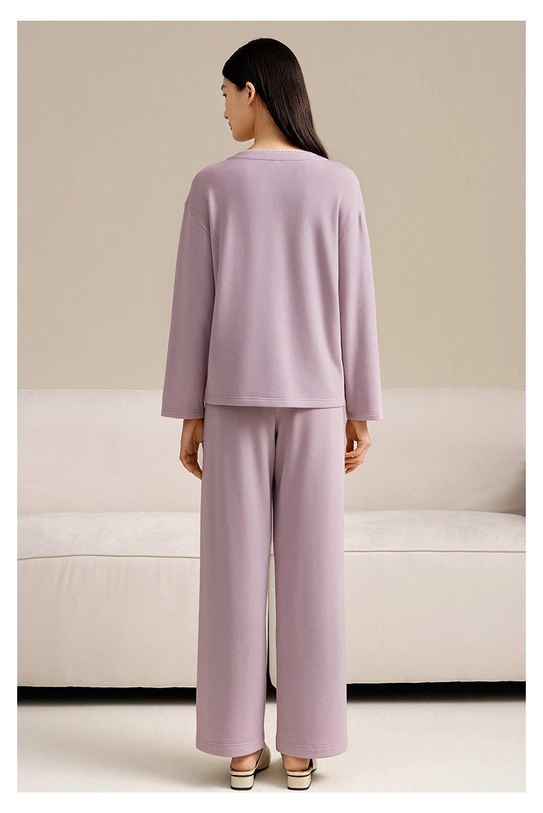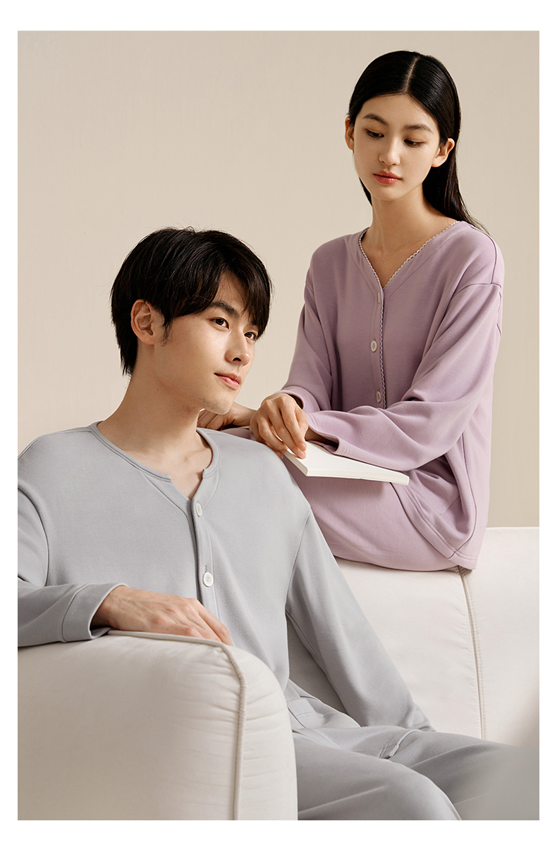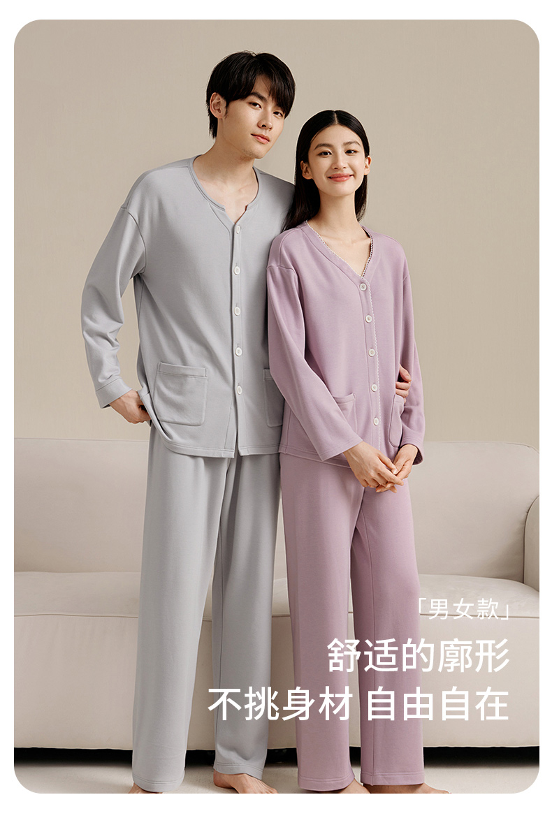 【暖暖家居服】金三塔桑蚕丝拉绒情侣衣裤套秋冬保暖宽松家居服套装 YZFED203/YZMED204