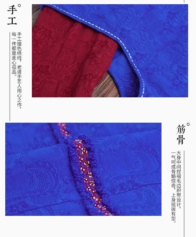 郁蓝酡咋假两件提花连衣裙
