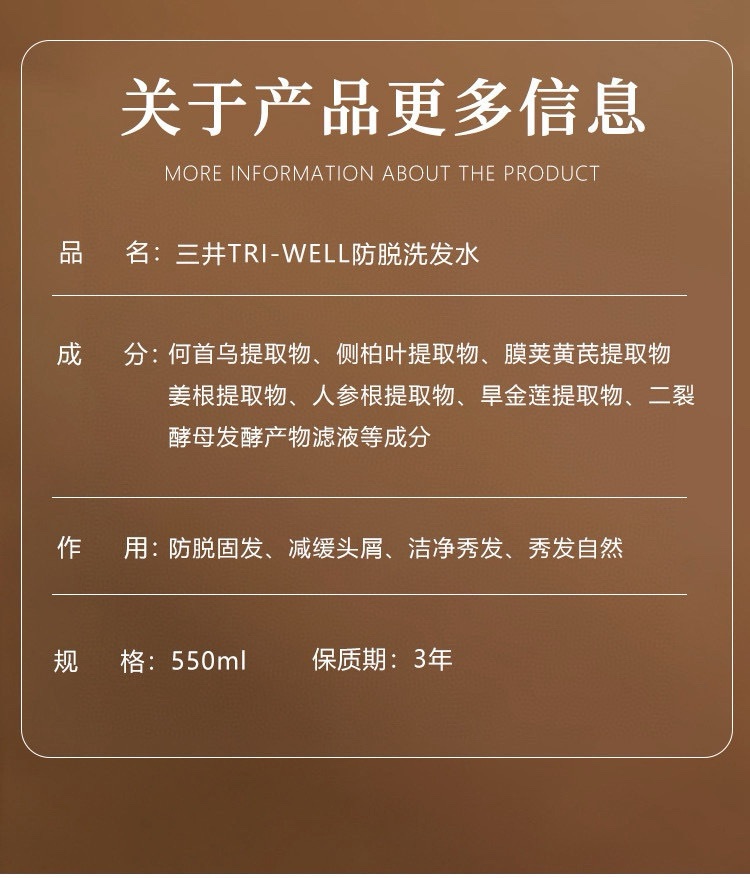 持证上岗【三井TRI-WELL防脱洗发水】横扫秃头怪、大油田!添加防脱界黑马可比落,防脱+固发+去屑+止痒+控油一瓶通通拿捏