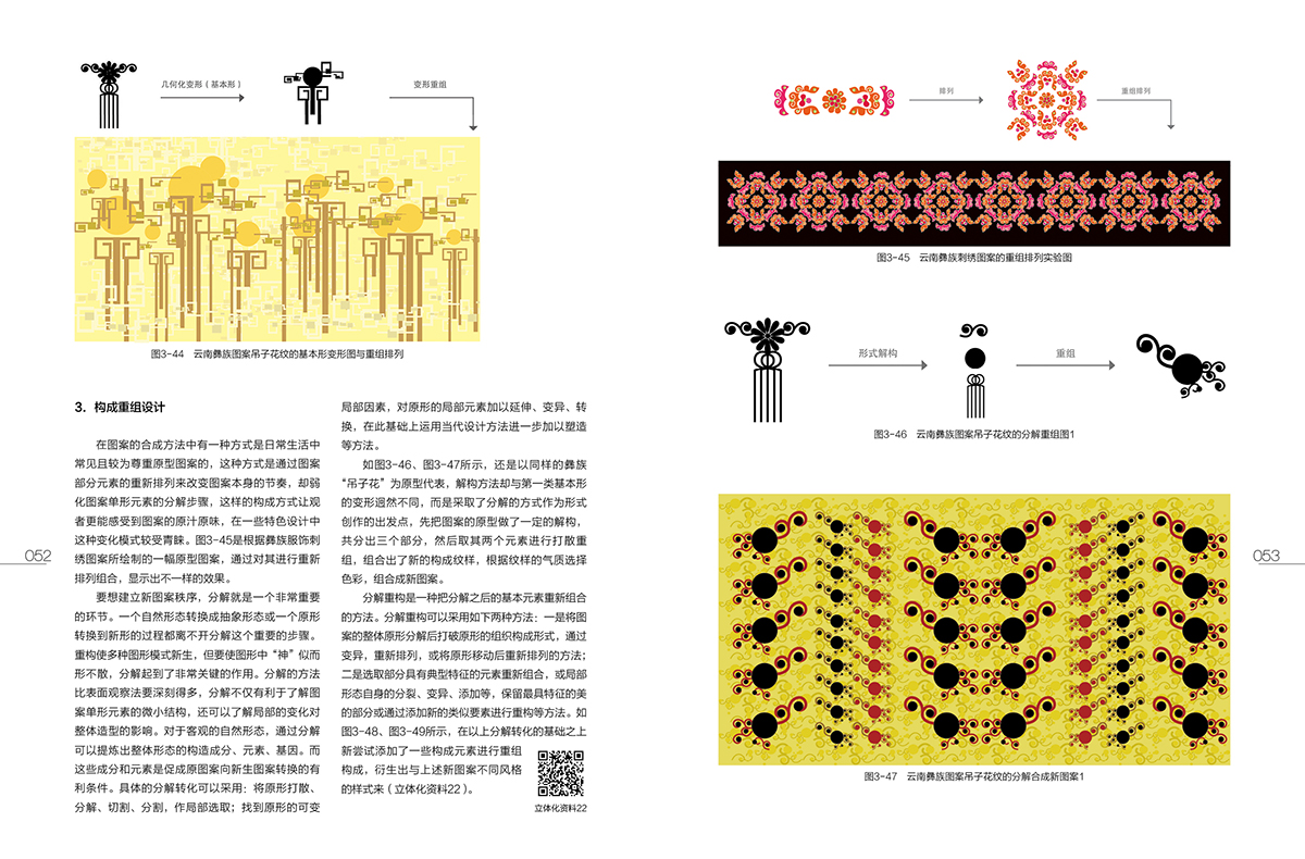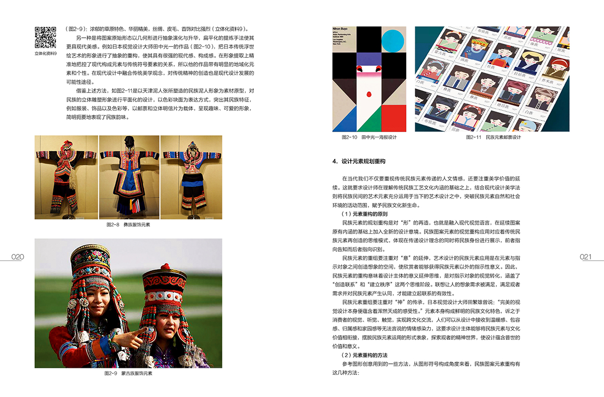 本教材为基础课程与民族类院校教学特点密切结合的教材类型,主体内容符合艺术设计专业教育教学的基本原则。教材结合民族类大学艺术设计专业的教育教学特点,对民族文化和视觉元素与创意设计进行有机整合,主要从民族元素设计概述、民族文化调研与设计分析、民族图案元素的改良、民族色彩文化与重构、民族手工艺的新媒介创意、时尚文化与民族元素融合等几个方面进行了深入、全面的阐述,并根据实际教学需求和课程设置情况,拟定了相关配套课时,更精准地为民族类院校提供更适合民族地区专业教学和人才培养目标的教材资料。
