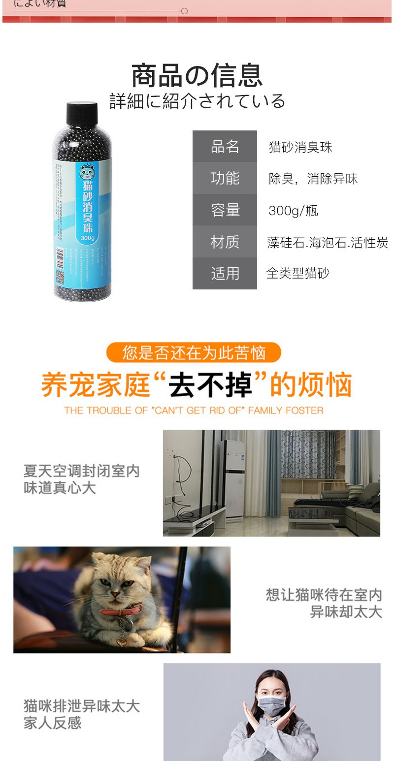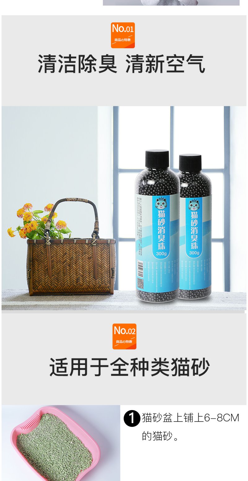 瓜洲牧【猫砂除臭珠】除臭剂猫屎伴侣猫砂盆宠物300g/瓶