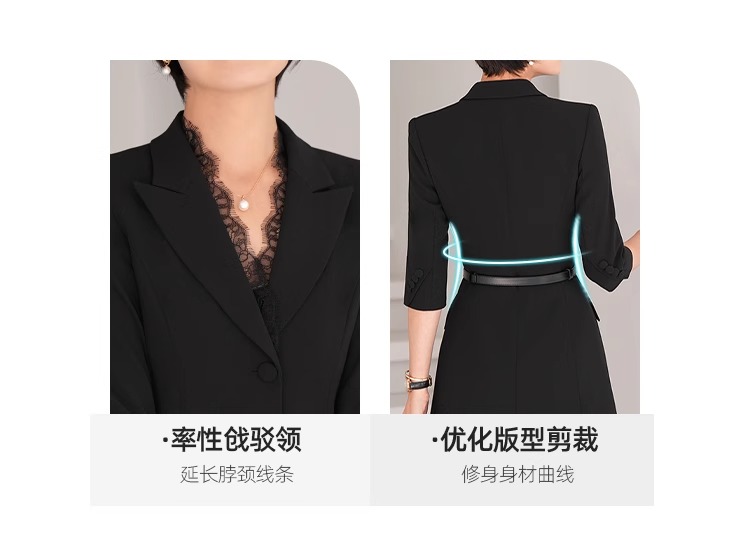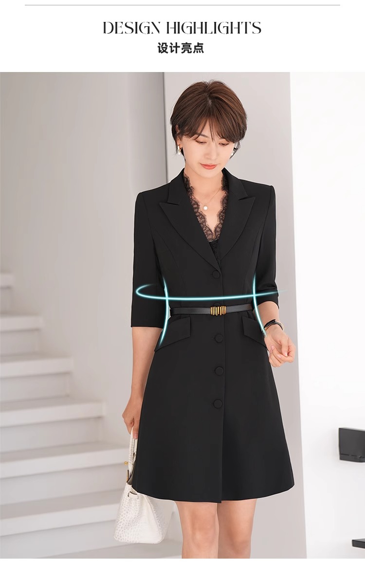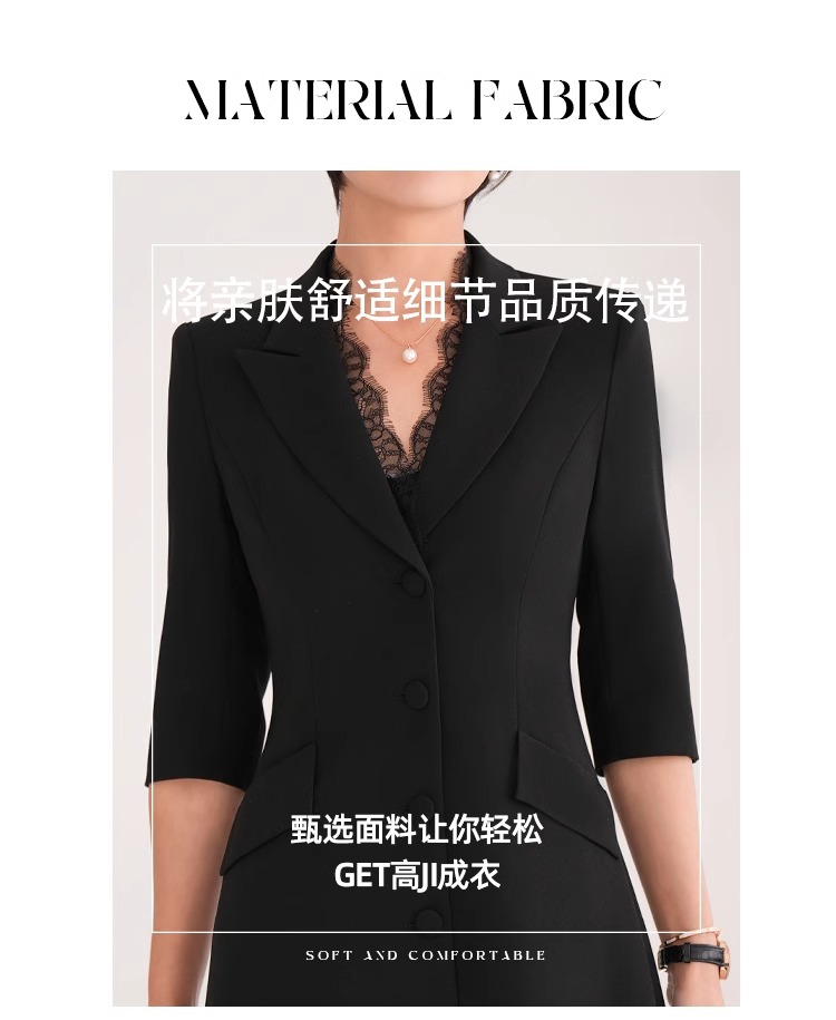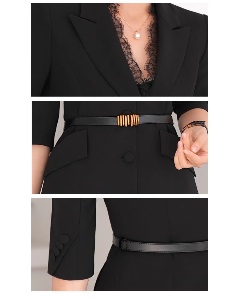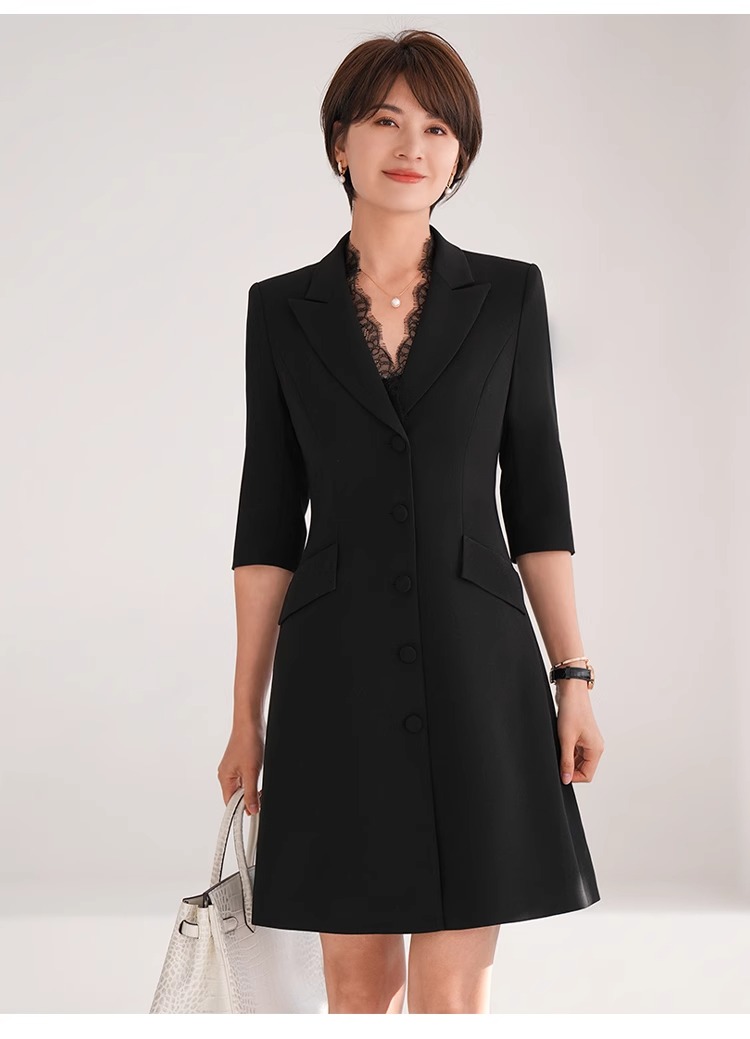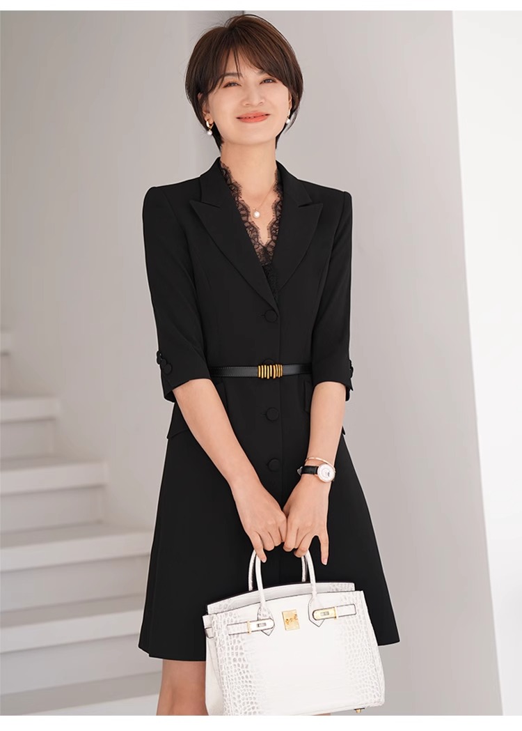 春装女2024年新款女蕾丝西装连衣裙黑色职业装气质翘肩连身裙