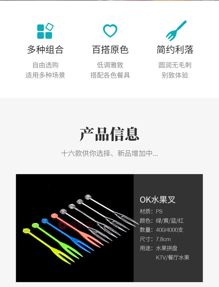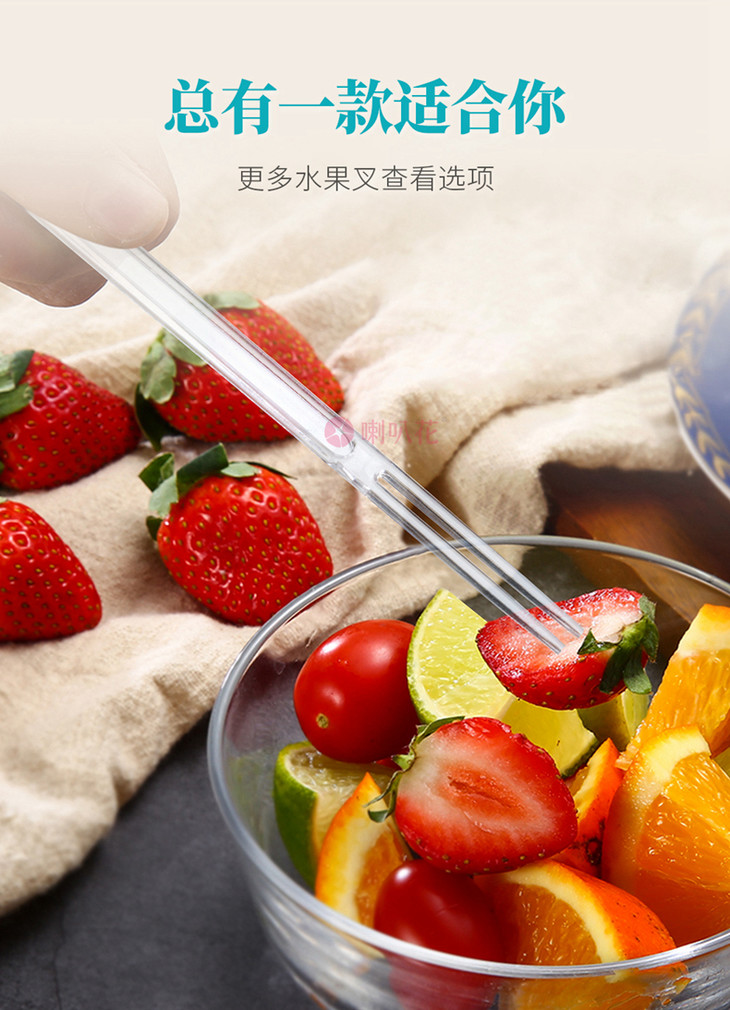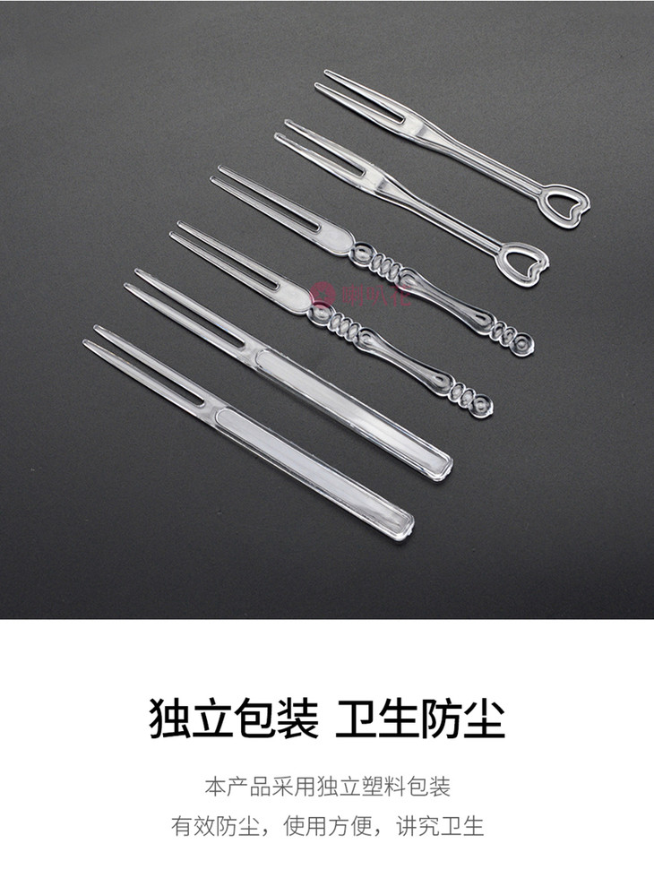 喇叭花 一次性塑料叉水果刺两齿竹节果叉透明果叉水果叉果签400支