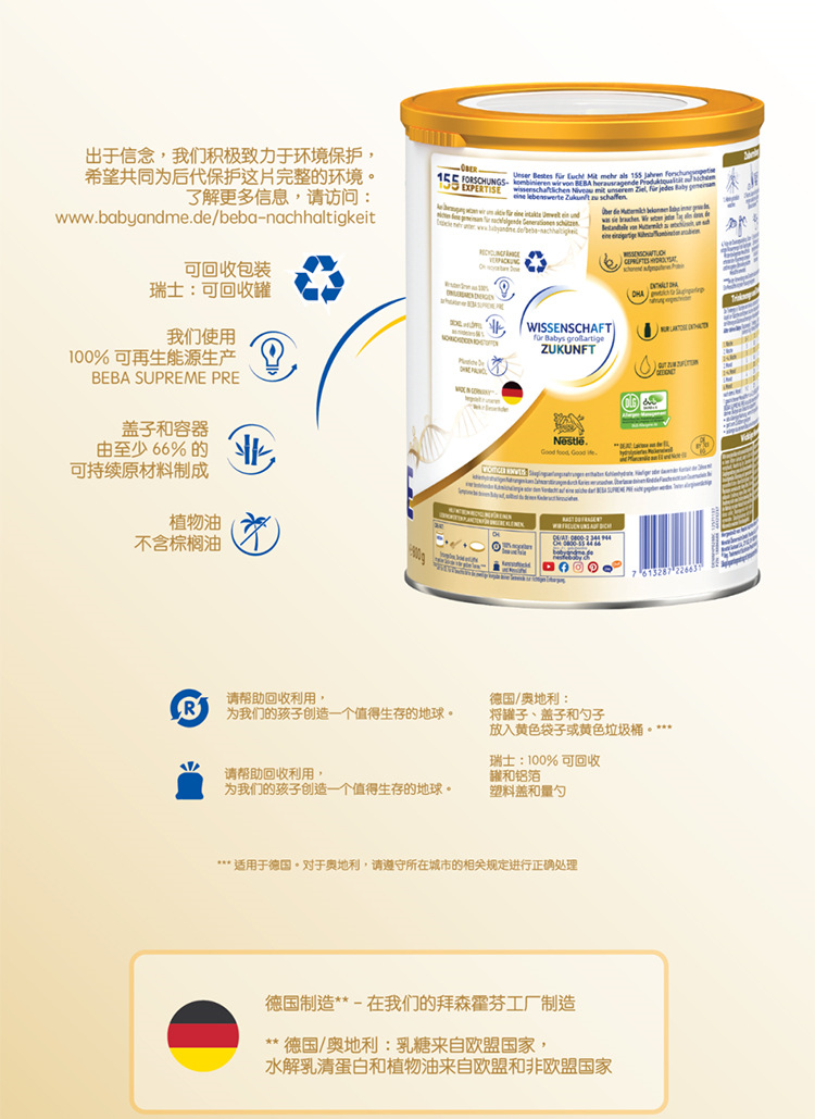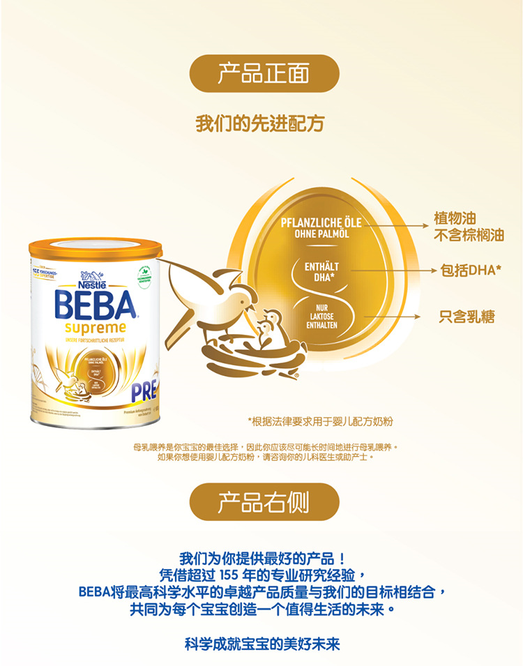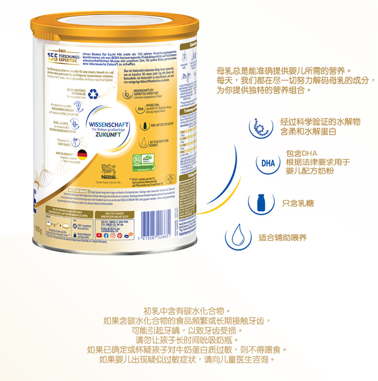 【保税仓】2024新版 德国雀巢贝巴BEBA至尊版6HMO超高端新生儿婴幼儿奶粉pre段800g