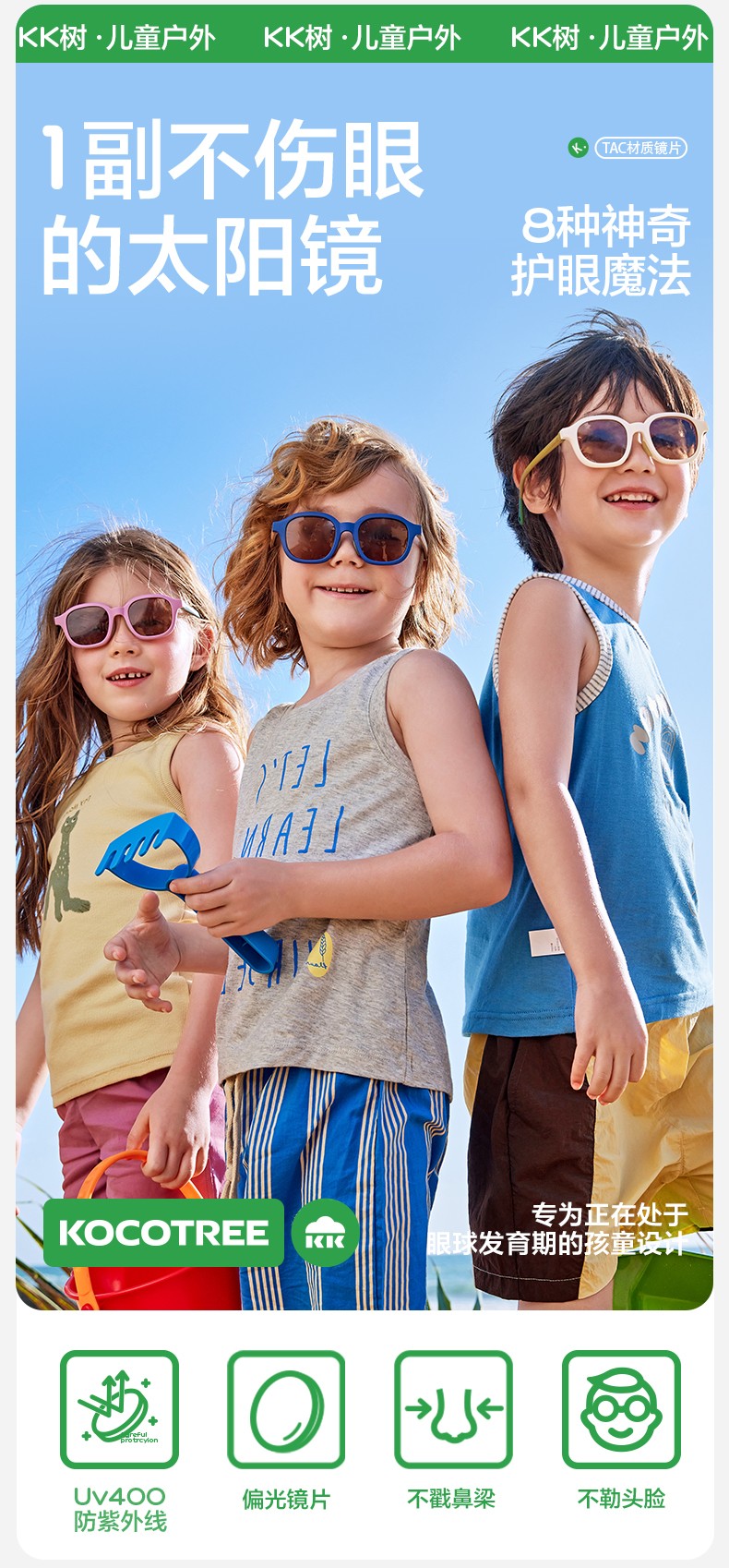 KK树儿童墨镜男孩女童偏光防紫外线太阳眼镜宝宝护眼墨镜2024新款小软糖太阳镜