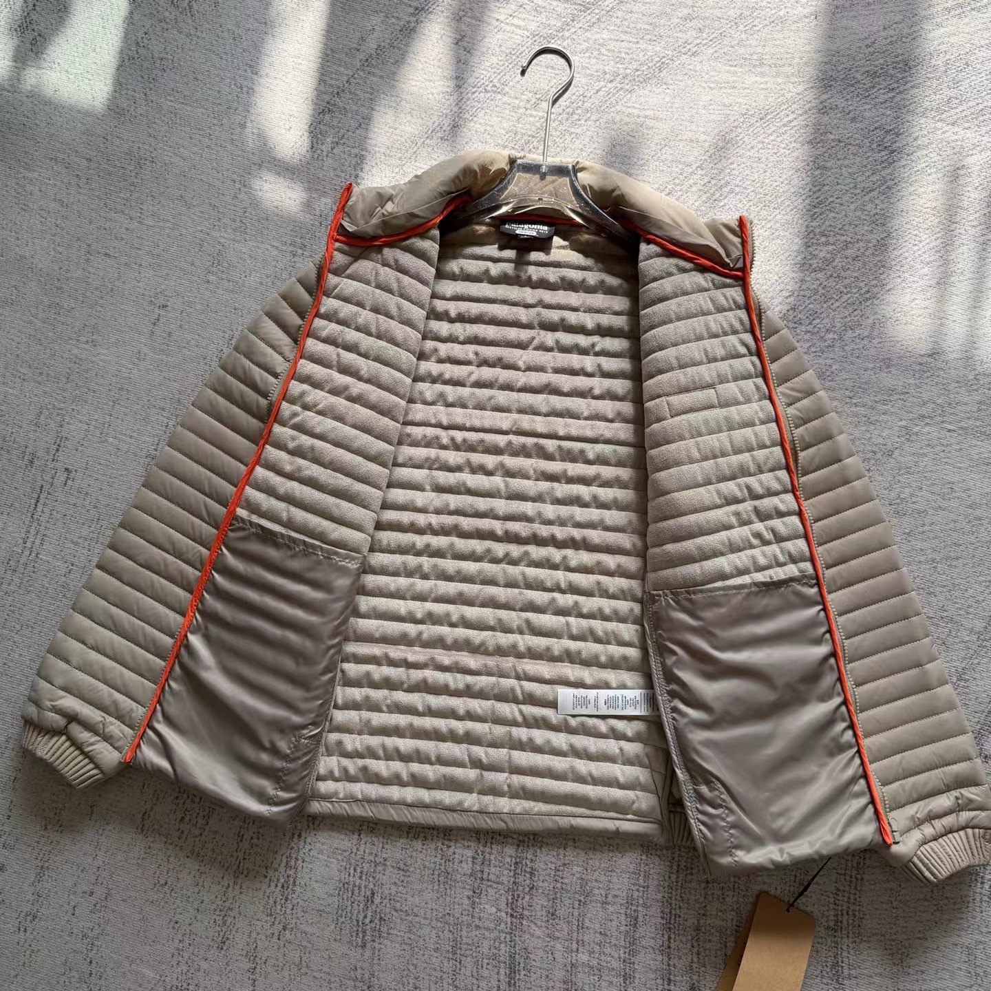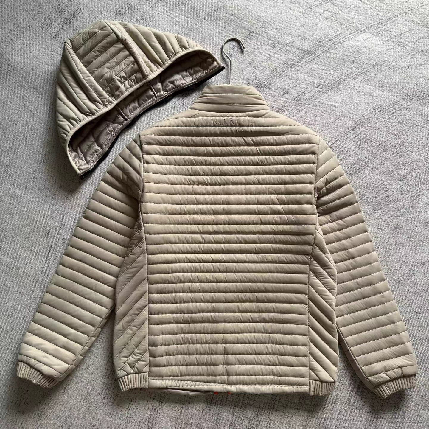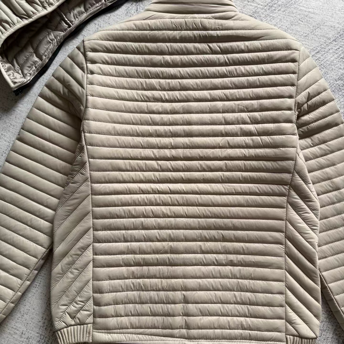 户外休闲轻保暖排骨棉服,一件兼具户外防护性能与日常舒适度的情侣款排骨棉服,防风防水还轻暖,户外、通勤都能穿!DWR防水涂层与户外级细节设计取胜的排骨棉服,情侣穿显默契,户外日常都实用,保暖不臃肿!he心面料:表层聚酯防撕裂纸+DWR耐用防水涂层,防泼溅抗撕裂;衬里复绒且360°全方位包边,保暖不钻风,户外场景也适配。细节设计:中心前部Vislon?拉链带芯吸式防风盖+拉链车库(护下巴更舒适);双暖手袋配同品牌拉链+车库,可拆卸帽领+尼龙束紧袖口,兼顾保暖与实用性。五金与品质:五金全部开模定制,附吊牌书说明解析,细节对标品牌户外级标准,耐用性拉满。
