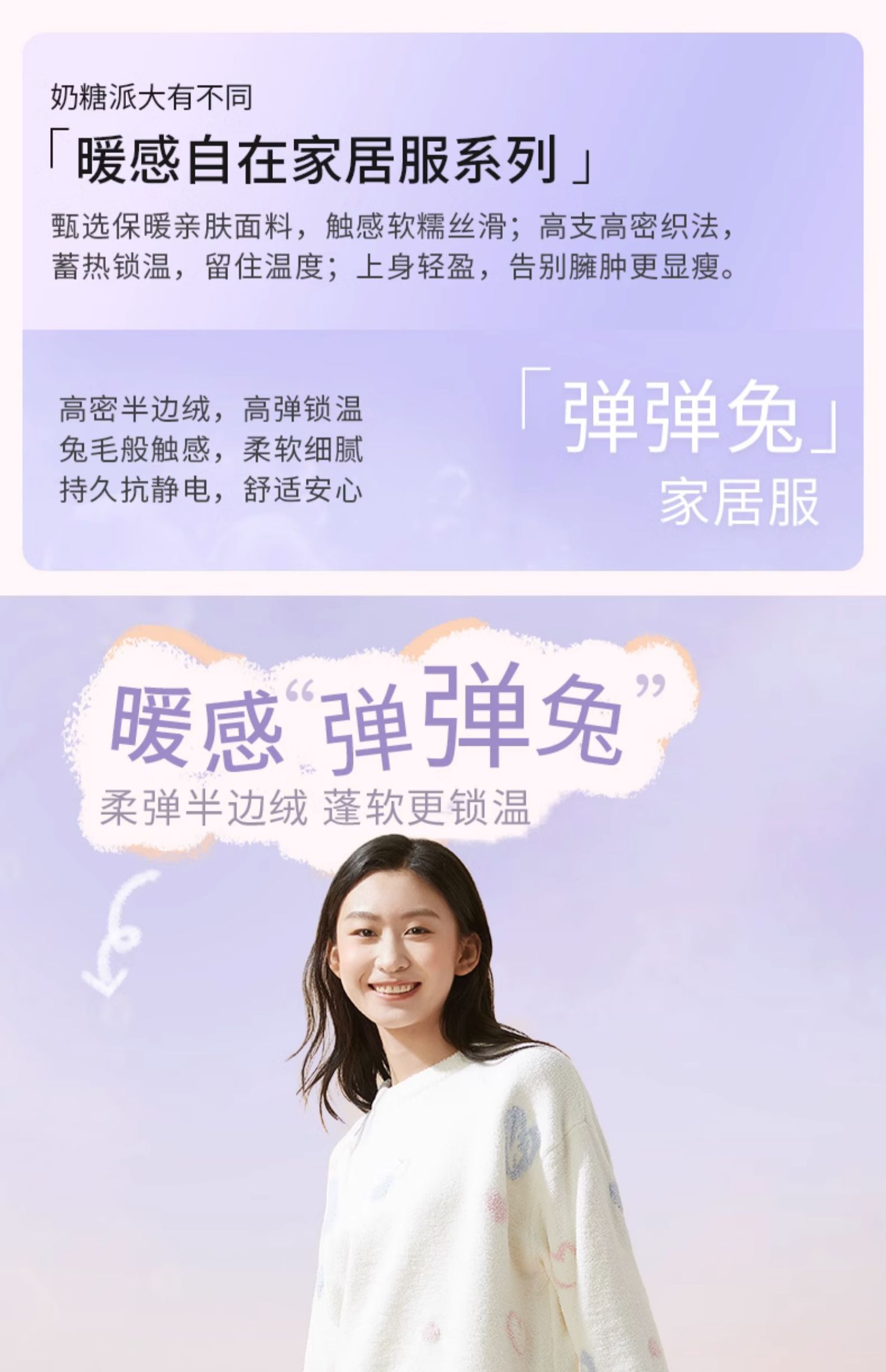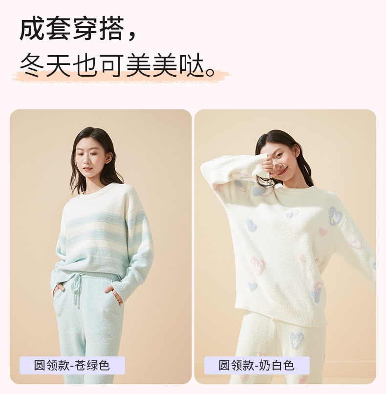 奶糖派大胸显瘦家居服套装半边绒保暖绒软糯可外穿睡衣秋冬防静电