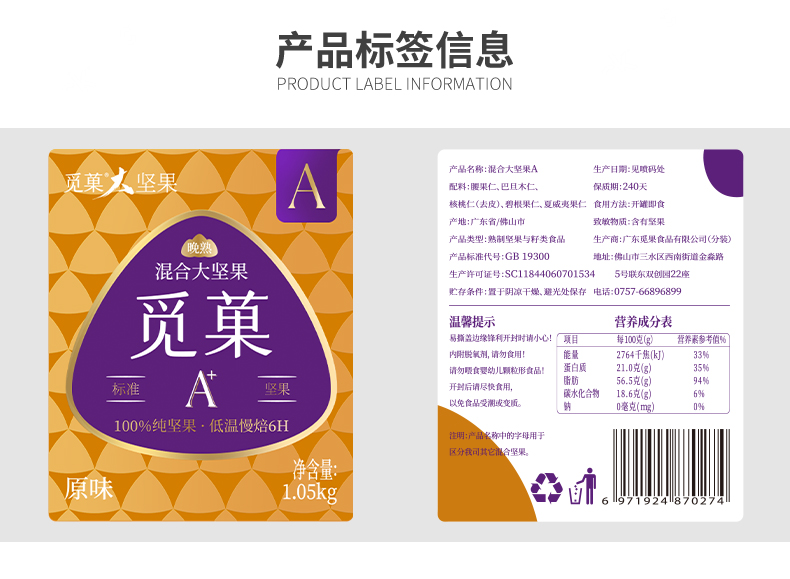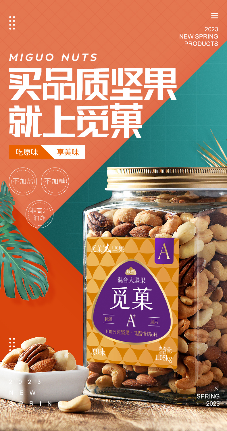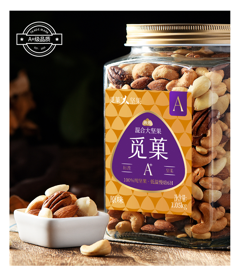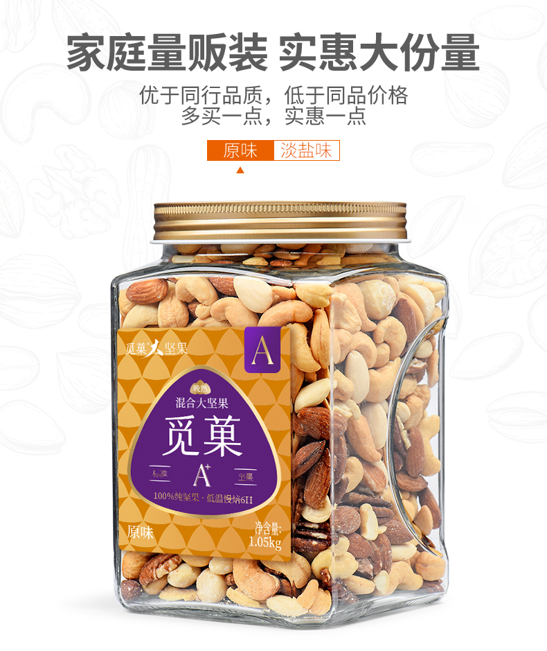 觅菓大坚果品质混合纯坚果1.05kg干果学生白领孕妇老人健康零食