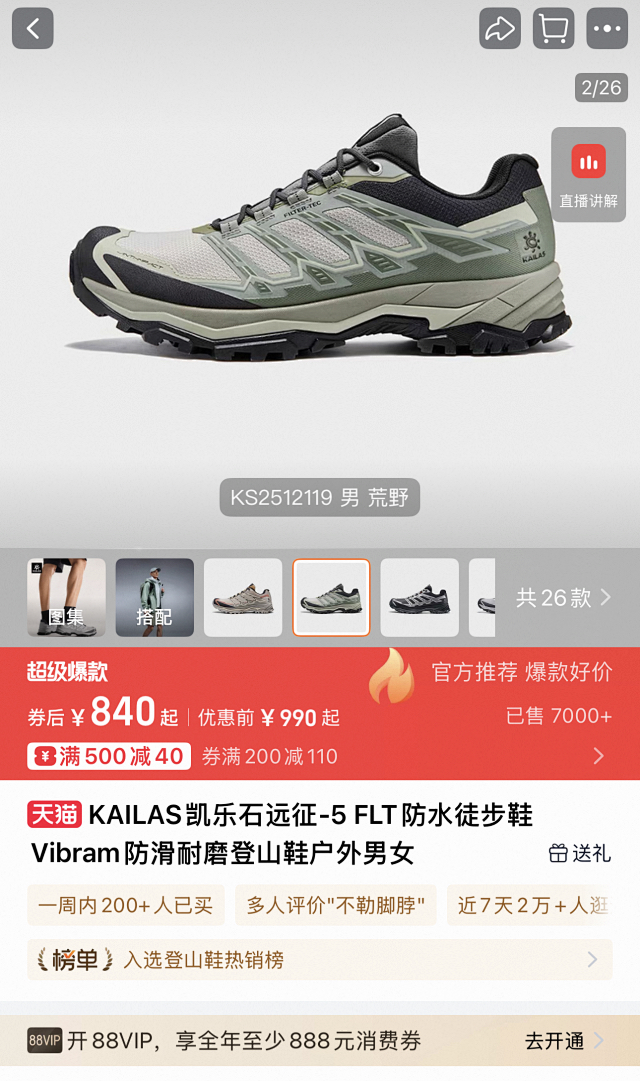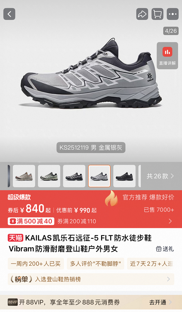 【秒杀价已调 直接拍】不偏码 凯乐石KAILAS 远征5 FLT 舒适简约经典登山 防滑耐磨防水 低帮 徒步鞋