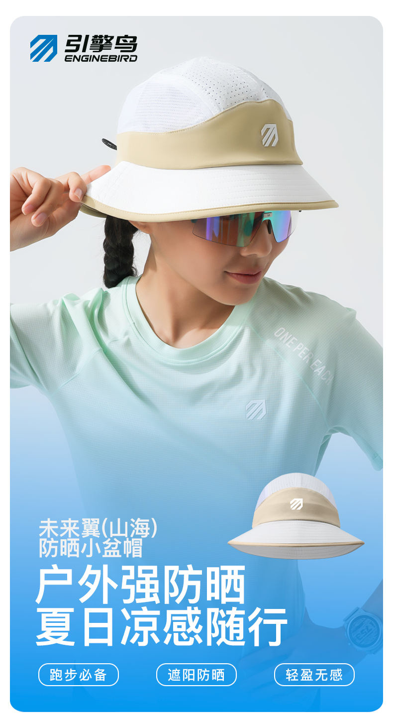 引擎鸟山海防晒小盆帽男女款户外登山徒步遮阳渔夫帽