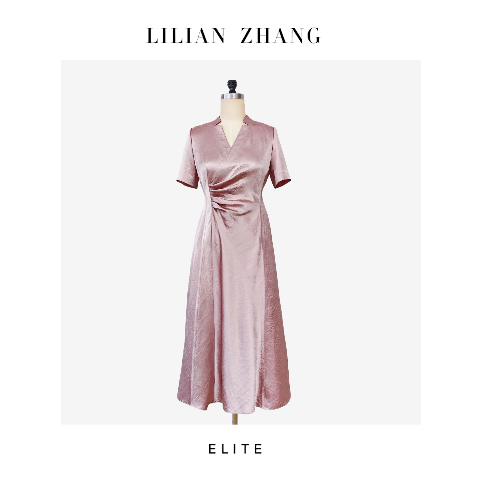 E“定制”——静奢风———“婉约雅韵”——柔粉雅韵醋酸连衣裙 2501048