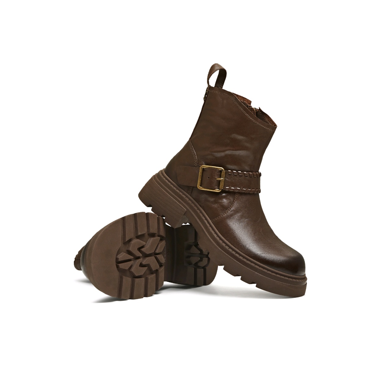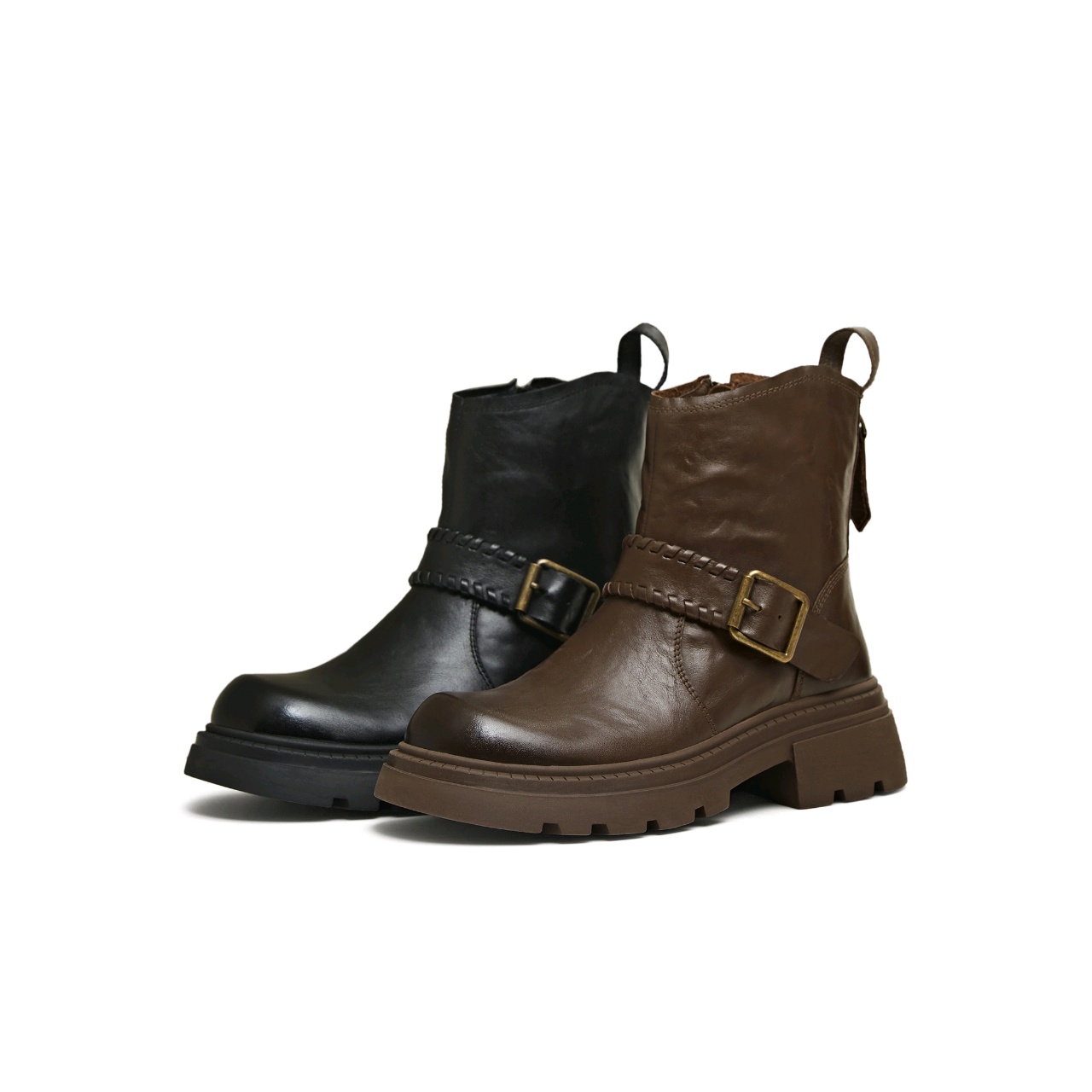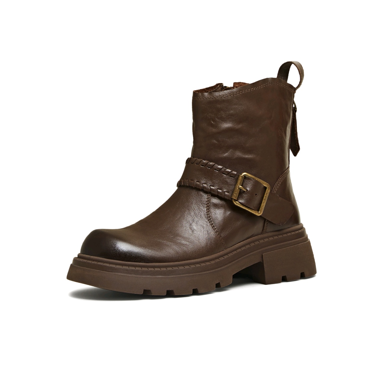 【云粉节】BF楼天美意复古厚底西部靴时装靴女鞋休闲短靴皮靴2025冬新款BK062DZ5吊牌价1399活动价639
