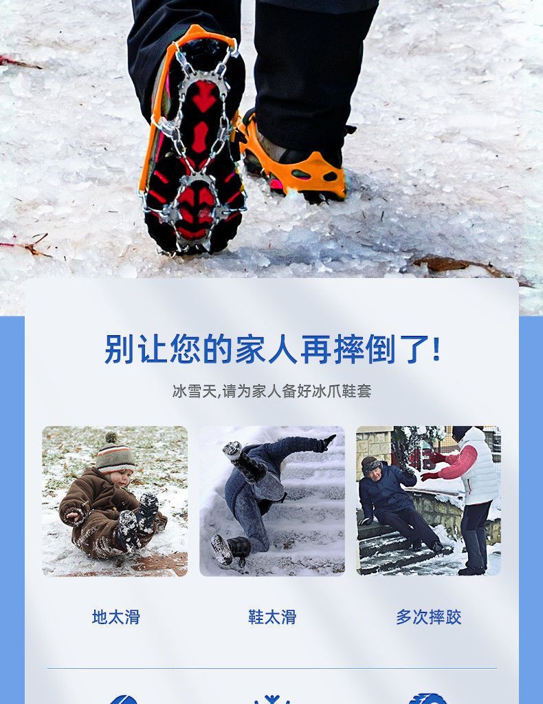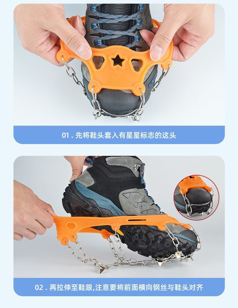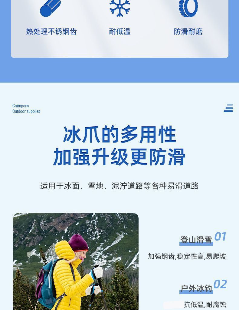 户外用品冰爪防滑鞋套地套钢链攀冰攀岩登山防滑8齿冰爪雪爪装备