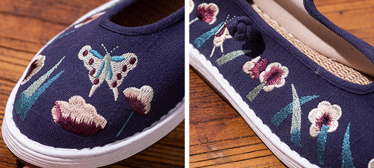 千层底做的鞋,比普通鞋更贴脚型,更软弹、透气。即使穿去逛街一天、甚至爬山都不会觉得累脚,是不管去哪里都适合穿的鞋。