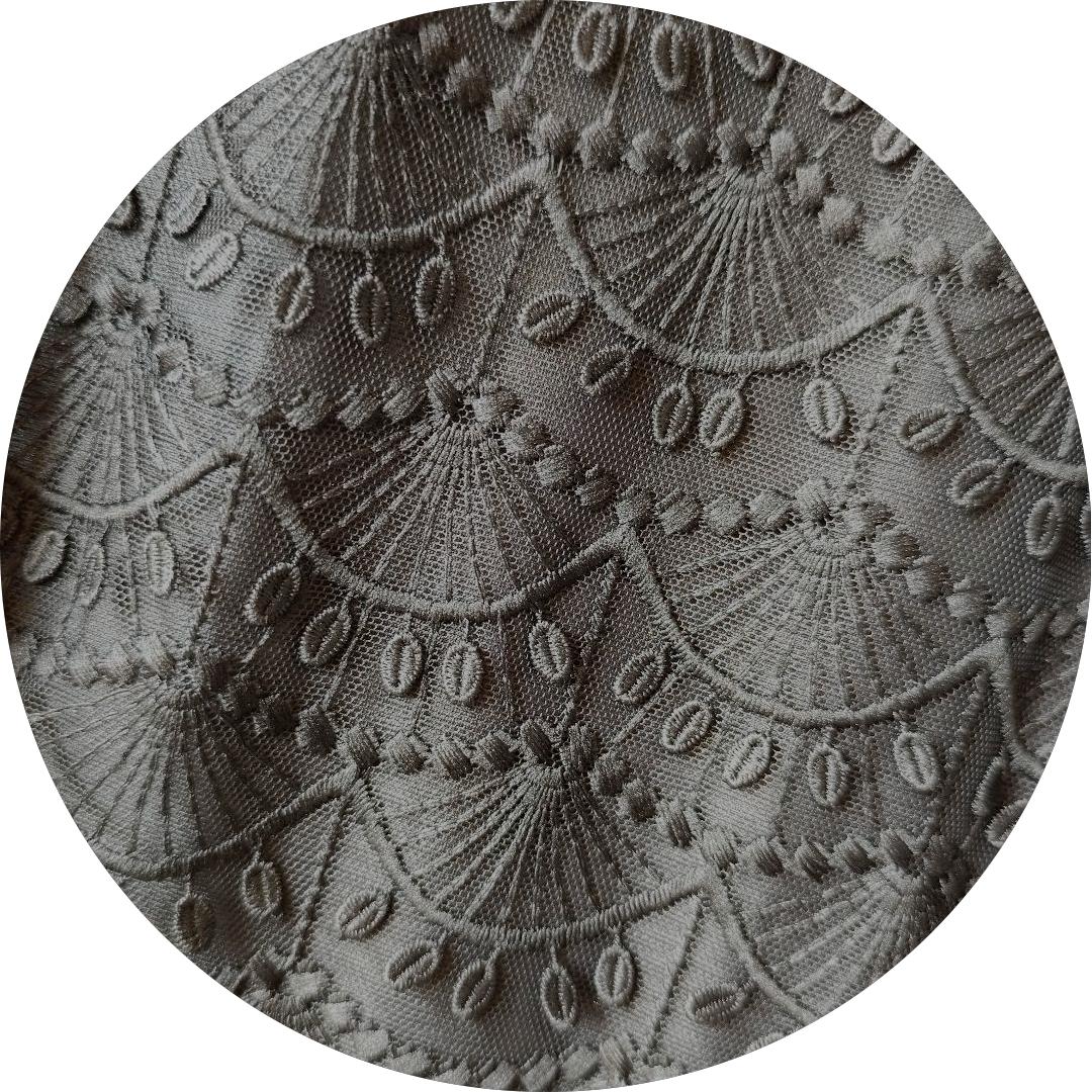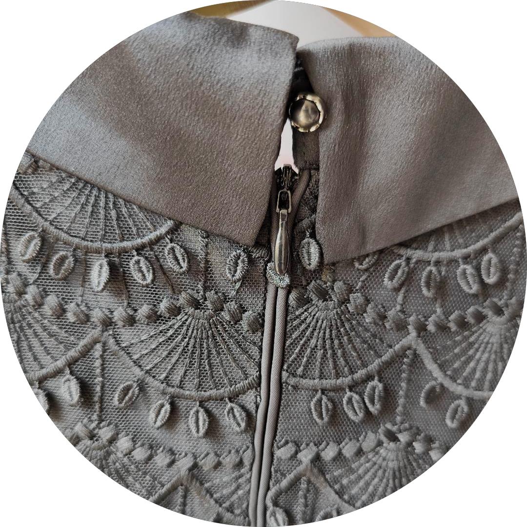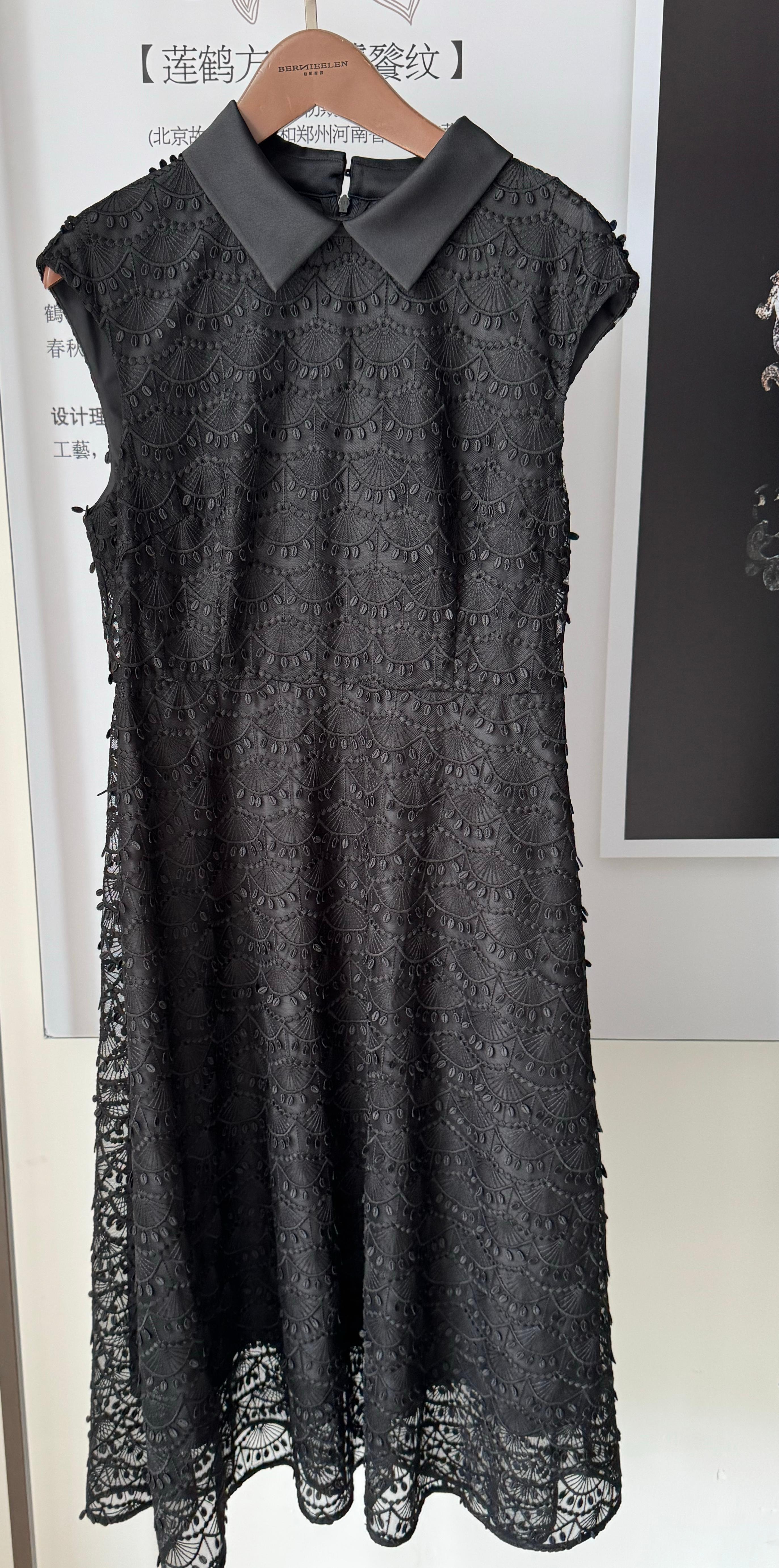 SZ3S16_漆黑色_连衣裙_春夏_翻领无袖盖肩收腰A字中长款莲鹤方壶纹样立体刺绣网纱_高级女装_BERNIEELEN 伯妮斯茵