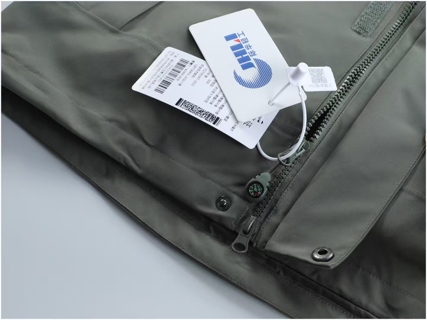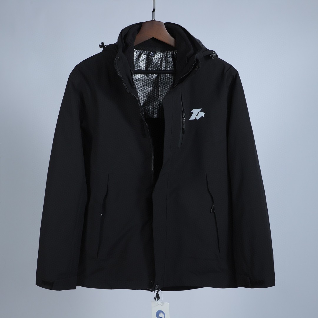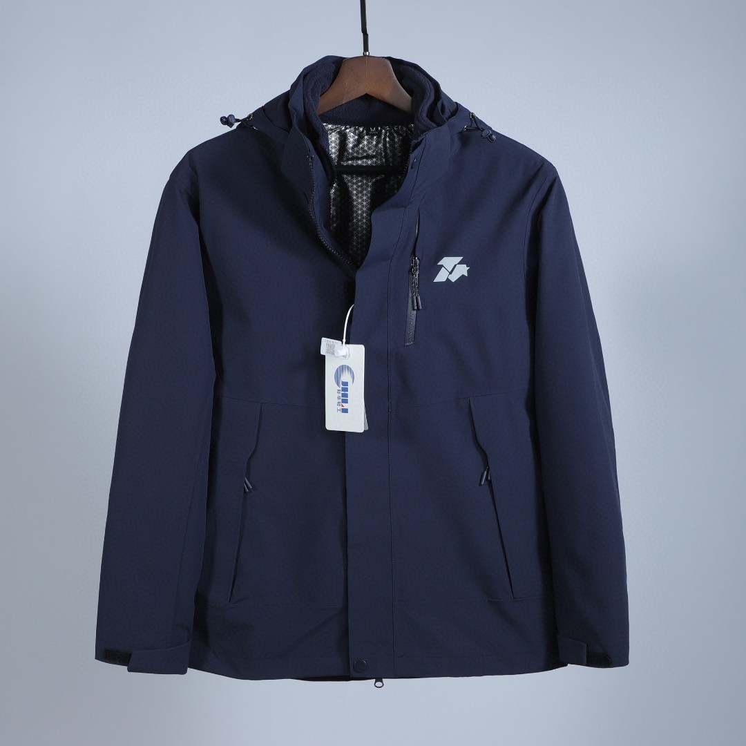 外套执行的冲锋衣执行标准,是真冲锋衣,非夹克风衣执行标准。防雨指数25000,透湿率6300,拉链有指南针,全热封工艺,内胆为摇粒绒+石墨烯