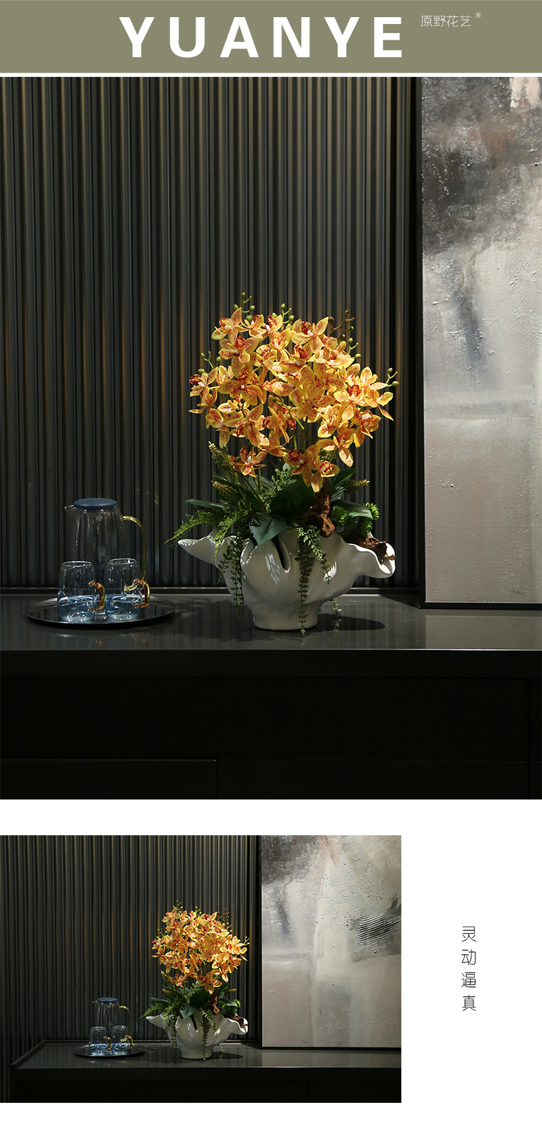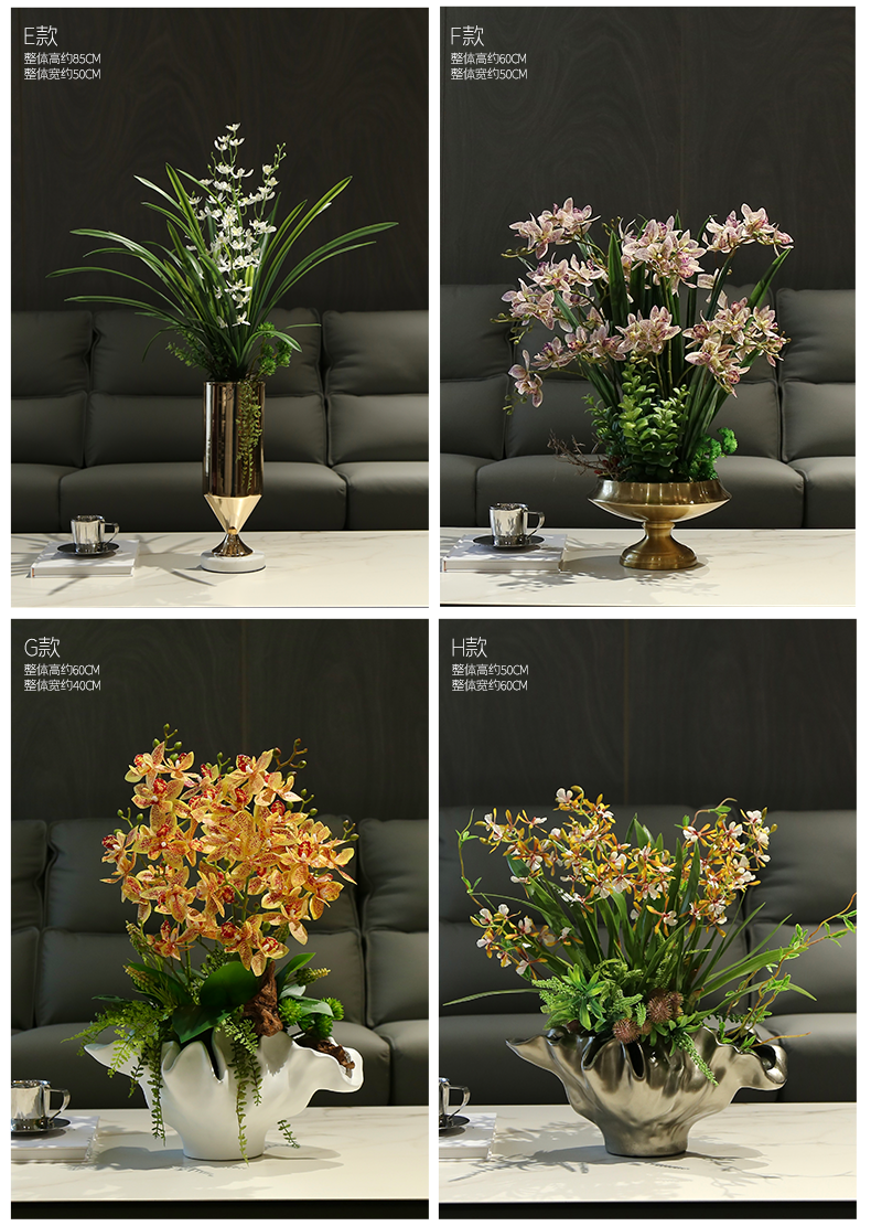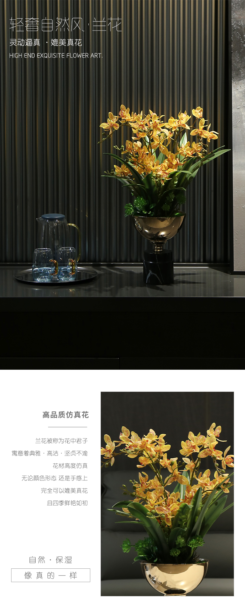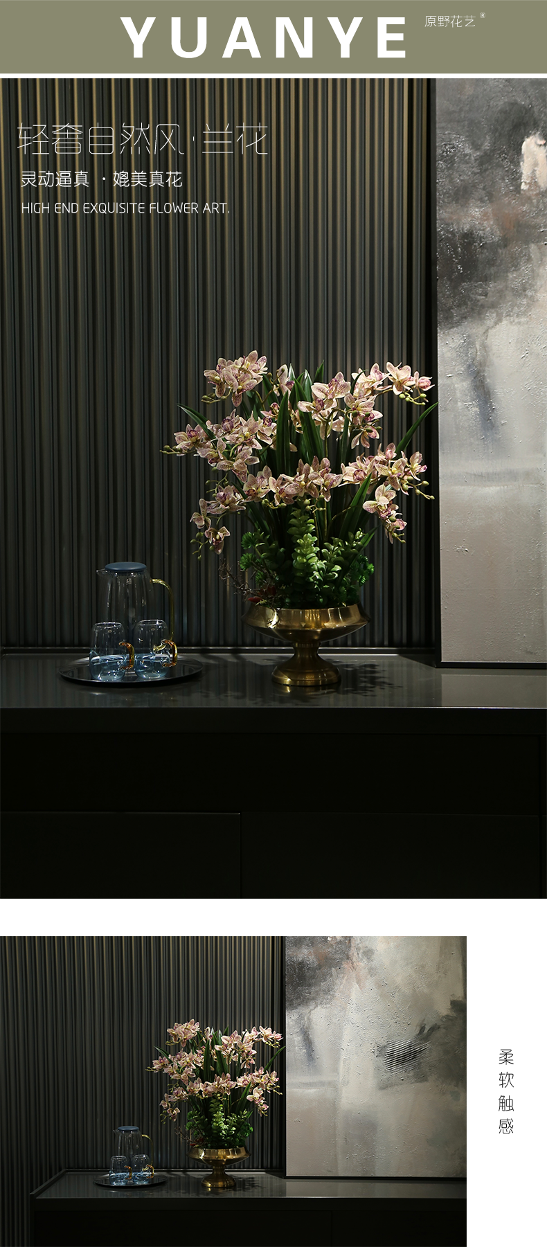 兰花仿真花轻奢高档手感保湿假花盆景客厅大堂酒店餐厅装饰花摆件
