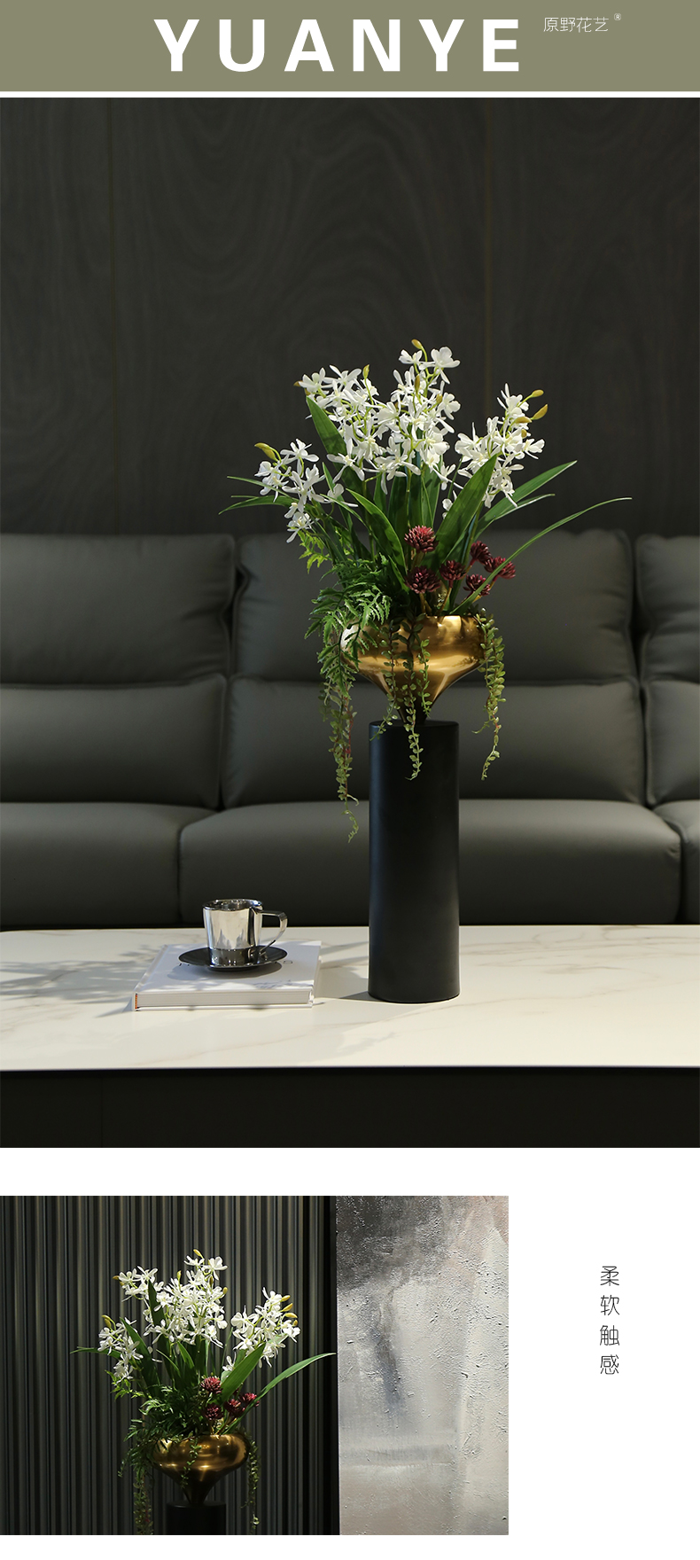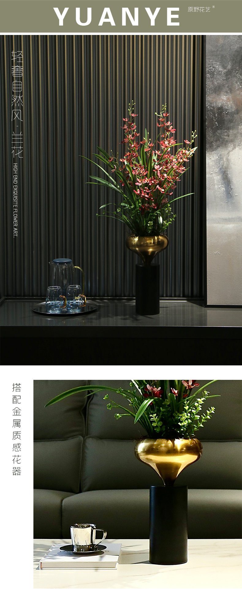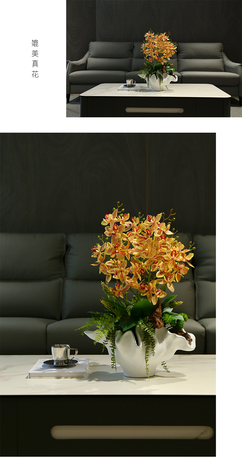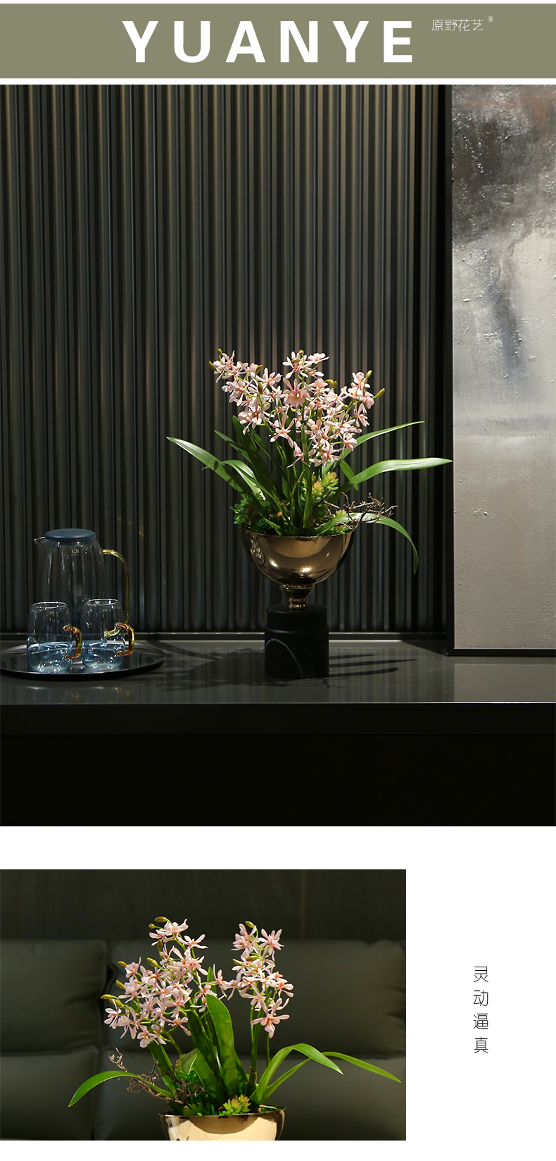 兰花仿真花轻奢高档手感保湿假花盆景客厅大堂酒店餐厅装饰花摆件