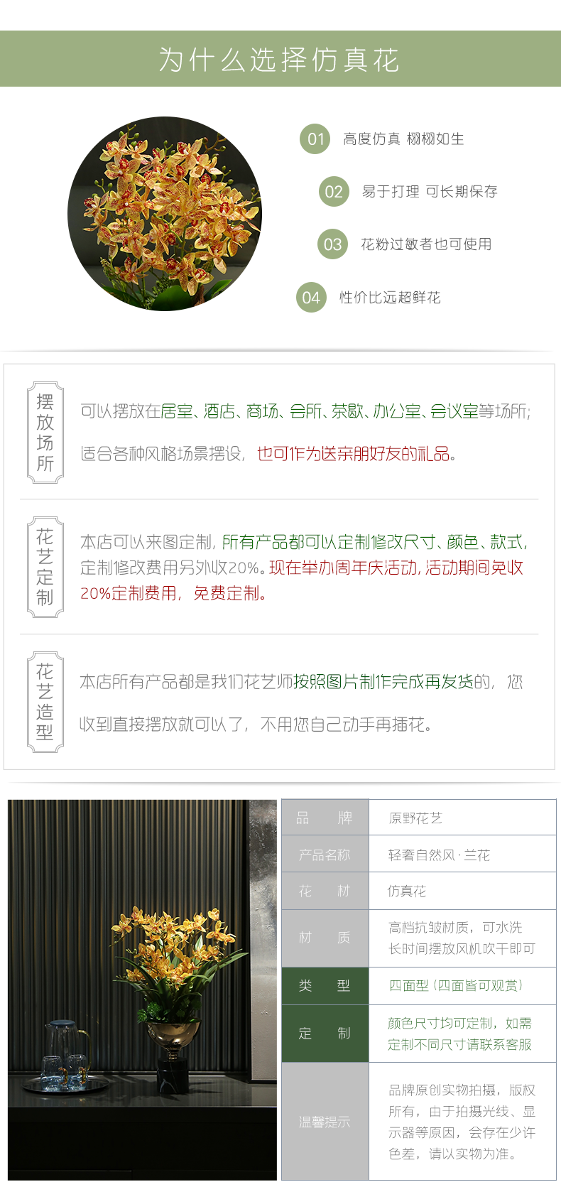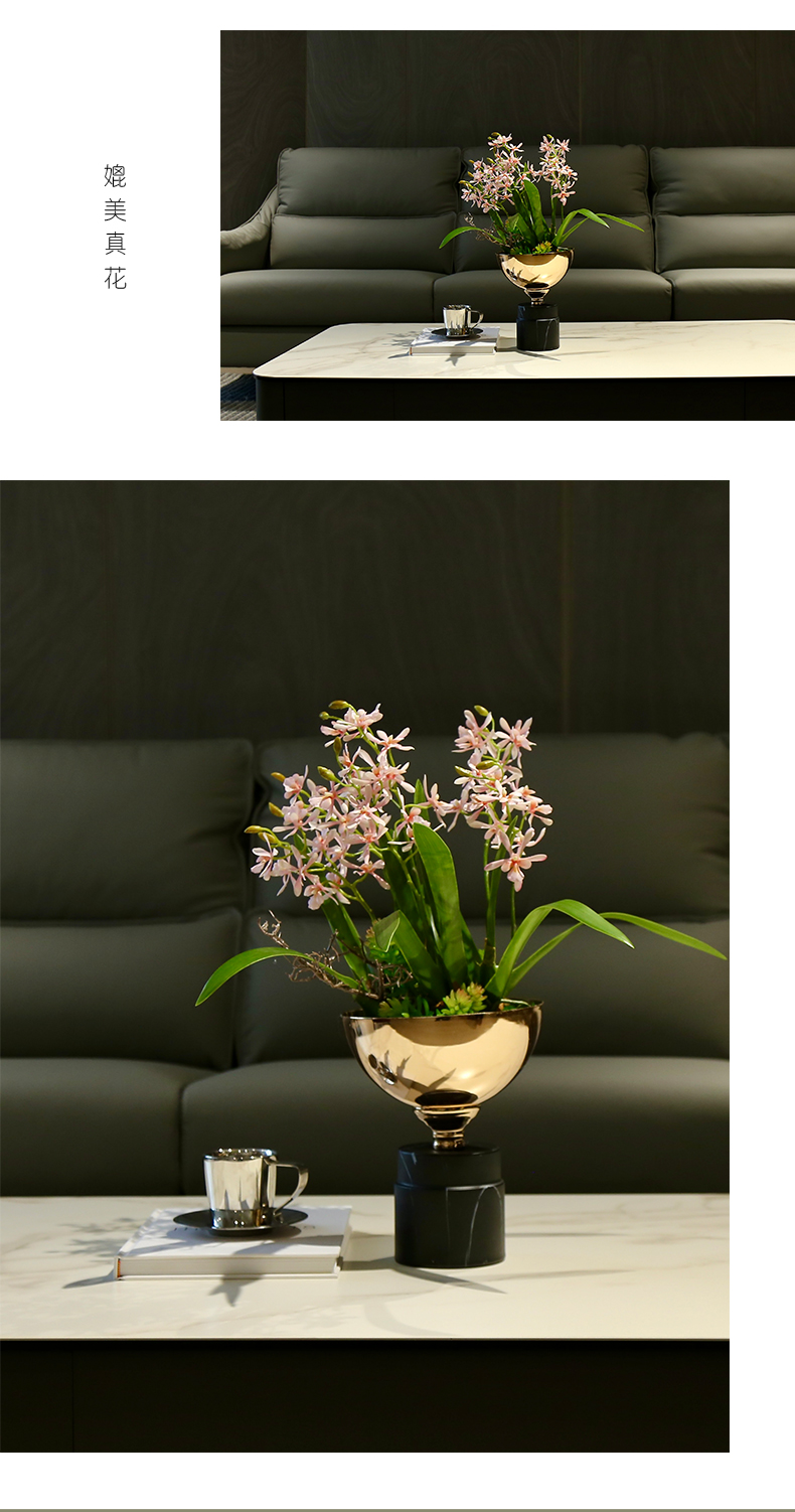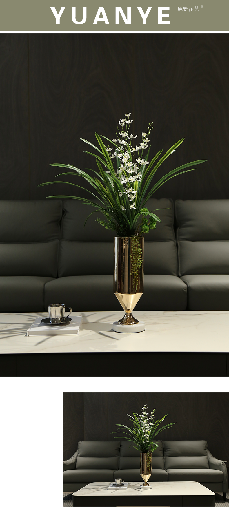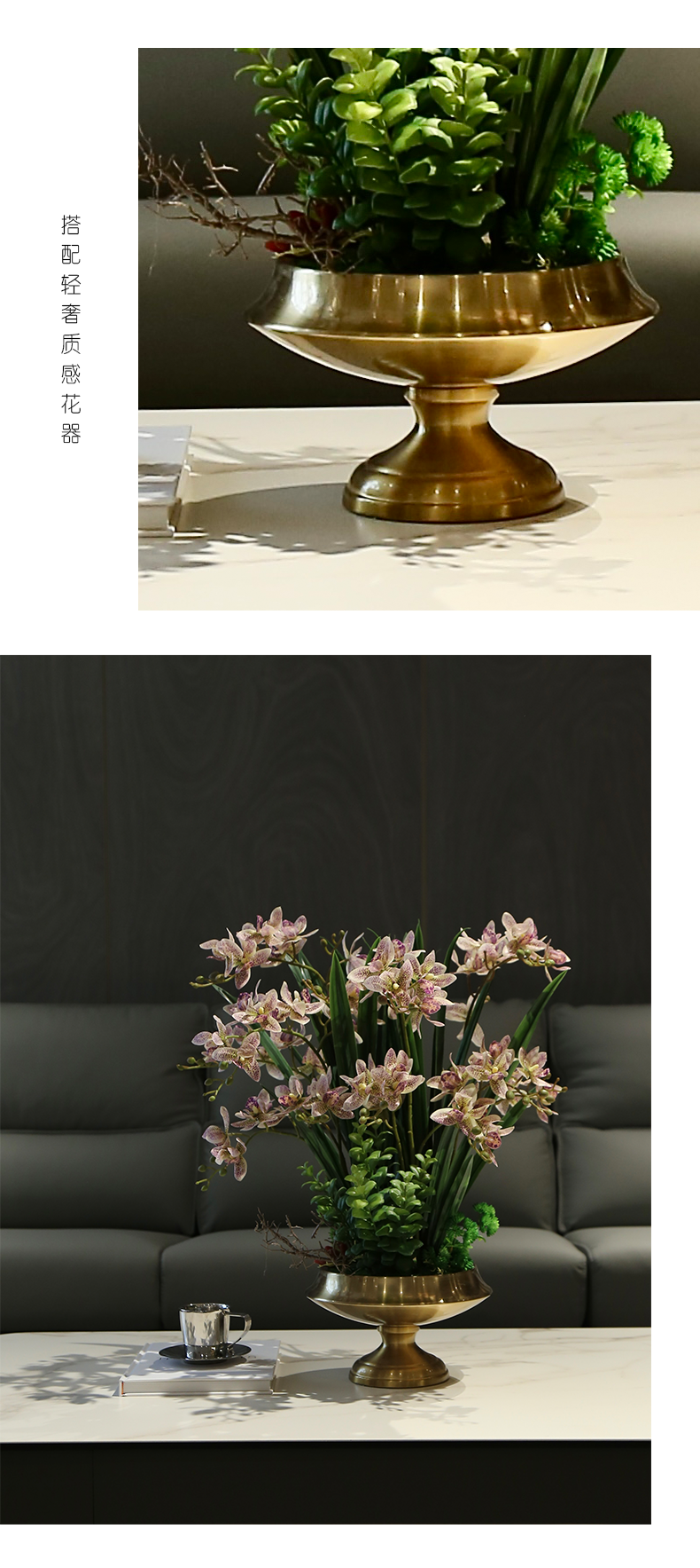 兰花仿真花轻奢高档手感保湿假花盆景客厅大堂酒店餐厅装饰花摆件