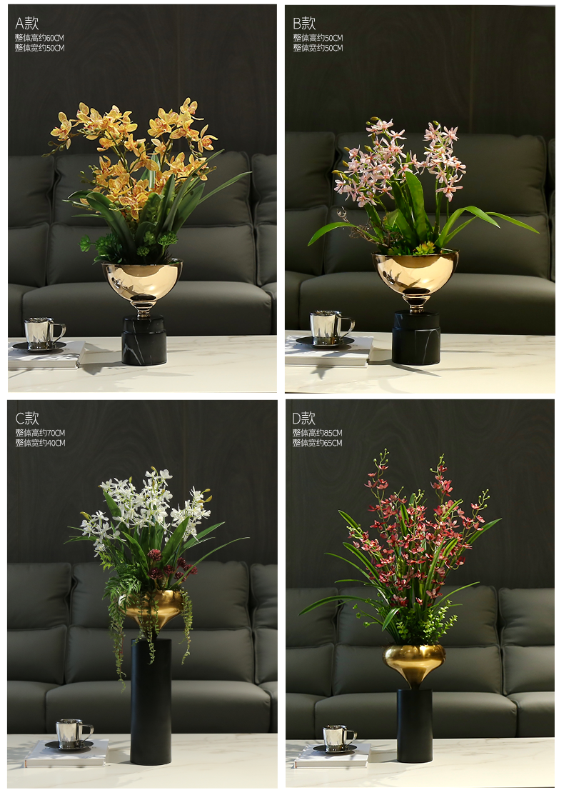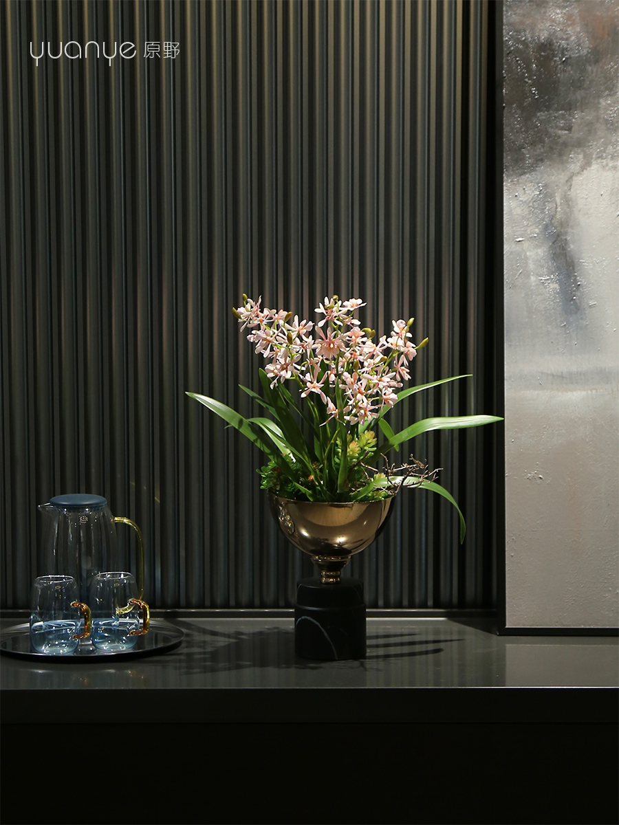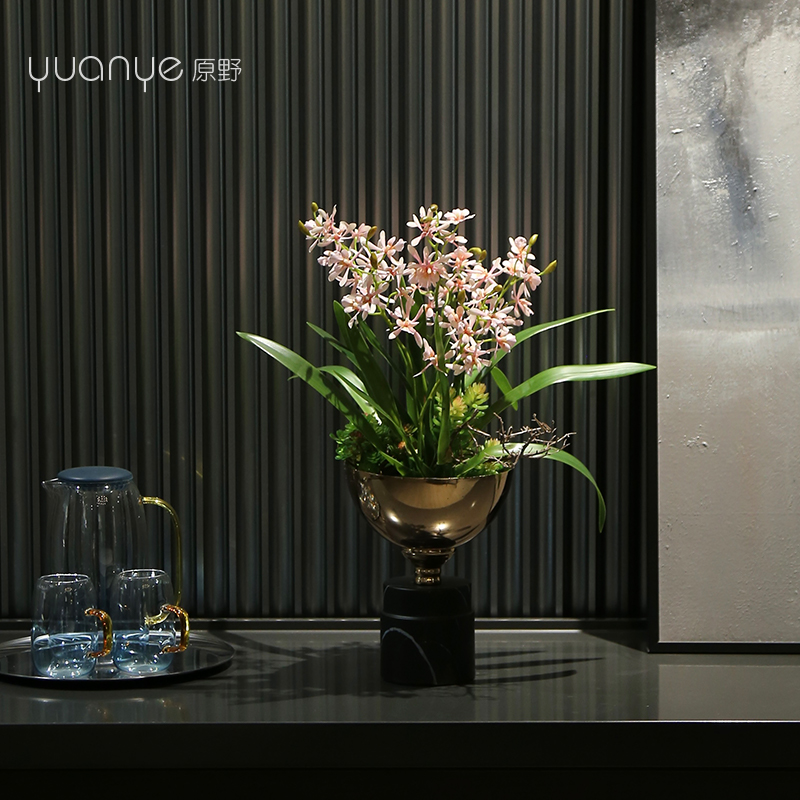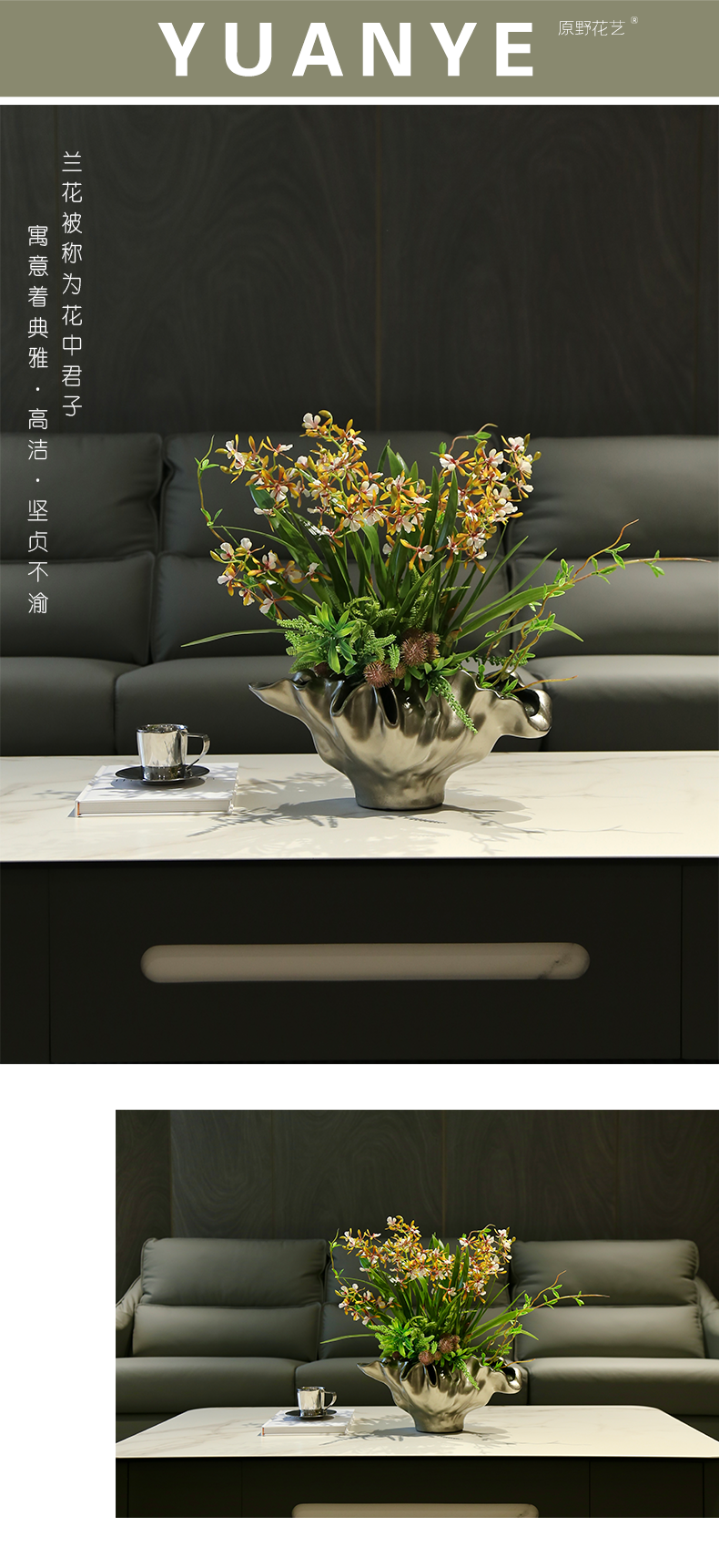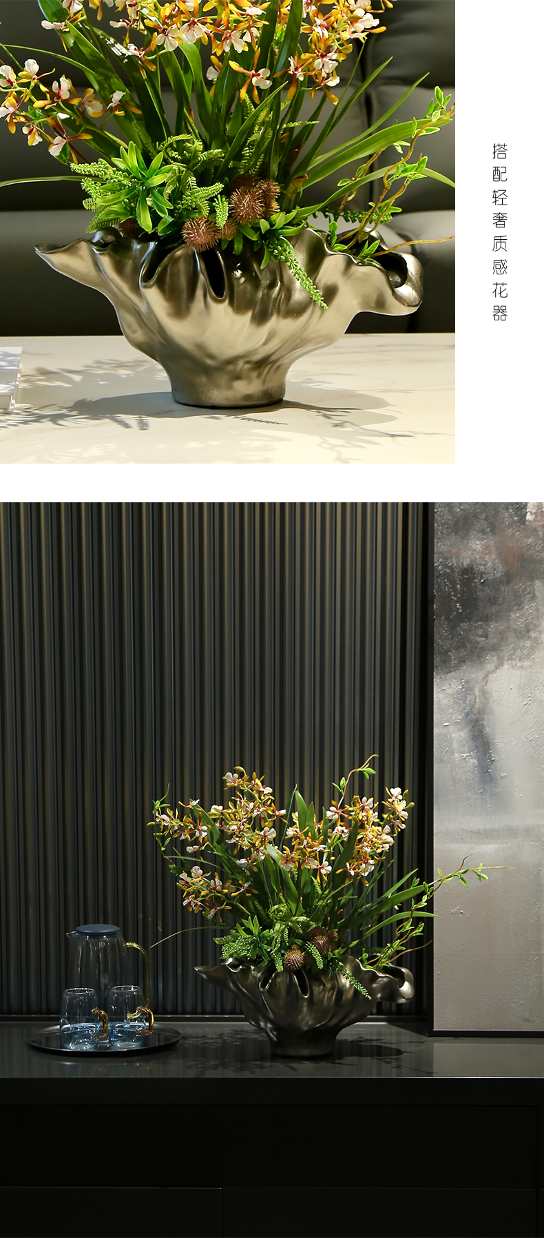 兰花仿真花轻奢高档手感保湿假花盆景客厅大堂酒店餐厅装饰花摆件