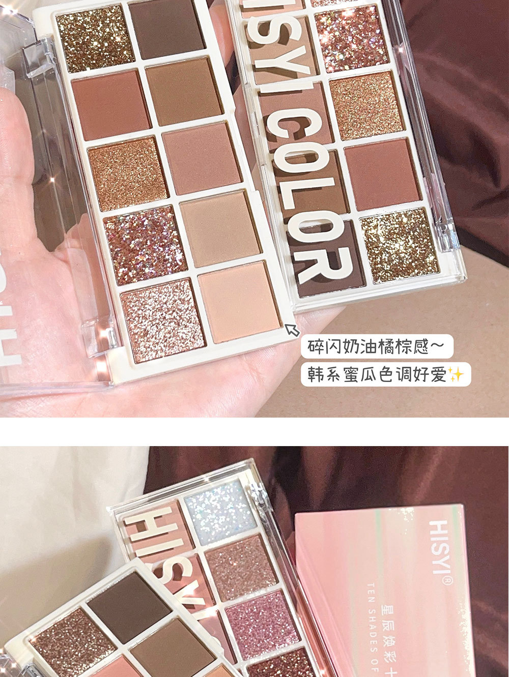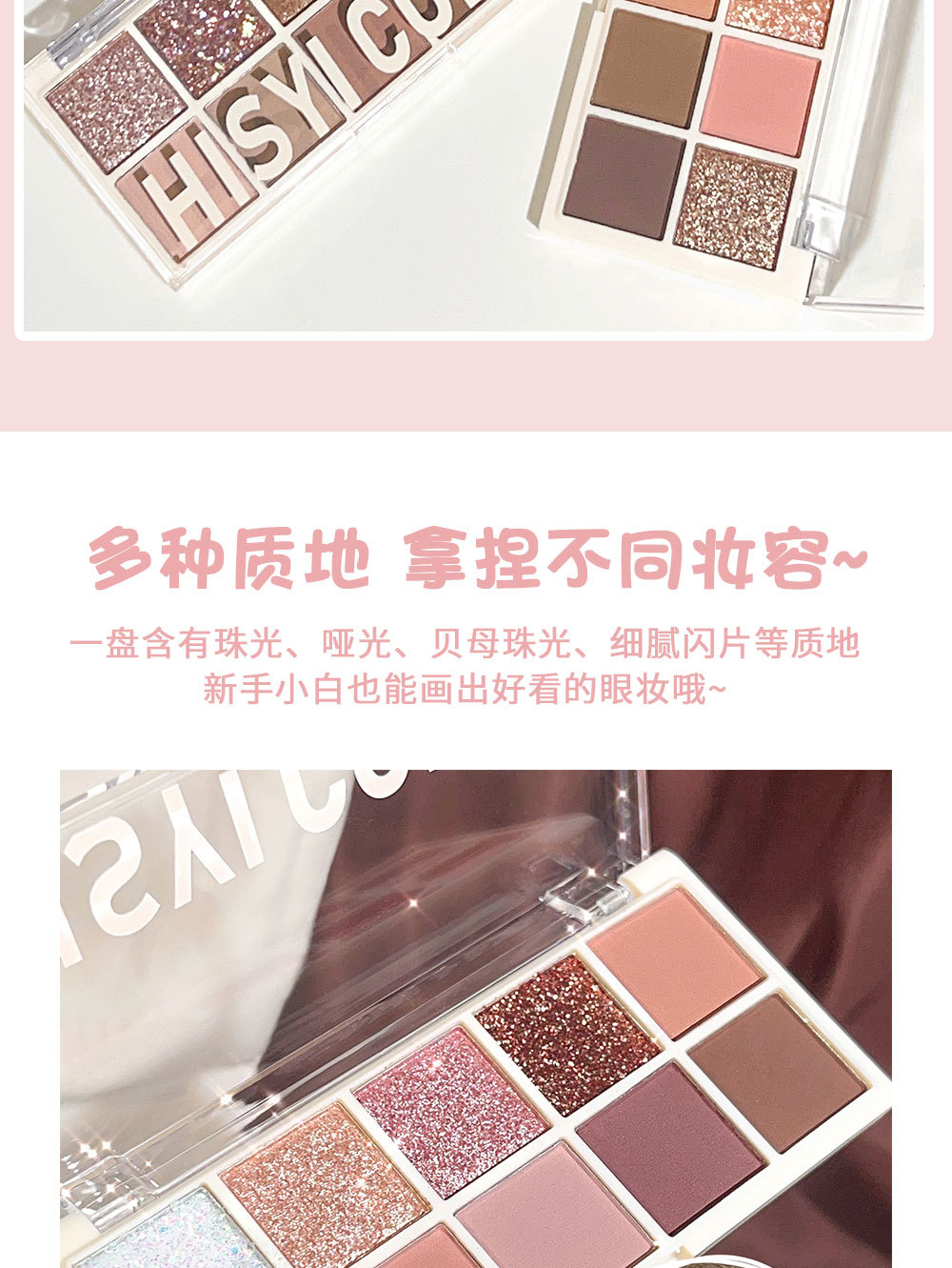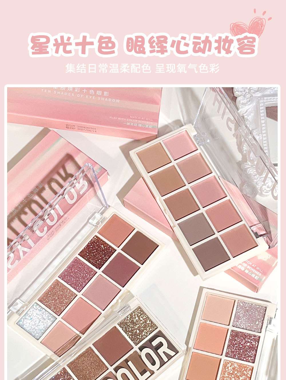 【星光十色!眼绎心动妆容】十色眼影盘珠光细闪哑光高光腮红修容上色自然持妆10色眼影。ry