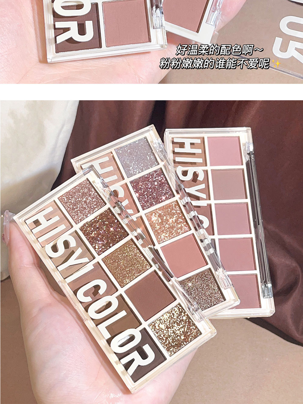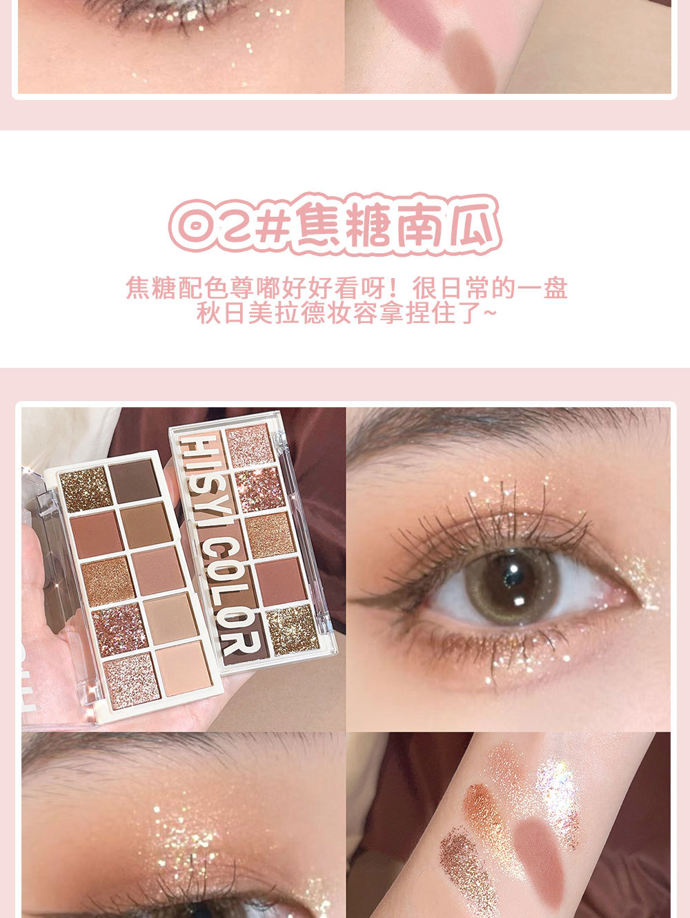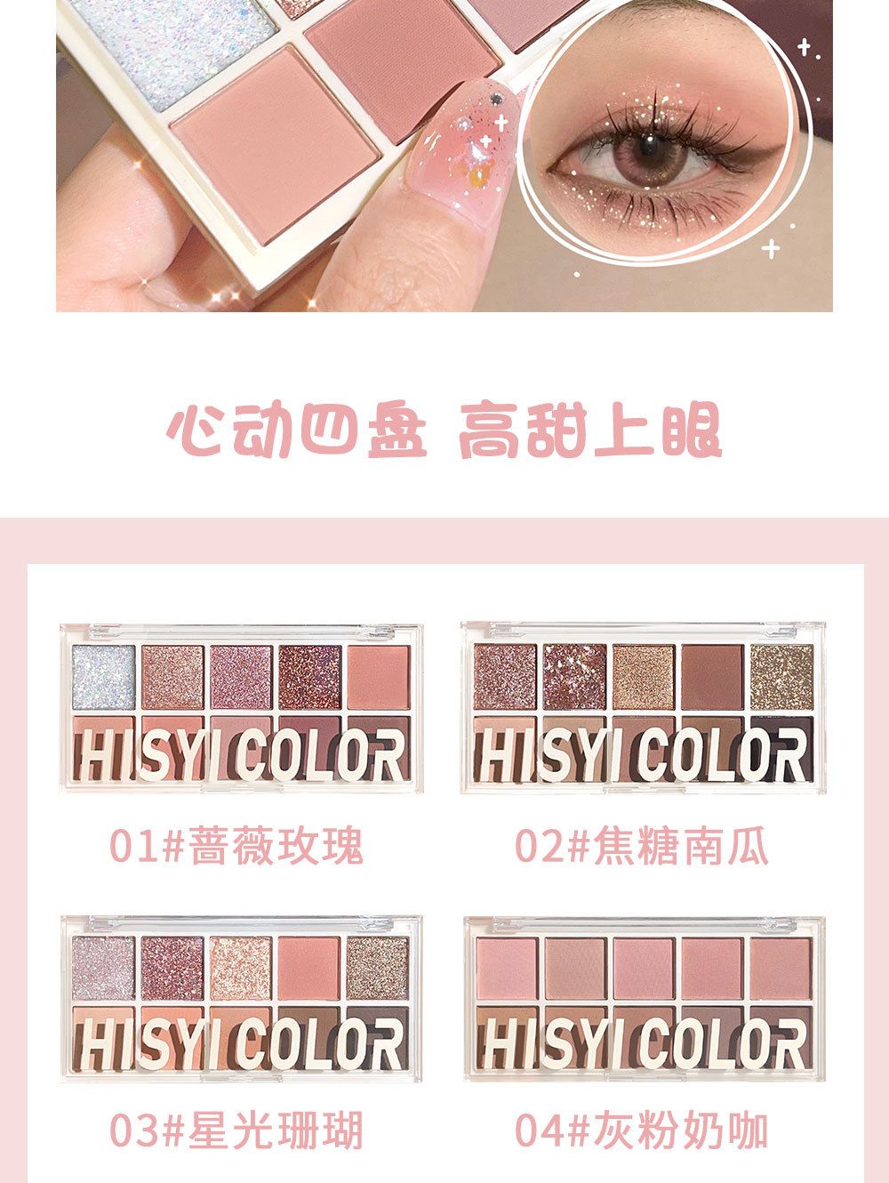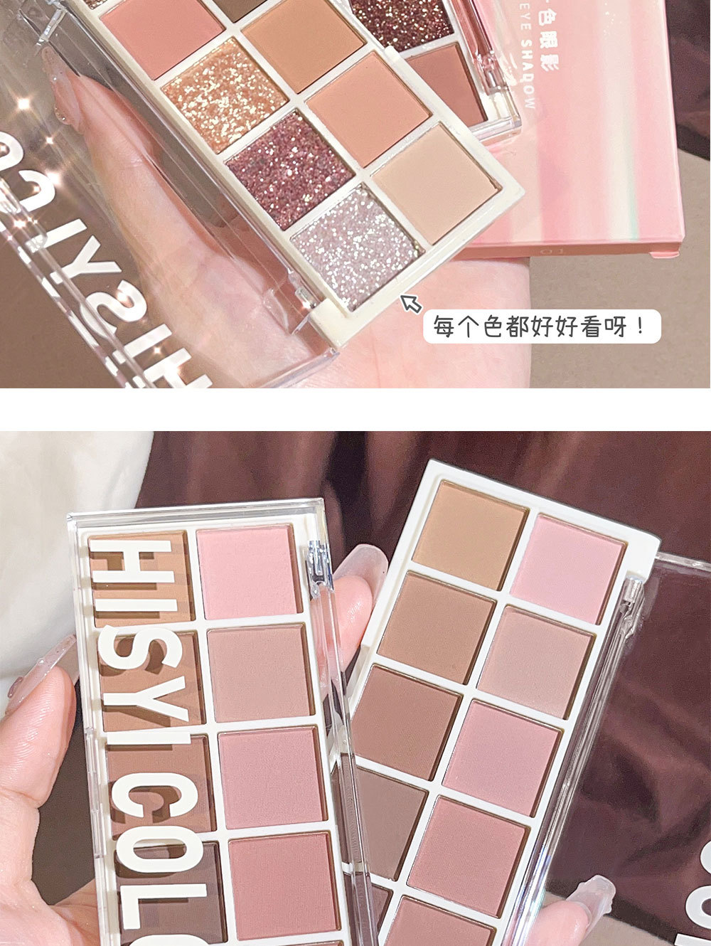 【星光十色!眼绎心动妆容】十色眼影盘珠光细闪哑光高光腮红修容上色自然持妆10色眼影。ry