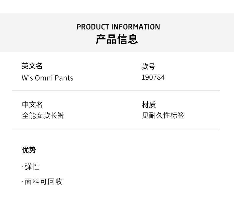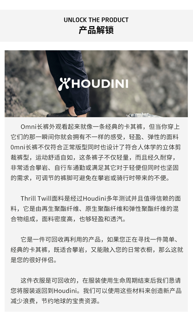 HOUDINI胡丁尼 Omni 全能 户外女款休闲长裤190784