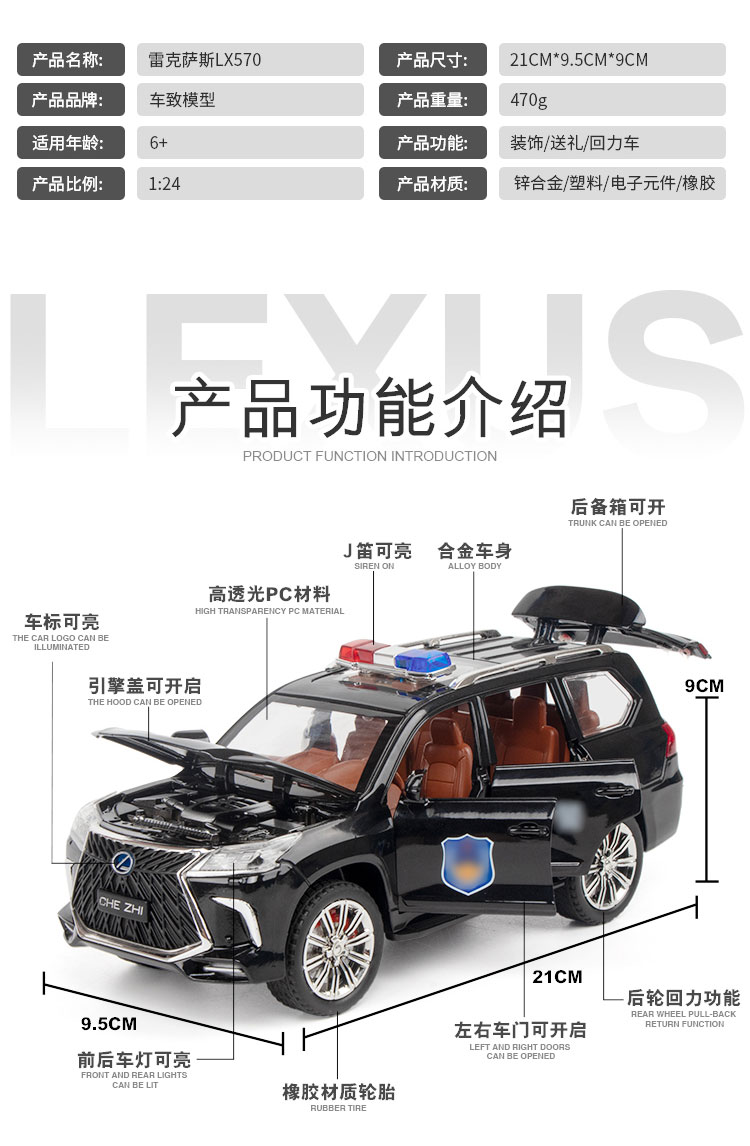 【1:24雷克萨斯LX570J车】合金汽车模型摆件儿童玩具车送礼仿真车模