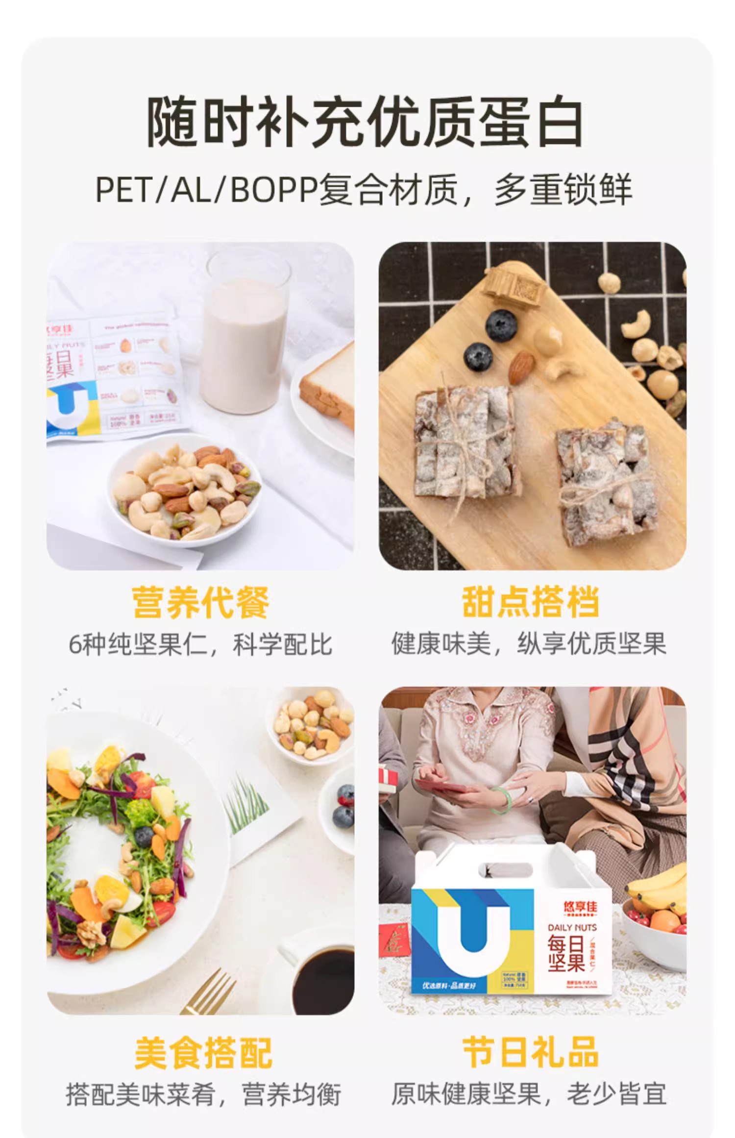 悠享佳 每日坚果礼盒 纯坚果 750g/箱(30袋)