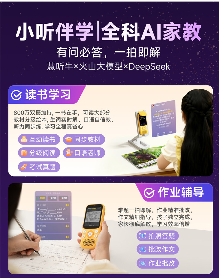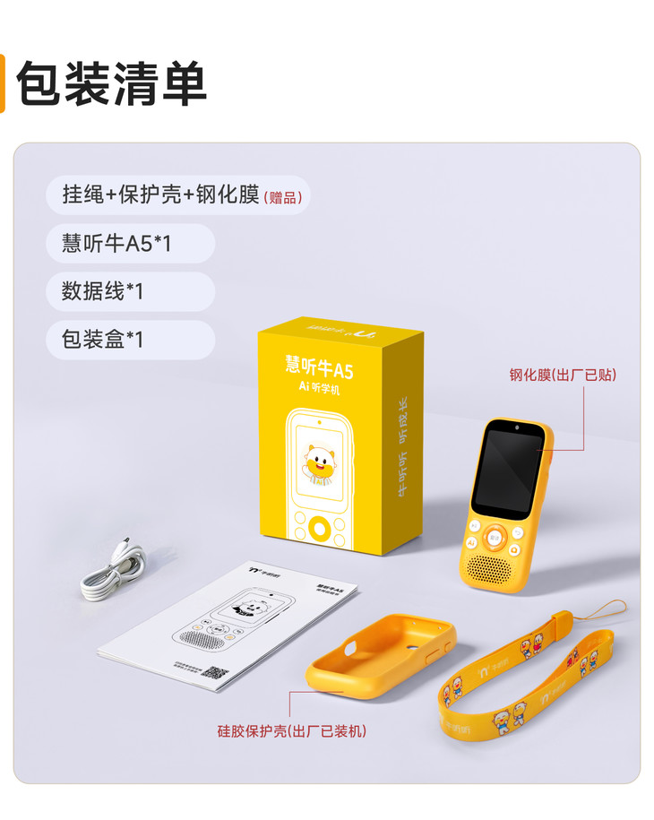 【新品预售12月22日起发货】慧听牛A5 AI听学机 学习机 全科教材 学习辅导 英语神器 拍照查词 翻译点读 电话定位