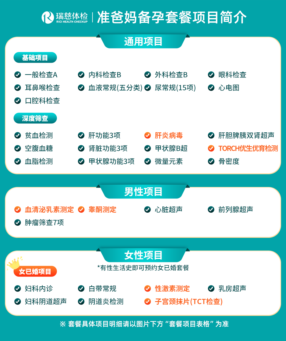 | 套餐名称:准爸妈备孕单人体检套餐 |