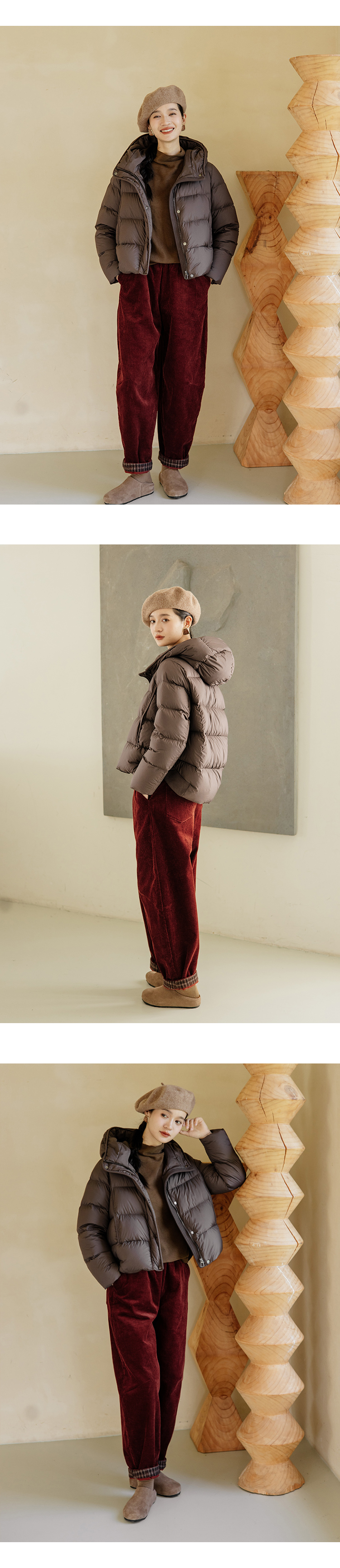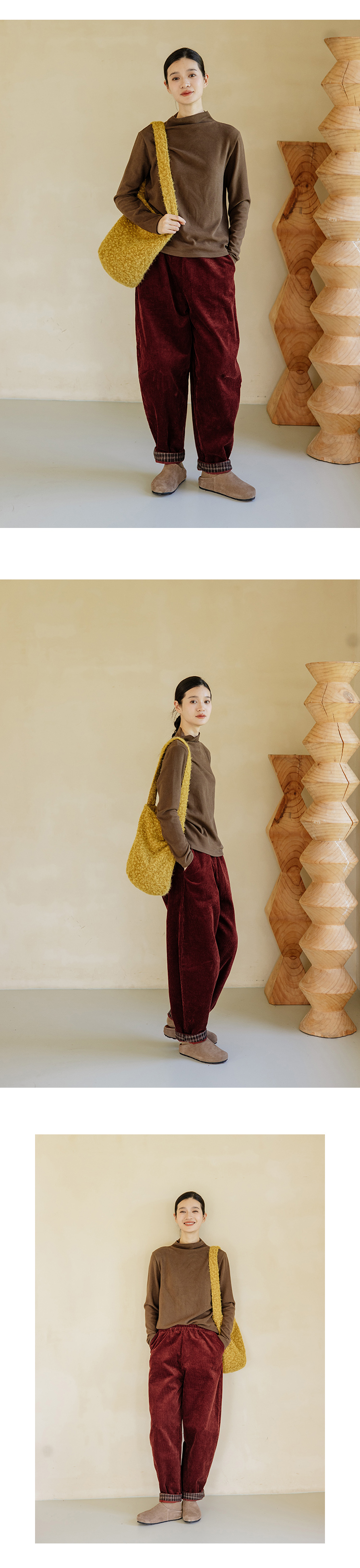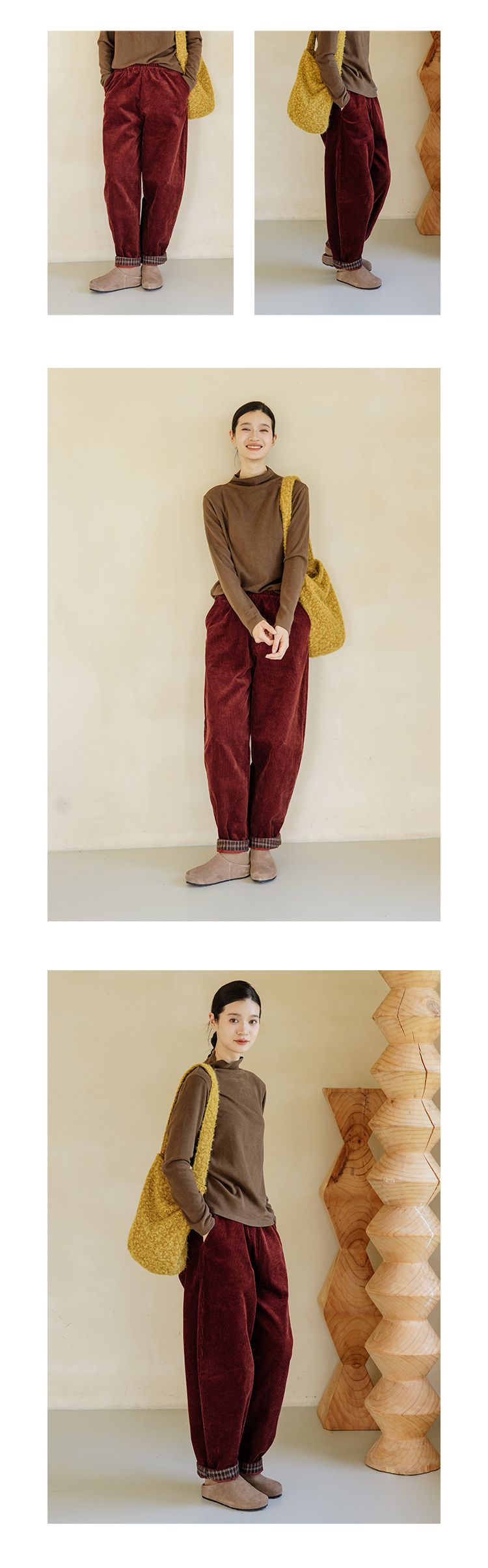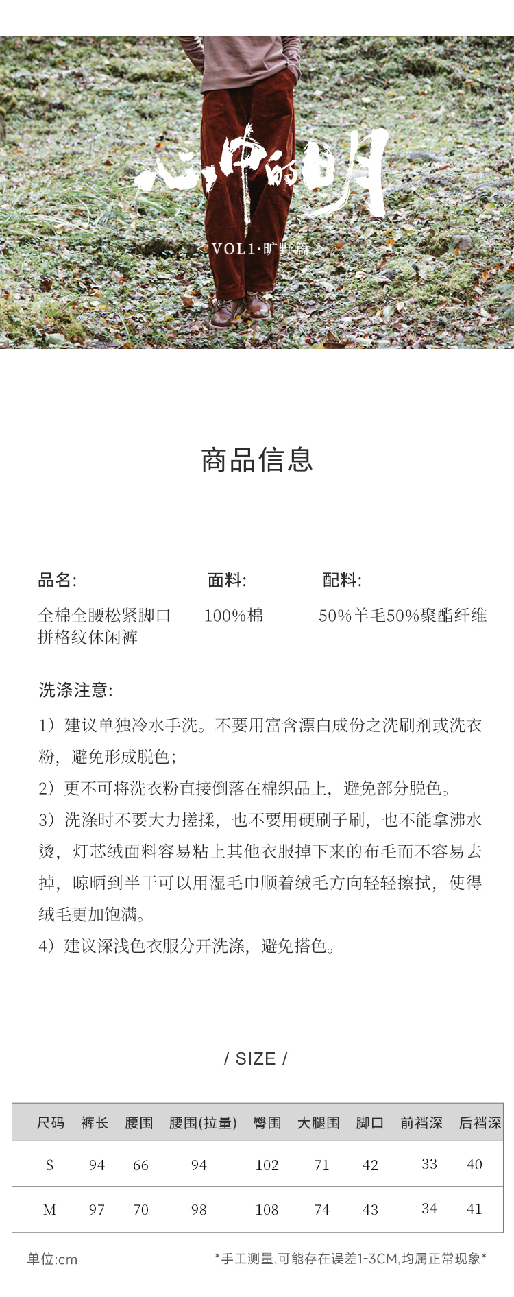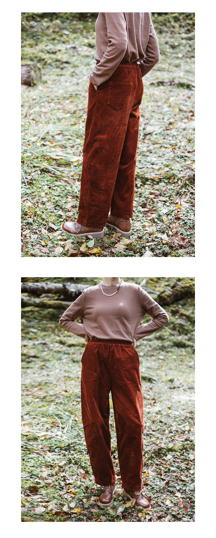 绽放旅行女装254朵/灯芯绒气球裤*全腰松紧脚口拼格纹休闲裤