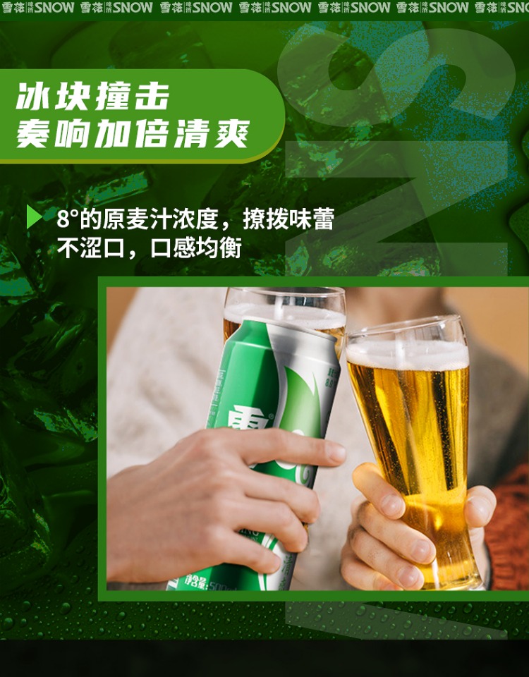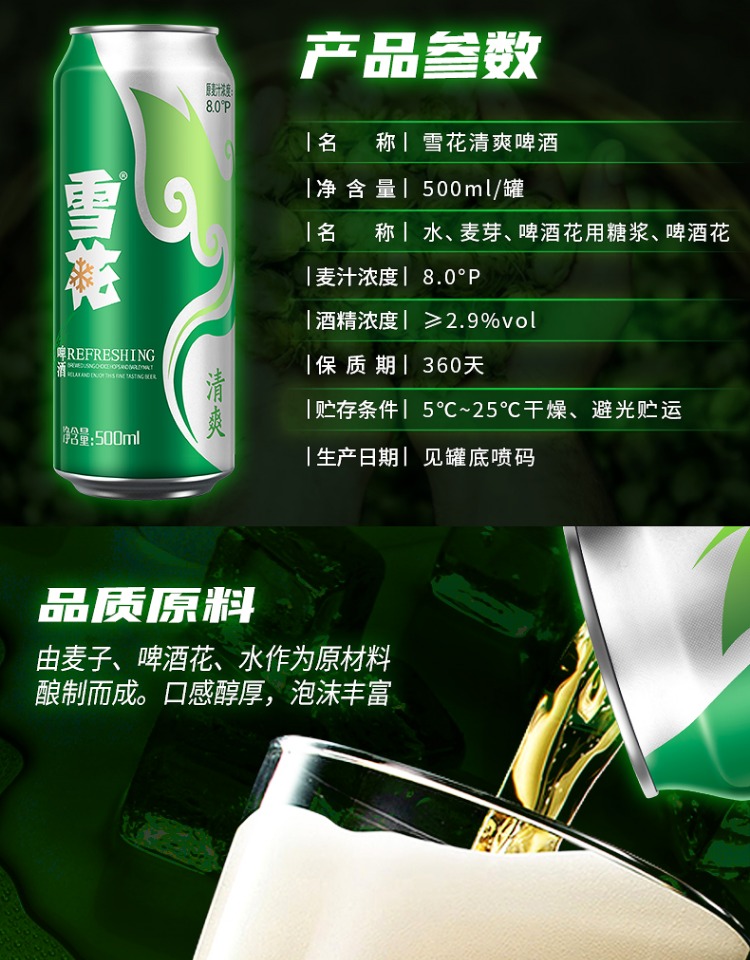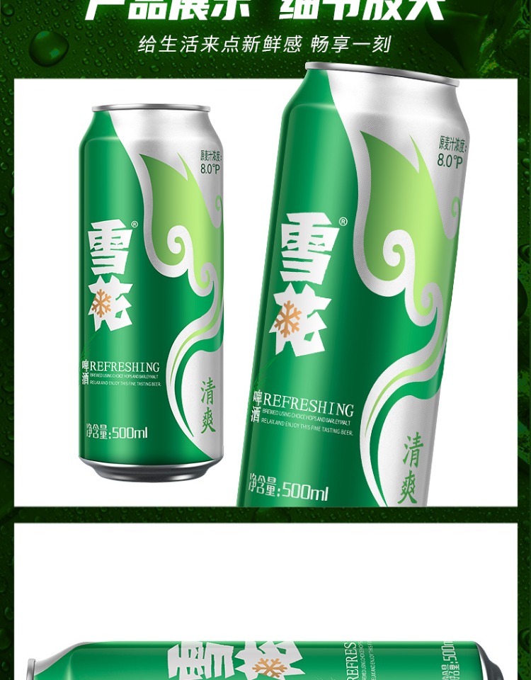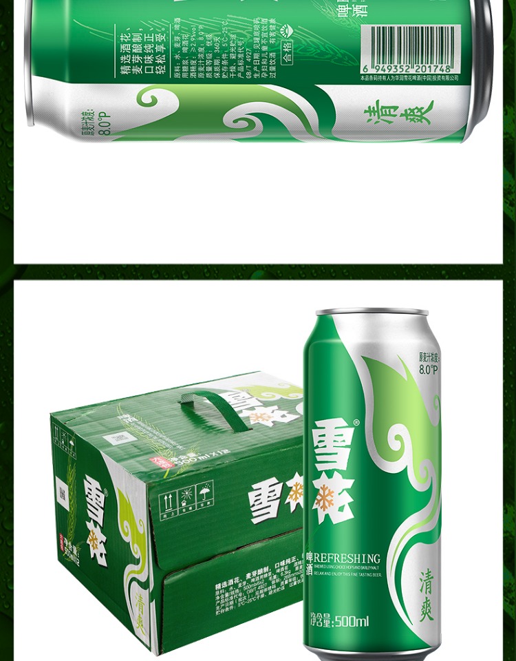 6连包雪花啤酒清爽型500m*6罐 (SNOW) 拉格啤酒麦芽酿制口味纯正夏日