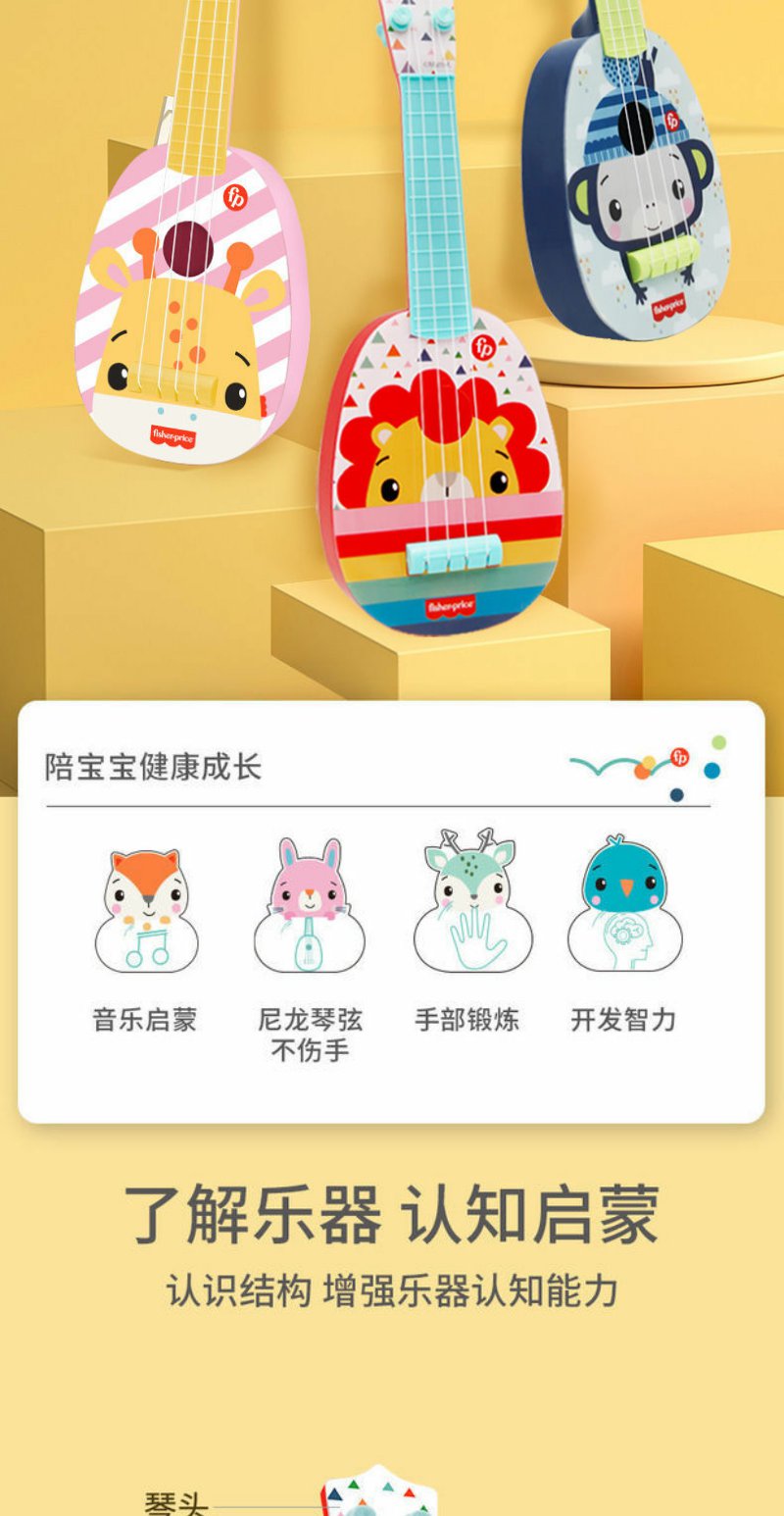 费雪儿童吉他玩具宝宝婴儿尤克里里初学者音乐早教迷你小提琴乐器