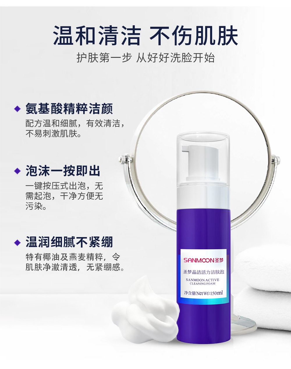 【送眼膜】圣梦晶洁活力洁肤泡150ml