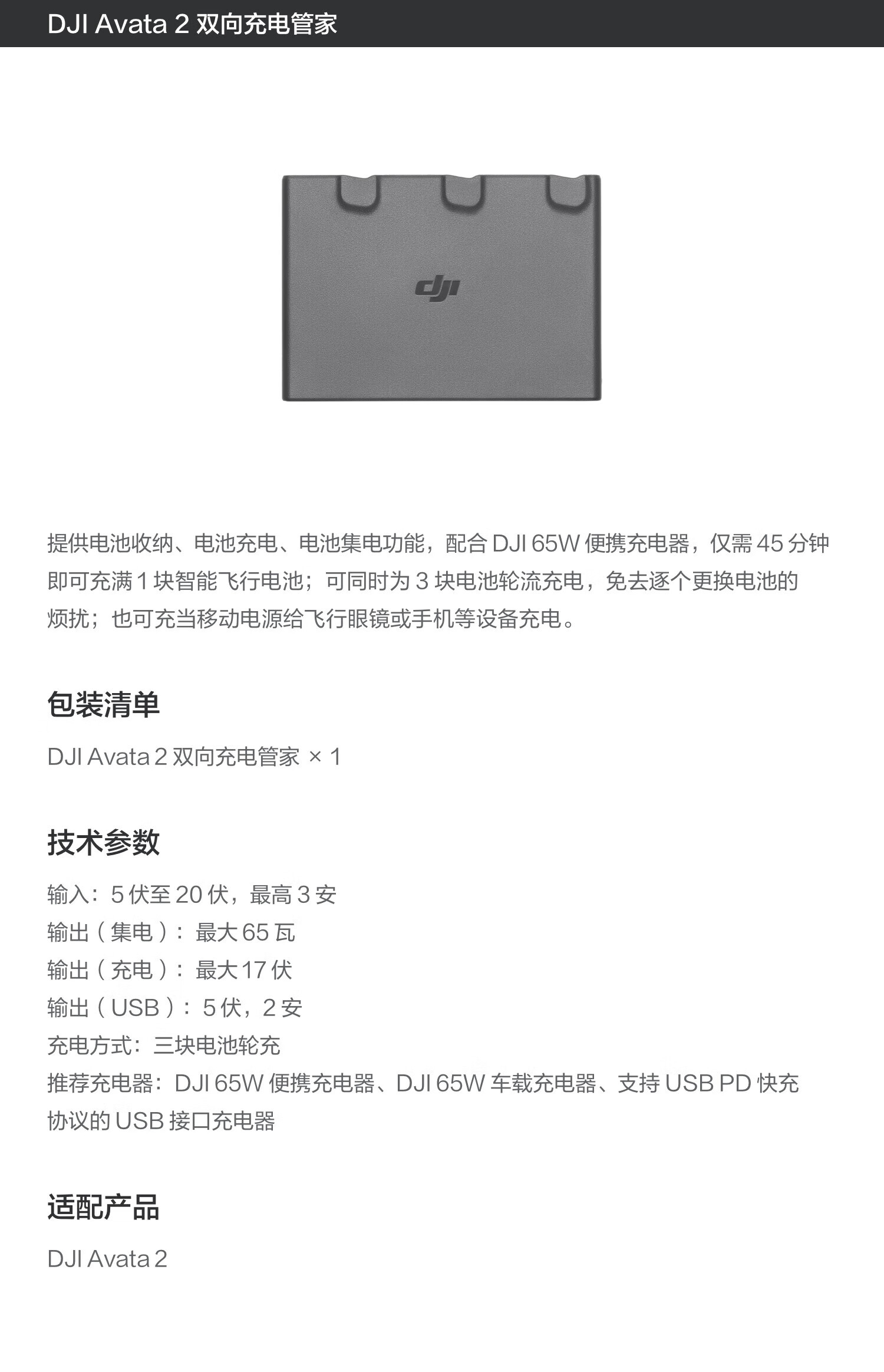 大疆DJI Avata 2 双向充电管家 DJI Avata 2配件 大疆无人机配件