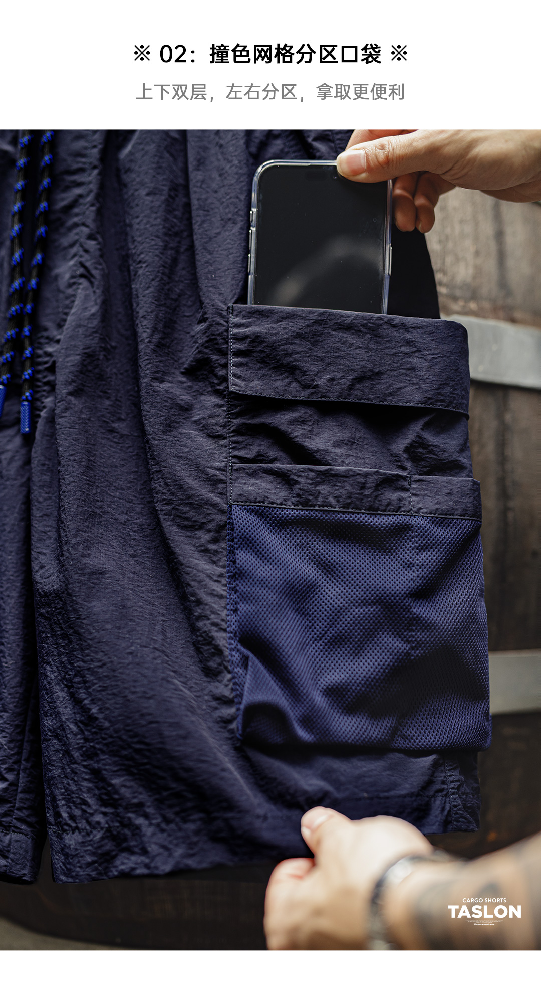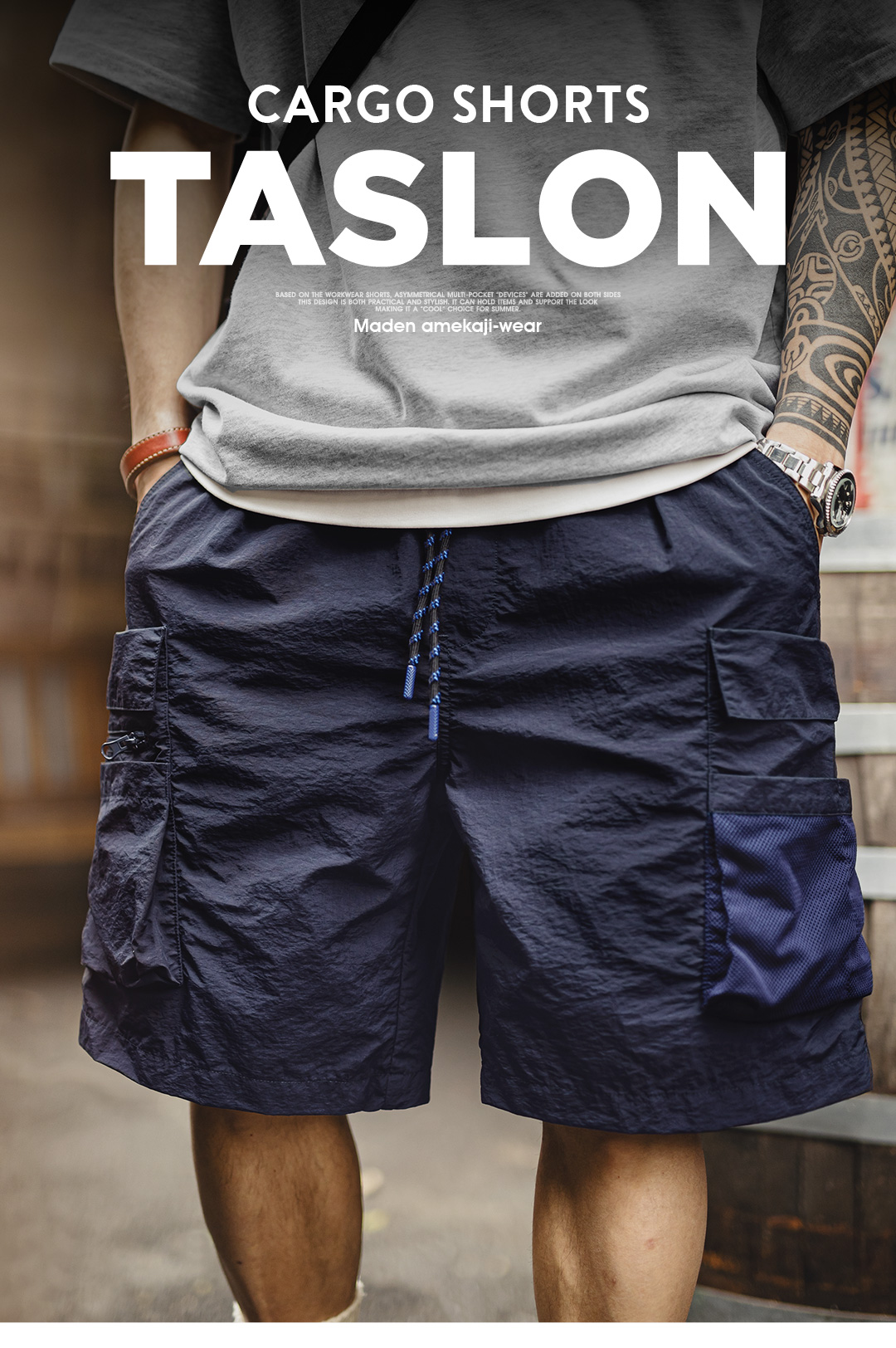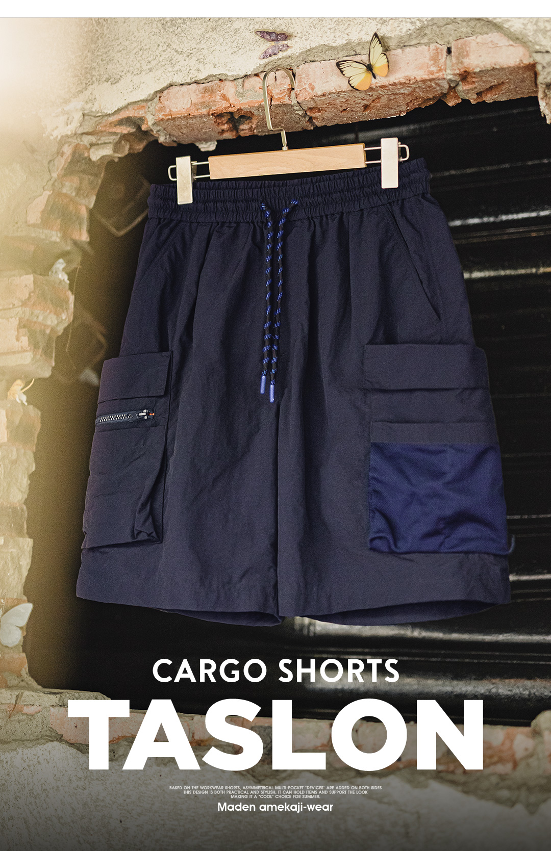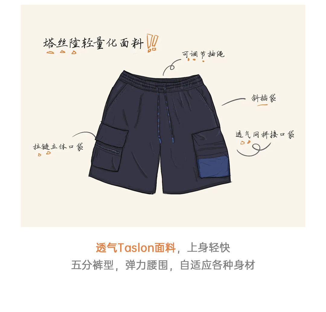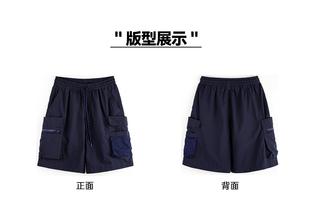 马登工装美式多口袋短裤速干机能藏青色户外轻薄款抽绳五分裤男夏